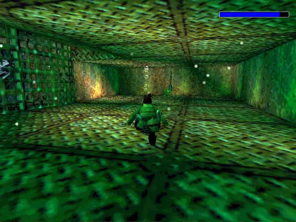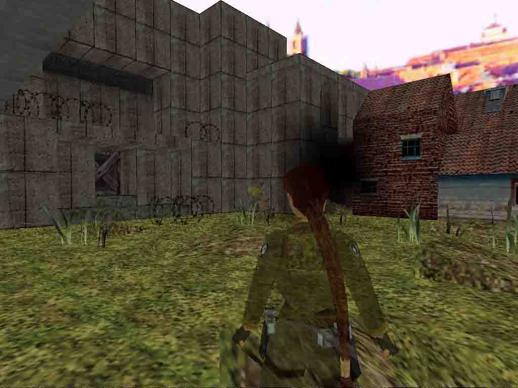 You are in a wreck now. Pull the underwater levers next to the first door, on both sides. In the next room first go to the left for the goodies. Now head to the right and swim out of the window. Swim into the other and pull the lever. A trapdoor has opened there. Glance around carefully as there are Uzi ammo in the water -of course sometimes take a bit air. :-) Climbing out of the water 2 soldiers and a dog attack Lara. Look under the moveable blocks and open the door. Open the right-hand door in the corridor. A soldier attacks you but explore the wardrobe (stand in front of it from a step and push the CTRL). Open the opposite door and get ready your pistols. During shooting the 2 soldiers continually back on the corridor and lure them after Lara. One of them has the Commando Key and if he drops it in a room you may won't be able to collect it (first the Key dropped under the table for me). Open the door with it, shoot the dog and pull down the wall switch. Get down the stairs and into the bathroom. The trapdoor has opened. Get your pistols as 3 soldiers and 2 dogs welcome Lara below.