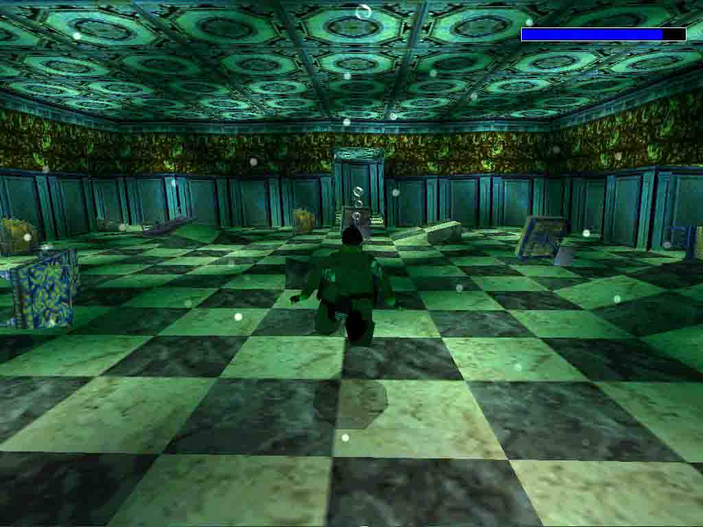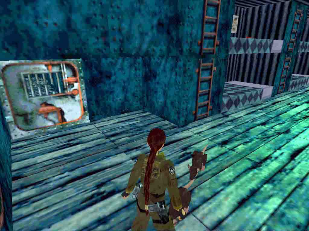 On the left-hand corner climb up into the crawlspace and pull down the wall switch. A block has risen outside. Climb up onto the floor and down on the other side to the ground floor. Pulling down the wall switch a rope appears on the floor. Swing over to the other side after taking care of the rats and a bat. Shoot the grate of the ventilating shaft on the left and climb in. Follow your way above first 'cause you will be able to collect the Uzi in the end of another ventilating shaft. Now climb in below and reach the store. Pushing the boxes find the Crowbar and force open the door on the right.