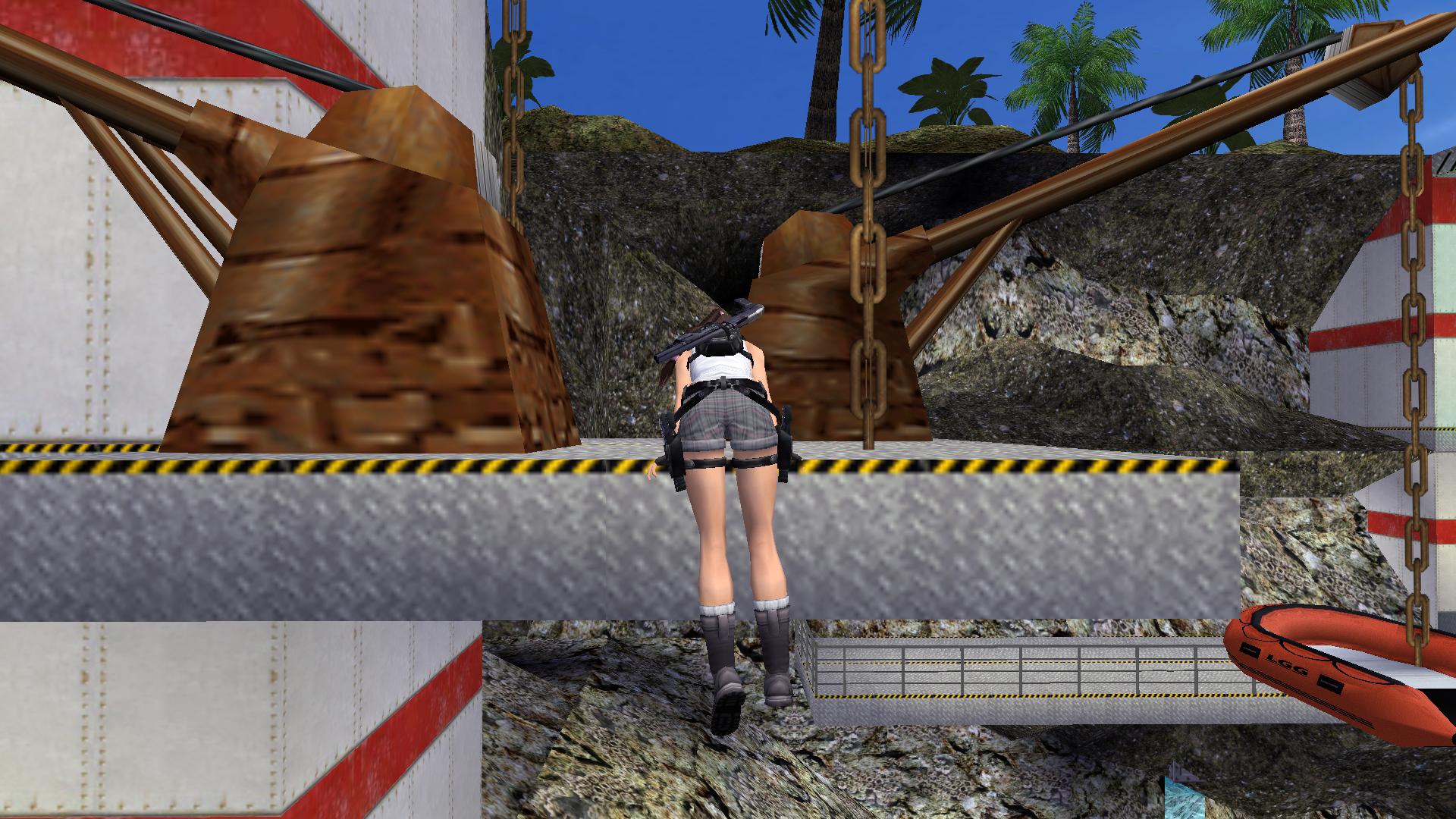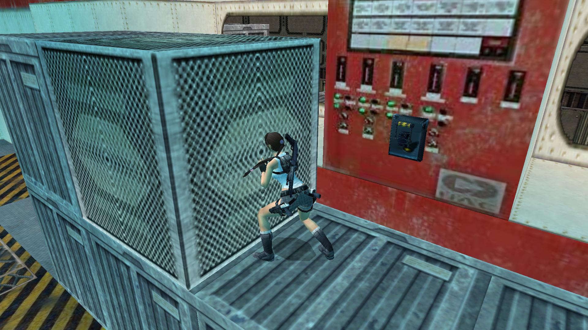 A partra mászva, a sötét sarokban, a sziklákról ismét ugrás fel a folyosóra, a folyosó végén jobbra be a raktárba, és jobbra mássz át ismét a mozgatható ládán, és a szabadba értél újra. Most ne a vízbe ugorj, hanem balra menj a korlát felé. be balra, a folyosóra, és a bal sarokban mássz fel a létrán a lenyílt csapóajtónál. Lődd le a fegyverest, és tedd a két biztosítékot a helyükre. A kék dobozt szétlőve vedd fel a Statue of Bastet szobrot, amiért jöttél.