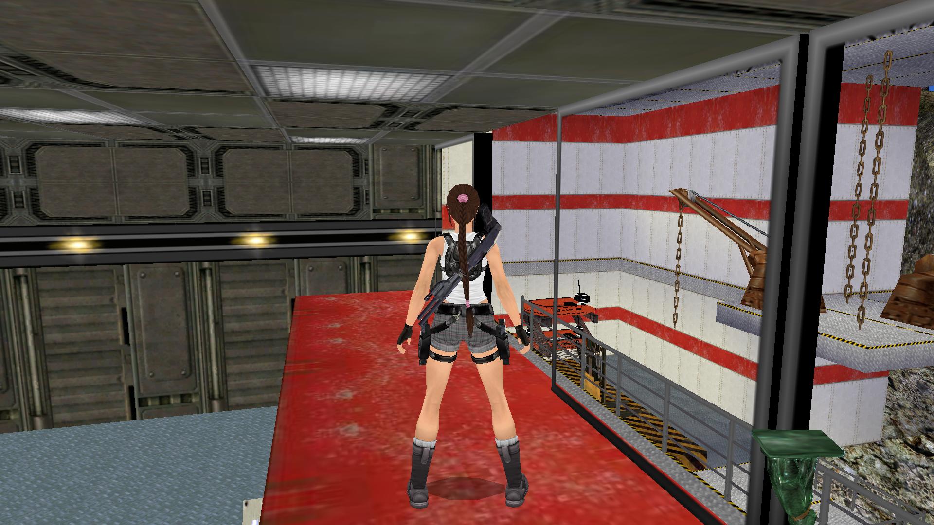 Húzd meg oldalt a kapcsolót, majd a középső oszlop oldalán levő platformokon feljutva, megállás nélkül ugorj a korláton át, és rohanj be a lassan bezáruló ajtó mögé. Mássz fel a létrán. A folyosó végén kapaszkodj fel balra a szellőzőbe, majd a túloldalon szétlőve a rácsot, mássz le a terembe. Nyomd meg oldalt a gombot, nyisd ki az ajtót, a folyosók végén jobbra menj, és a karzaton mássz fel jobbra a létrán.