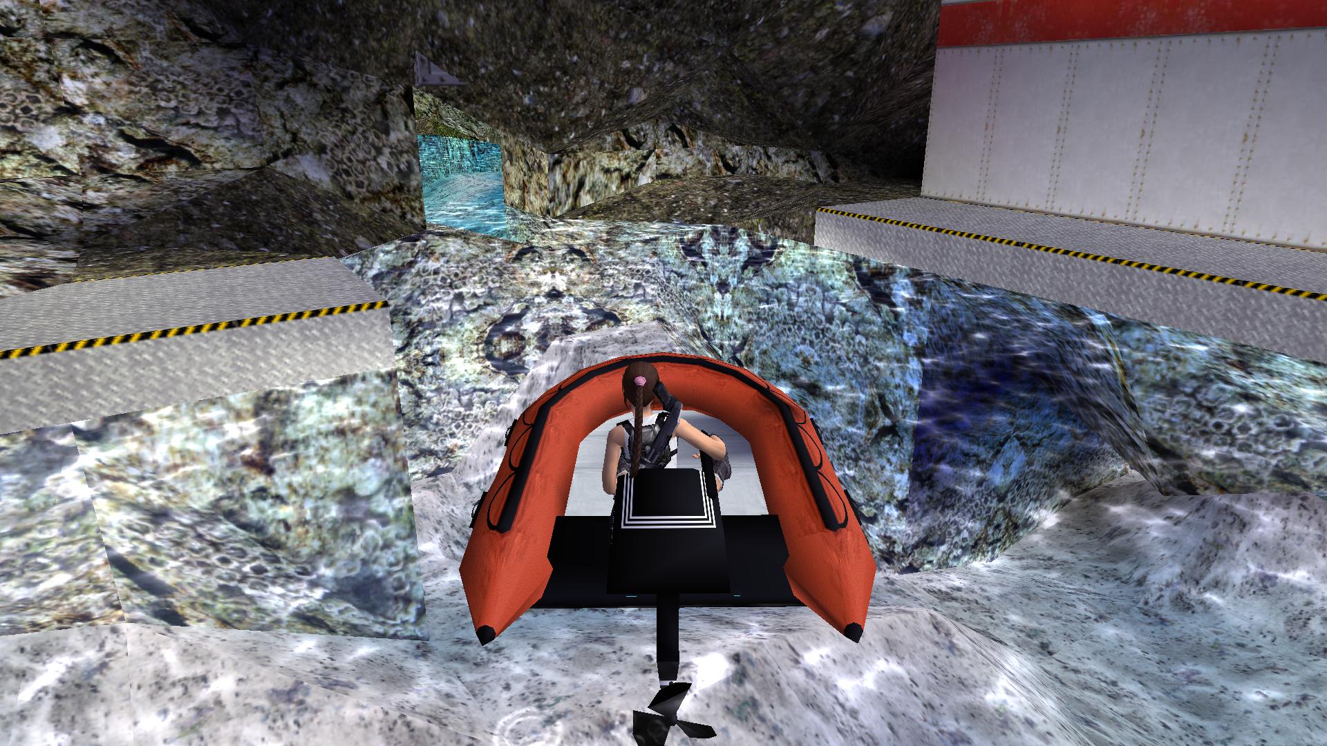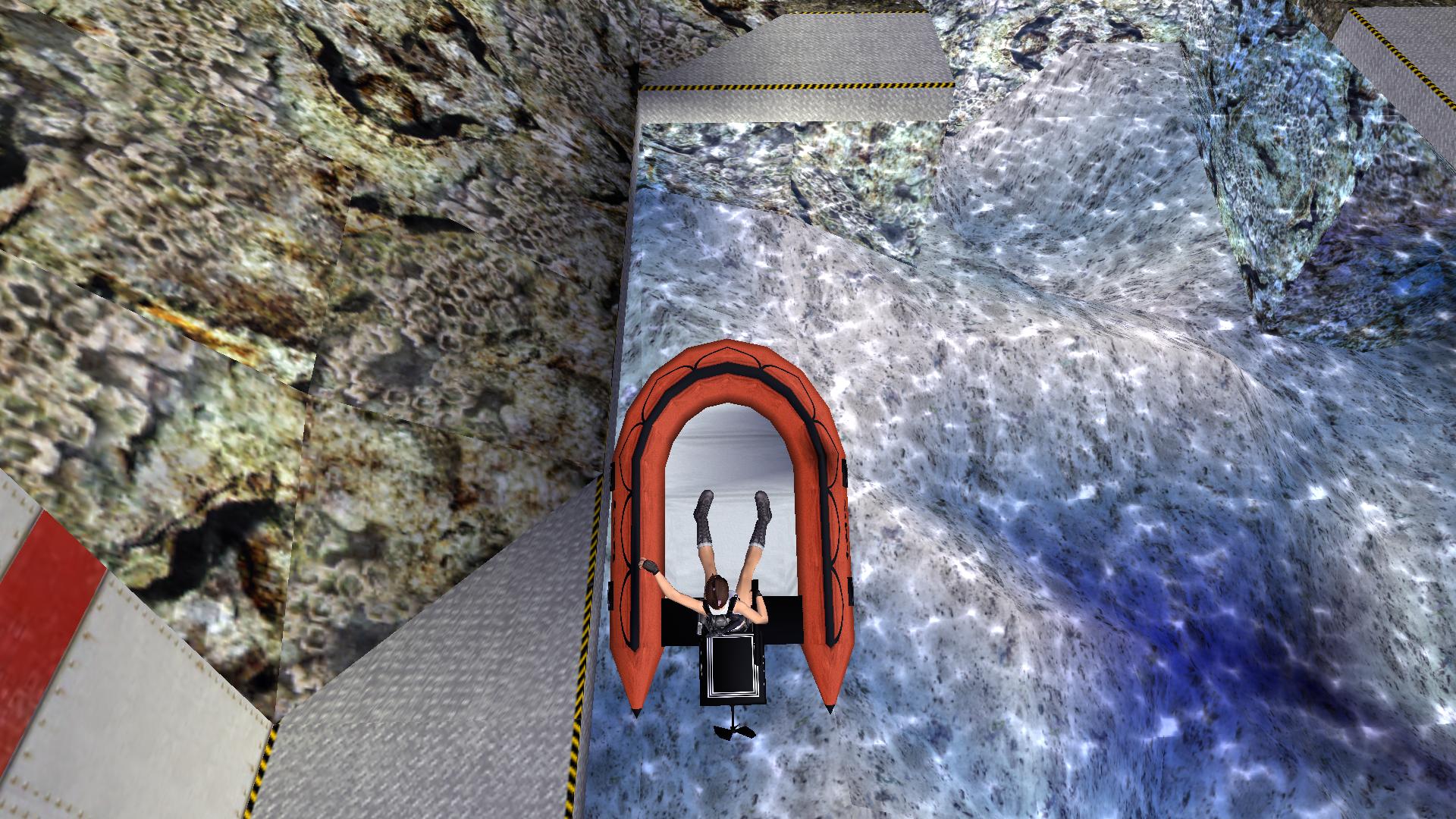 Ússz át a kinyílt ajtón, vedd fel a nagymedence fenekén a Yellow Fuse-t, és gyorsan kimászva a vízből, öld le a vízi banyát. A diszkkel nyisd ki az ajtót, a medencénél öld le a fegyvereseket, és jobbra menve a medence végében menj jobbra a sötét sziklákon át, és juss fel a szikla tetejéről a folyosóra. menj be jobbra a raktárba, öld le a fegyverest, és a munkást, vedd fel a lőszert, és rántsd fel a csapóajtót. Mielőtt lemennél, a mozgatható ládát, told be balra, a kis folyosóra. most menj le, öld le a melóst, és balra menve, a sarokban a ládáról nekifutásból, rántsd le a motorcsónakot. Szállj ki belőle, ha megállt