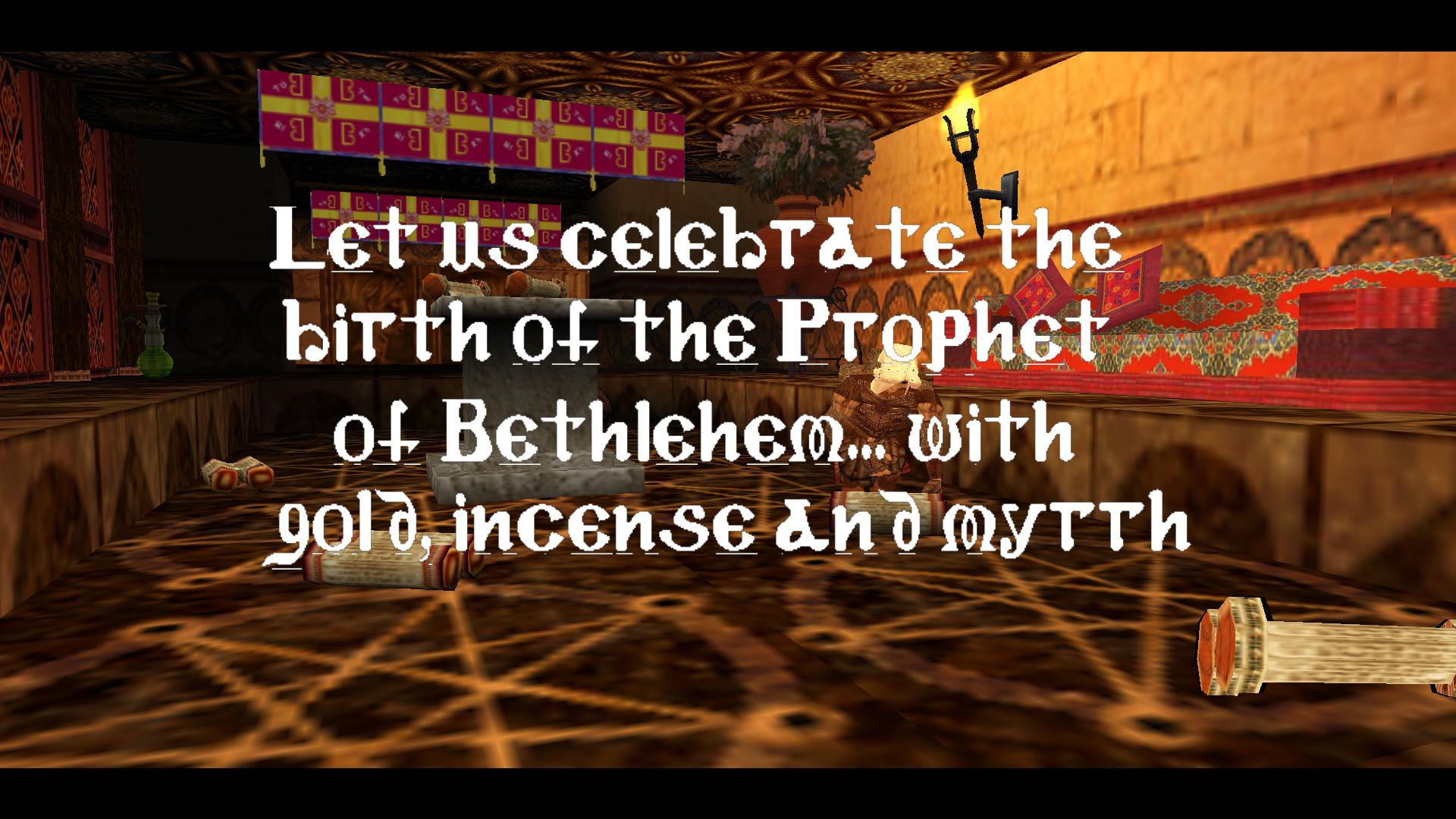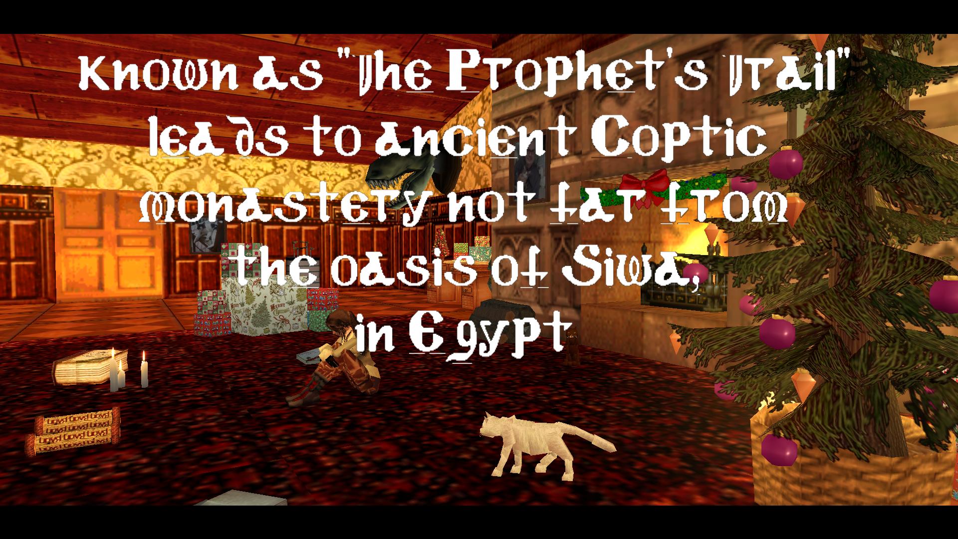 Nincs ebben a pályában egy Mikulás sem, hó sincs, sem szarvasfogat, mégis Karácsonyi, hisz Jézus születésének titkát kutatjuk, egy egyiptomi kolostorban. Ellenség mindössze egyetlen kereszteslovag, és egy vízi kígyó. Viszont vannak csapdák, amiket el kell kerülni. Sok kulcsot, imahengert, és ikont kell megszerezni, mire a végén megnézhetjük a titkos tekercset. Ne hagyja ki senki ezt a remek hangulatú, változatos pályát.Secret nincs a páklyán. Boldog Karácsonyt!