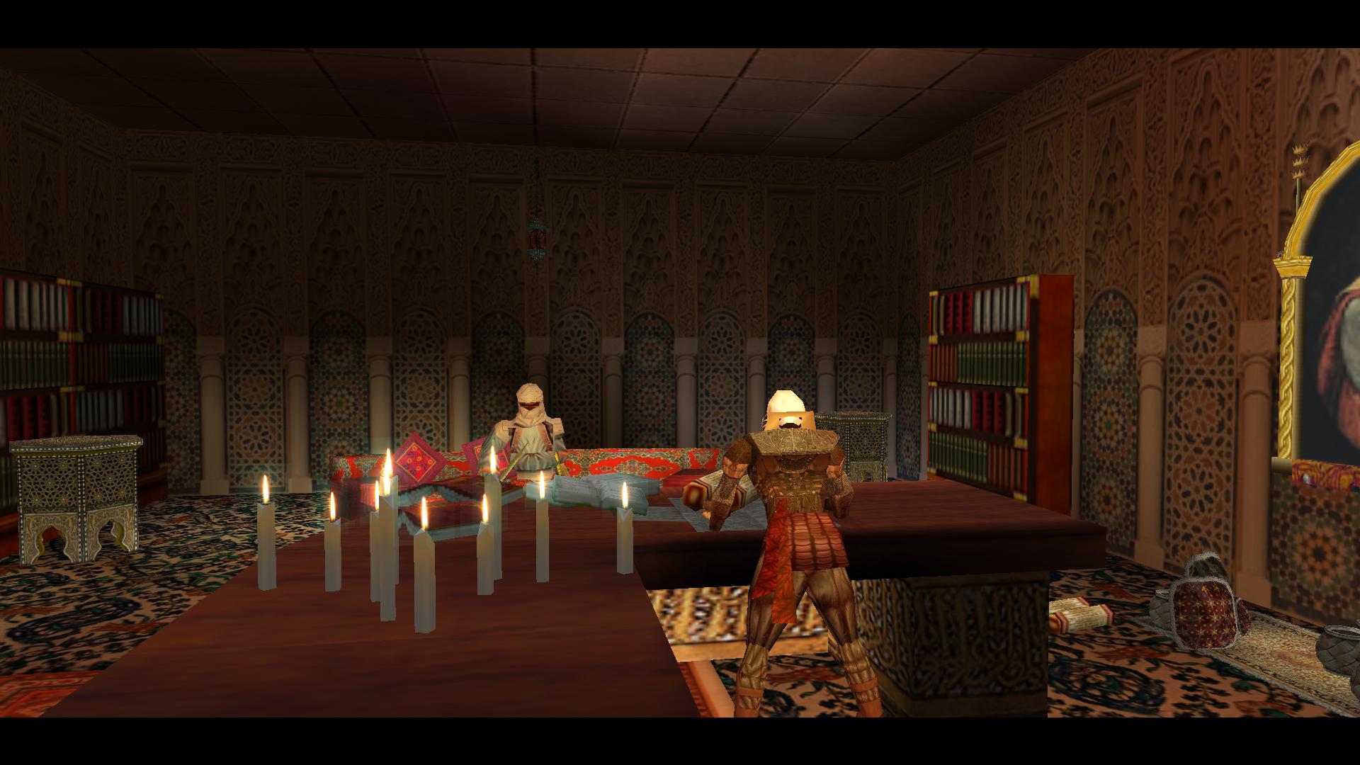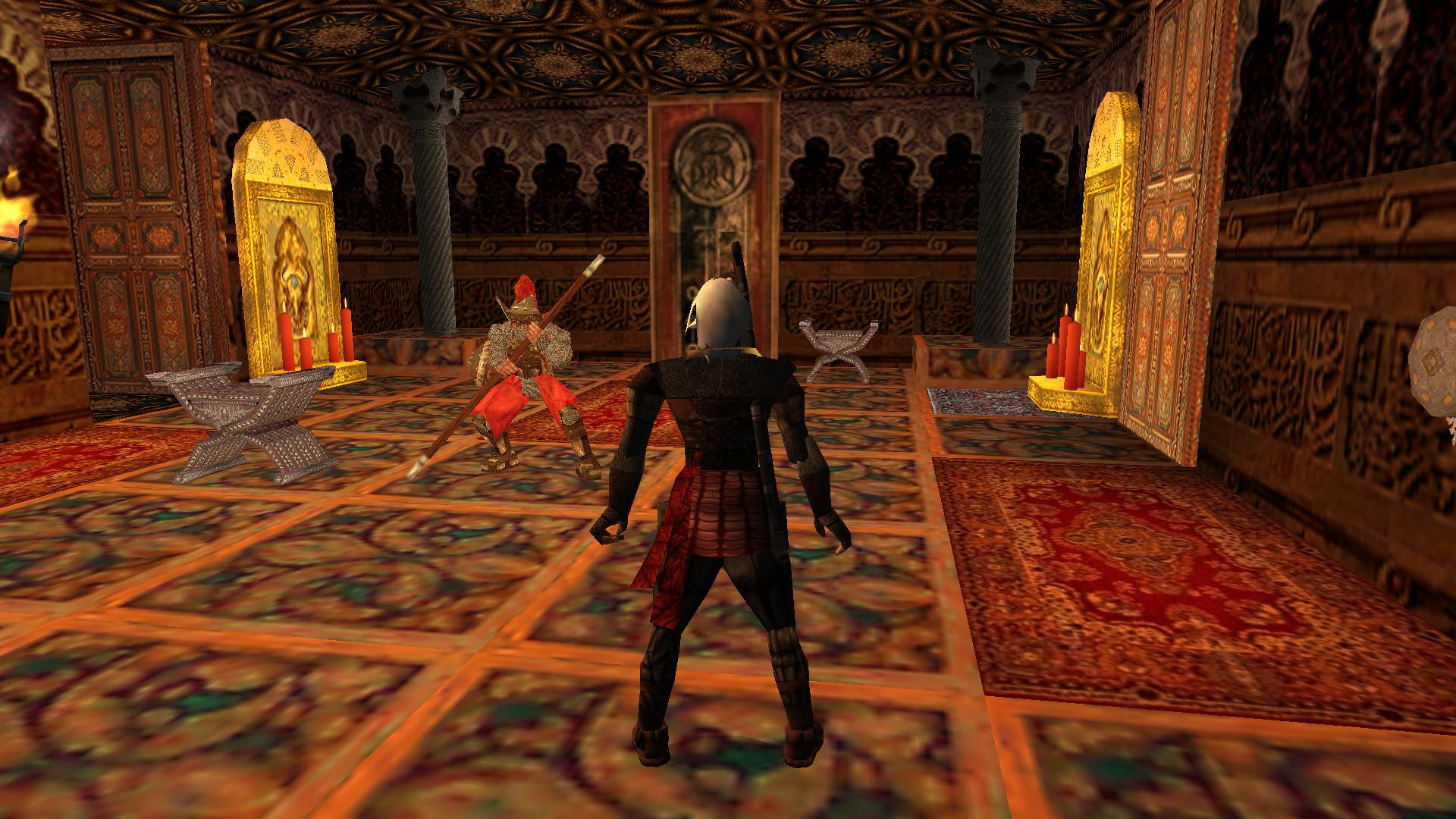 Menj vissza, egészen a sok falikaros kis terembe, és tedd a foglalatukba az ikonokat. A kinyílt ajtónál menj le az alsó folyosóra, és nyírd ki a templomos lovagot, és párducát.