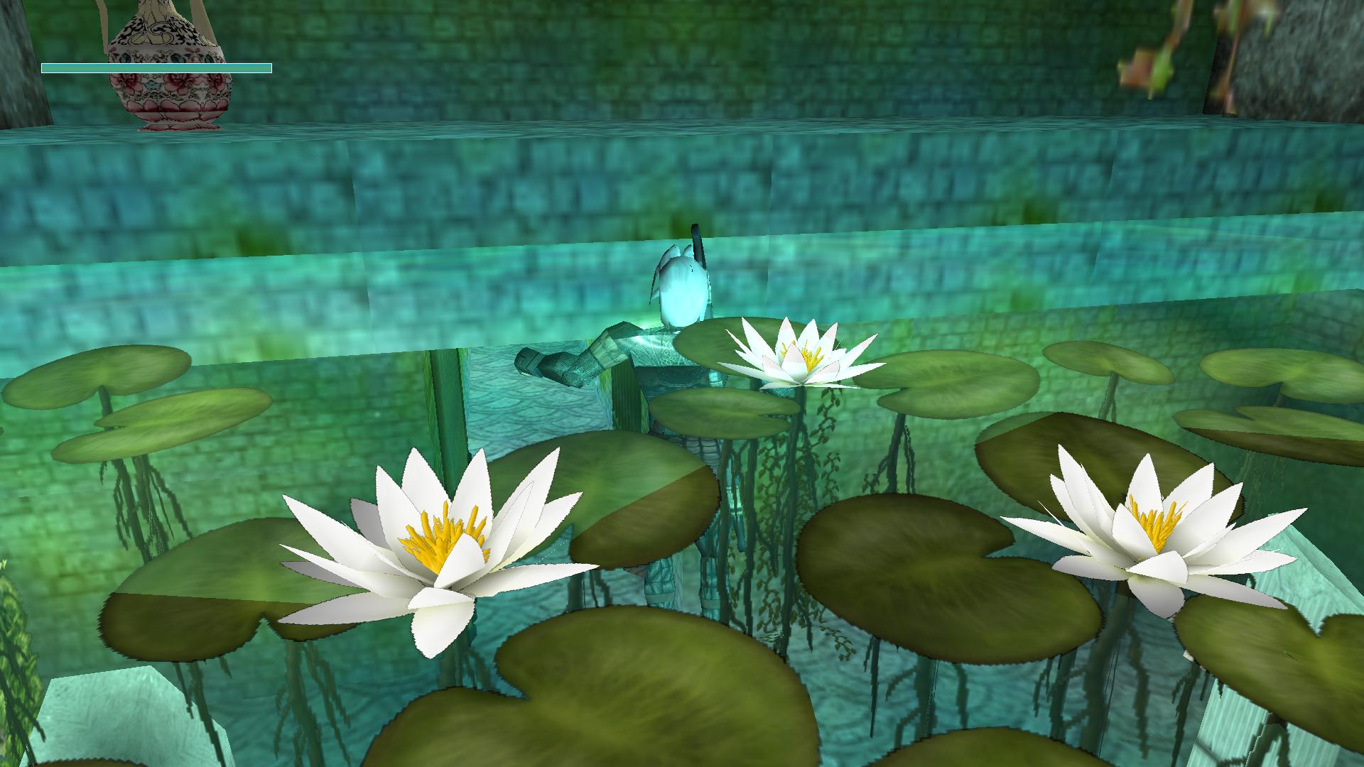 Menj ki innen, lődd szét az amphorát, és vedd fel az üvegcsét, ami a pályán a nagymedipack. A pályán minden amphorával ezt tedd, mert általában rejtenek valamit. Ess le a lenyílt csapóajtónál, és menj a medencéhez. A túloldalon is találsz medipackot, majd az innenső oldalon a víz alatt húzd meg a plafonkapcsolót. Ússz a kinyílt rácshoz. Mielőtt beúsznál, ments egyet, és végy egy mély lélegzetet, mert az ajtó bezárul mögötted, és ha nem úszol gyorsan, megfulladhatsz.