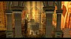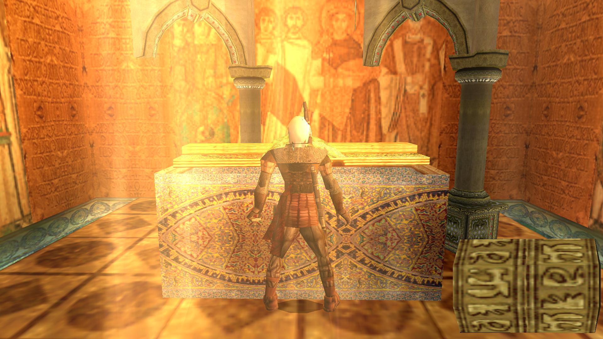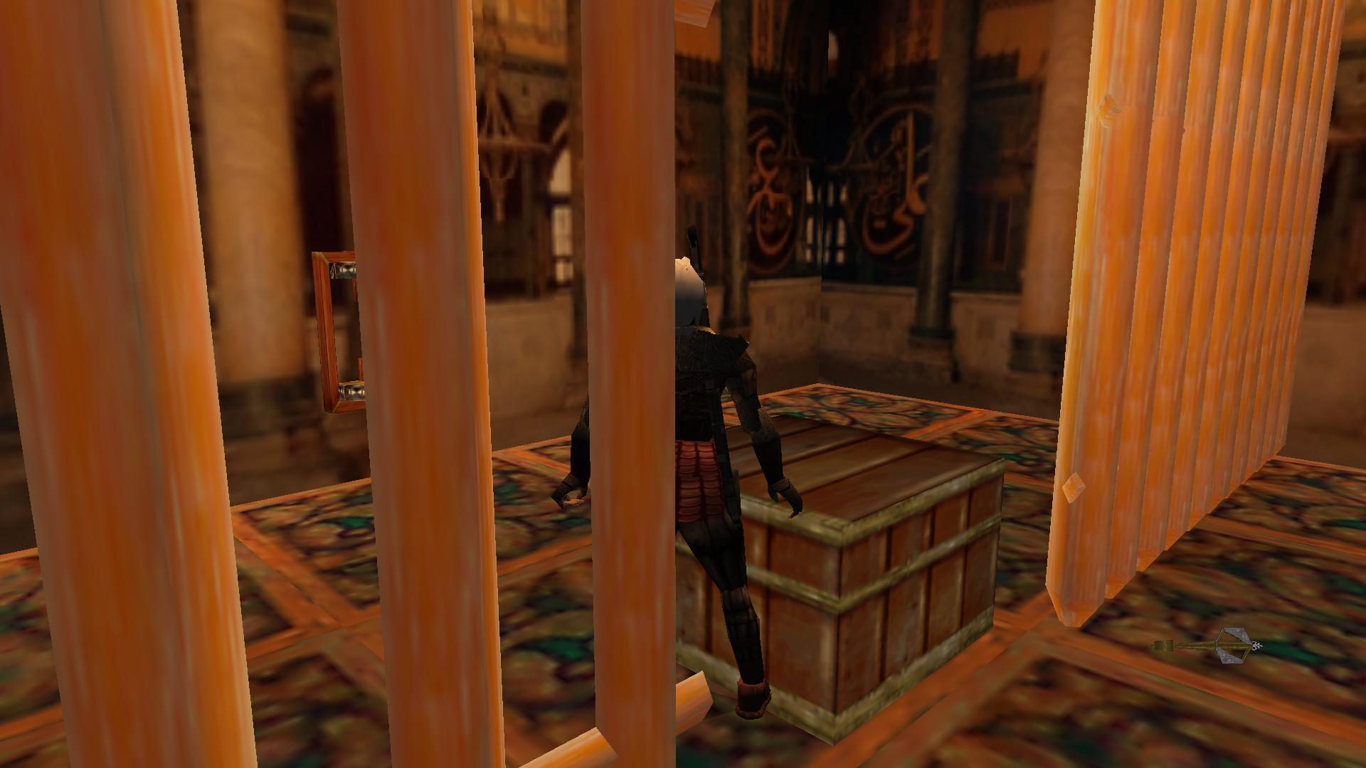 Rántsd le a baloldali elsőt, majd a harmadikat jobbra menve, a sarokban, majd a másik sarokban levőt. Menj át a kinyílt ajtón, és nézd meg, a szemközti bal sarokban a kárpiton levő jelet. Az X az. Húzd, told hát a mozgatható szobrot, a jelre. A rúdon mássz fel az emeletre, és ott is megnézheted a kárpitot, ott is az X az. Ott is told arra a jelre a szobrot. Lent kinyílt a rács, és felveheted az Emperor Justinian Icon-t.