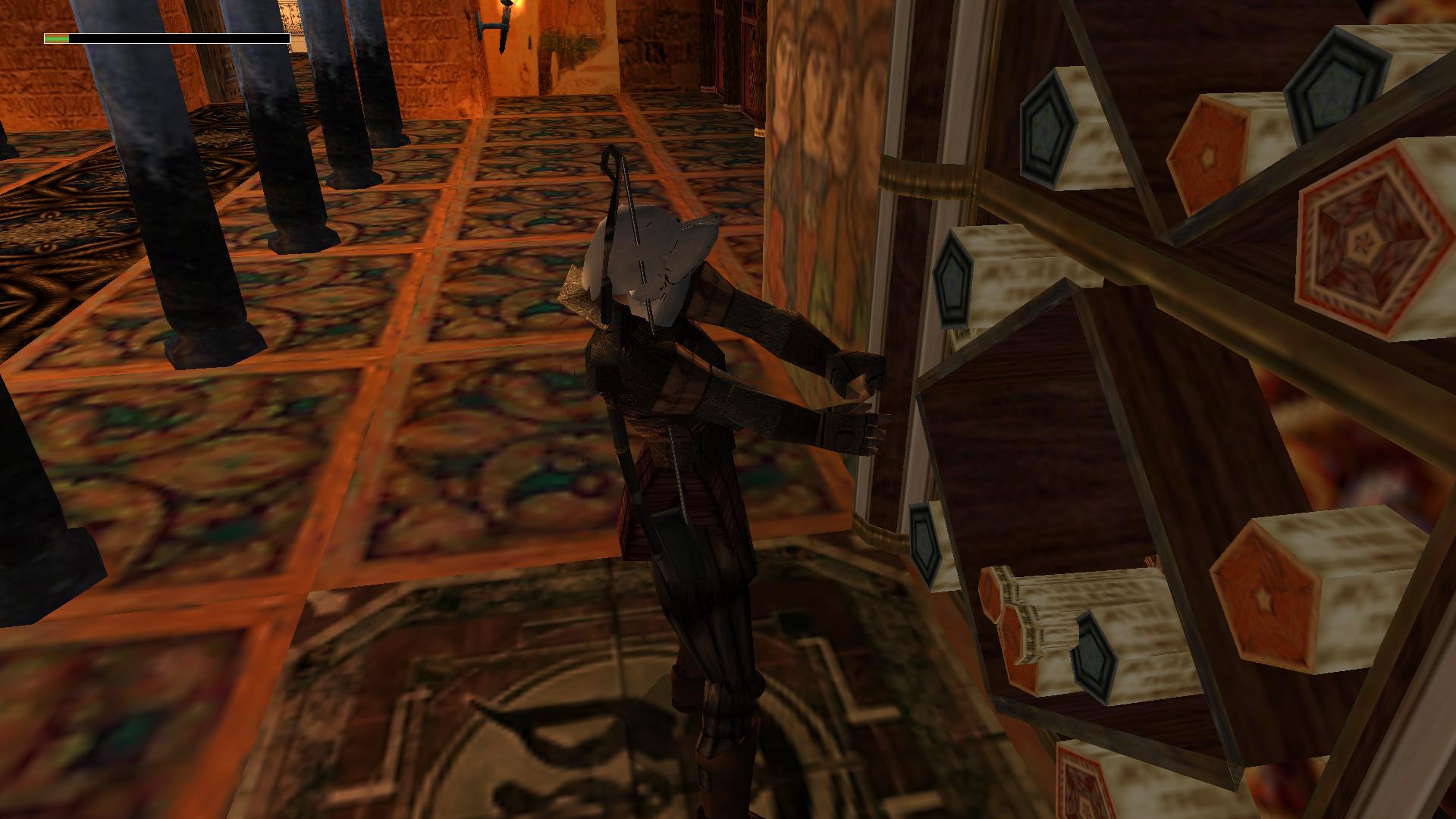 Menj ki innen, fel vissza a nagyterembe, És balra be, a másik kinyitott ajtón. Menj végig a folyosón, át a függönyön, és beérsz egy nagy terembe. Jobbra, a kripta mögött mássz fel a létrán, csimpizz balra, a platformra, majd nekifutásból ugorva kapd el a plafonlétrát. csimpizz el a másik platformra, és felveheted az Emptess Theodora Icon-t.