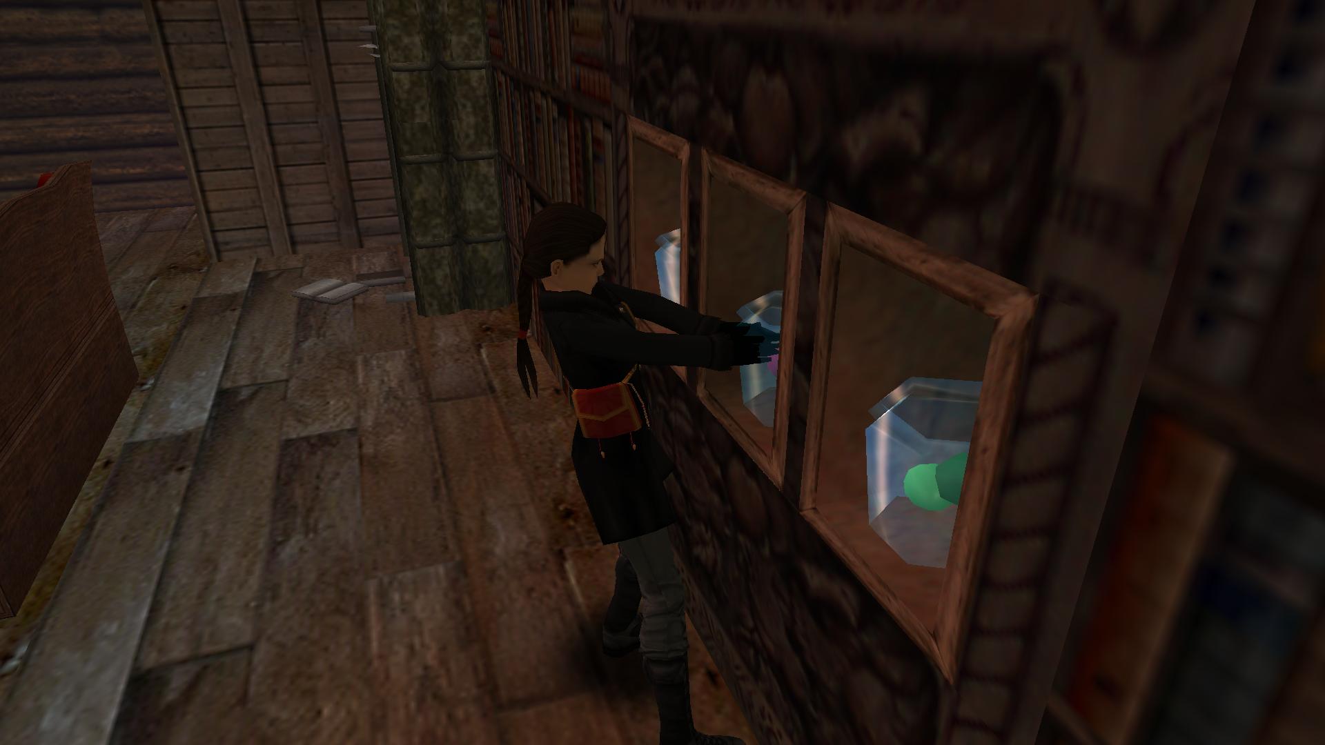 Menj vissza az időspirálon, fel a lépcsőn, kapaszkodj fel a könyvtárszobába, és rakd az üvegbe az üveggolyókat, majd balra tedd a vitrinbe. Menj ki, és mássz fel a megjelent rúdon a magasba.