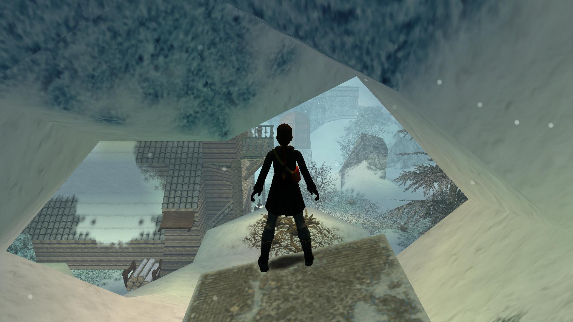 Menj az épület mögé, és vigyázva a legördülő hógolyókra, juss fel a magasba, ahonnan jöttek, majd a túloldalon lecsúszva egy újabb területre, egy nagy házhoz értél.