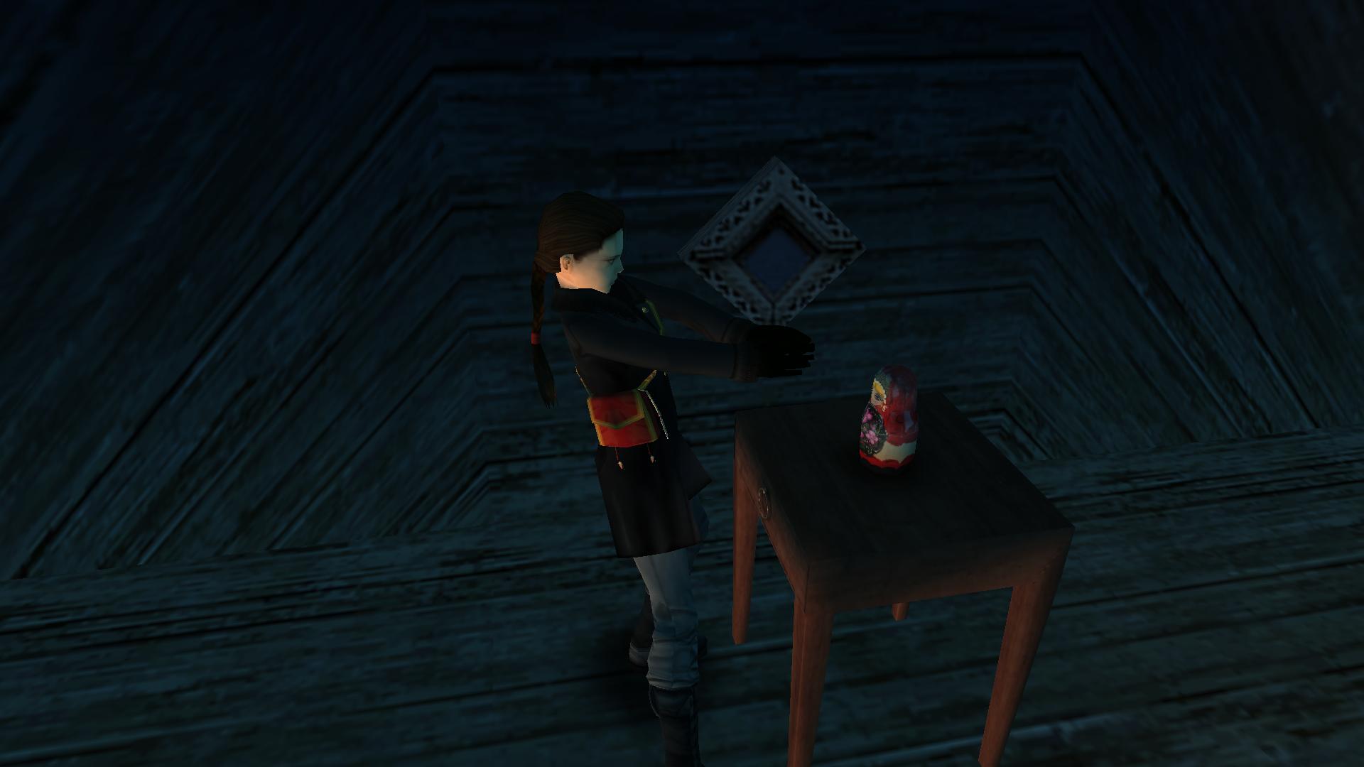 Menj most az épülethez, és nyisd ki az ajtaját a szerzeményeddel. Bent mássz fel a létrán az emeletre, a függöny mögött nyisd ki a baloldali teraszajtót, és vedd fel a kis emelvényről a Matryoshki babát.