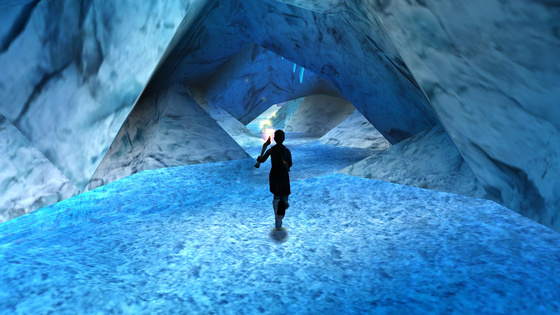 Menj ki vele amerről jöttél a szabadba, vissza egészen át a nagykapun, be az épületbe, és gyújtsd meg a kályhánál. Irány vissza a befagyott kis tóhoz, annak túloldalán gyújtsd meg a kis tábortüzet. Lesel a lenti folyosóra. A sziklákon át juss le a mélybe, menj végig a barlangon, de a fáklya a kezedben legyen. Egy újabb területre értél.