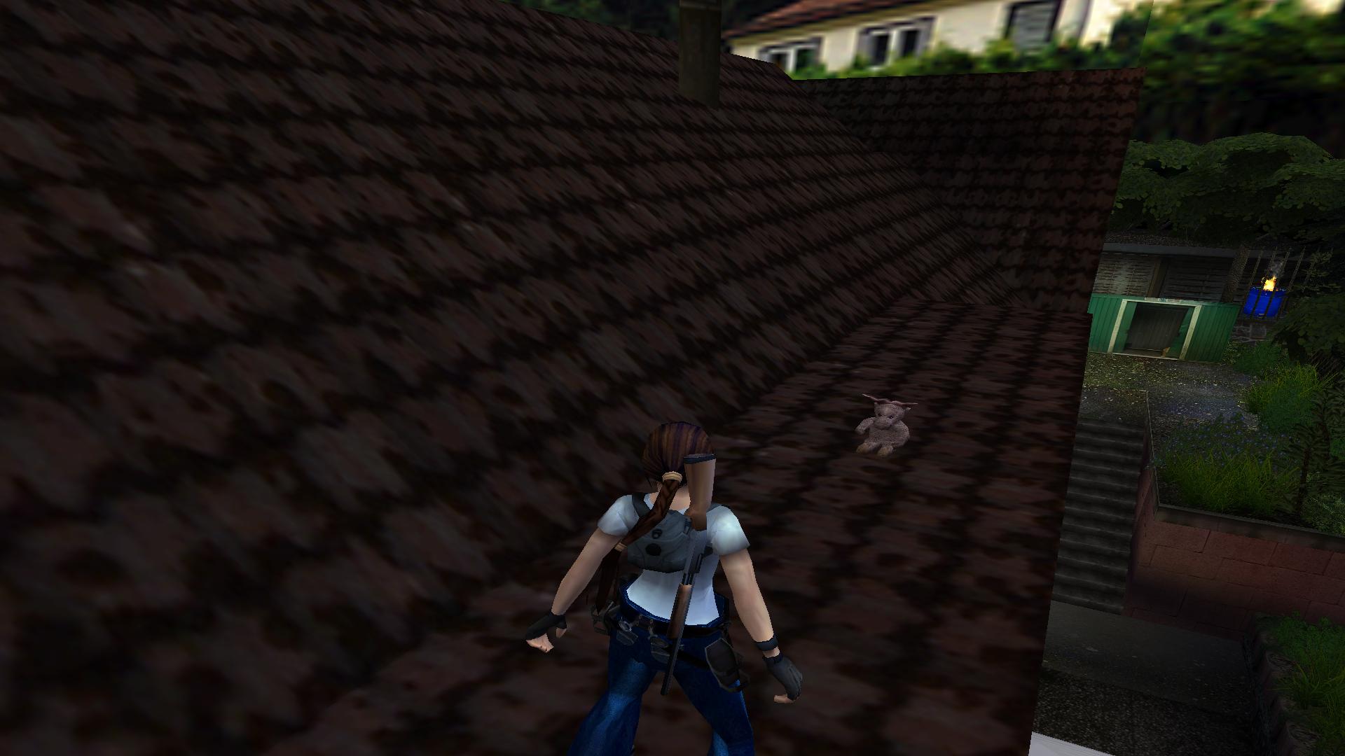 Menj fel ismét a felső házhoz, ott jobbra, ahol a két kuka volt, és a sarkon kapaszkodj fel a házra. Ugrás az erkélyre, és vedd fel a lőszercsomagot. Ezt a zárat még nem tudod kinyitni, menjünk hát tovább. Ugrás tovább, át a háztetőre, onnan a másikra a cserepesre. A kéménynél kapaszkodj fel, és ugord át a tetőgerincet. A túloldalon megtalálod a Masha’s Eli-t. Ez volt a 2. secret.