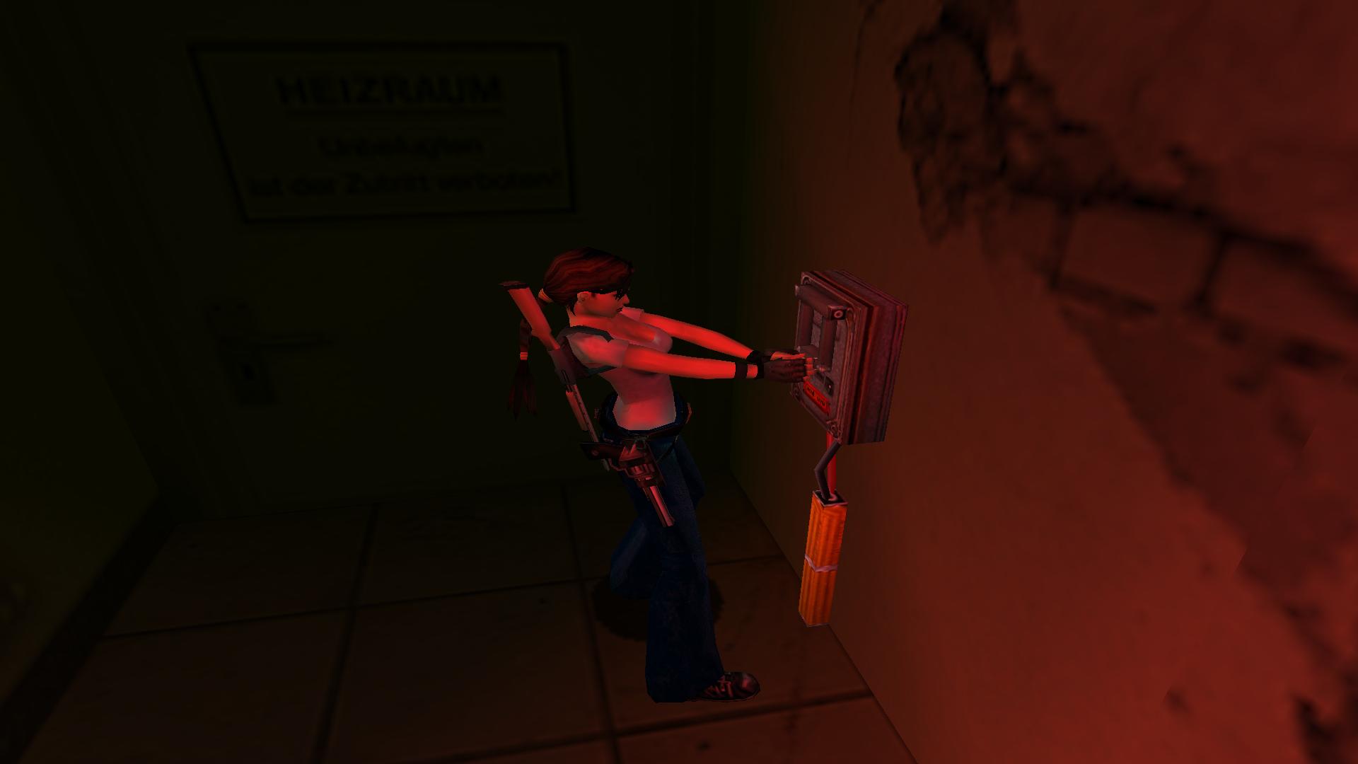 Menj lefelé, vedd fel a lőszert, és a szakadékhoz érve, célozva lődd szét a szemközti fagerendát. Ugorva kapaszkodj fel a rúdra, és csimpizz át a túloldalra. Csimpii, teljesen balra, és ott mássz fel a beugróba. A túloldalon ess le, menj balra, majd jobbra, a beugróban rúgd be az ajtót. Húzd ki bent balra a ládát, menj mögé, rúgd be a rácsot, és kússz be a járatba. Meg is találtad a Detonátor Kulcs-ot.