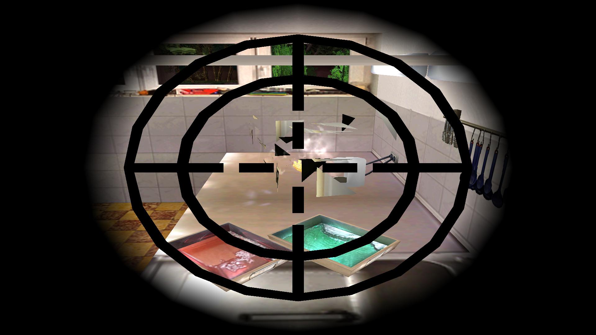 Kint a folyosón nyisd ki a kulcsoddal az ajtót, de előtte kombináld, az emeleten felvett White Painttal, így átfestetted fehérre. Bent, a polc előtt megtalálod a földön a Lézertávcsövet.