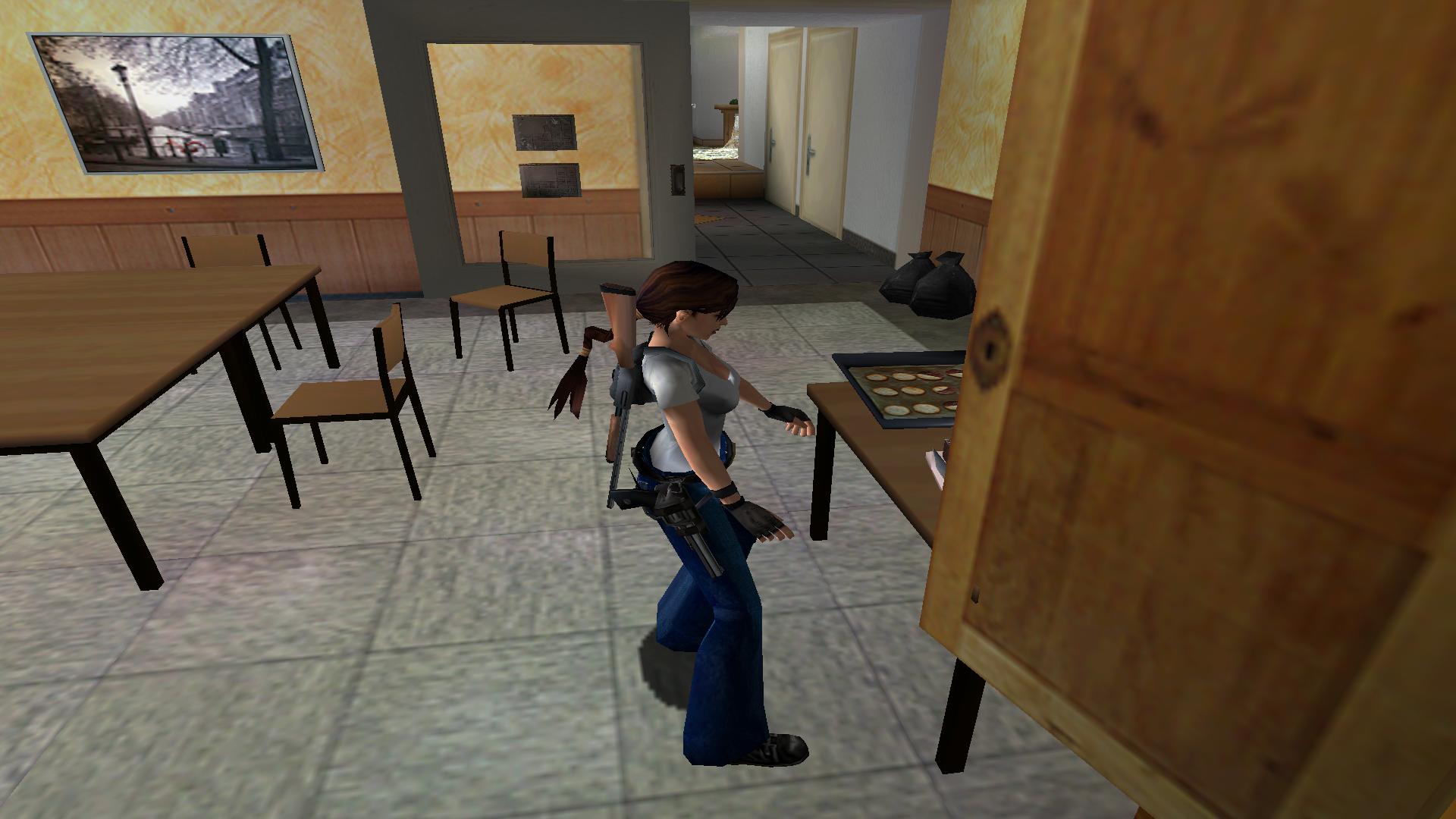 Tolj a csocsón hármat, majd egyet jobbra. Az asztalról vedd fel a lőszert, és a csocsóval szemben, menj át a kinyílt ajtón. Végig a folyosón, jobbra a wc-ben lőszert vehetsz fel, majd továbbmenve, jobbra, megint menj le a lépcsőn, az alagsorba. Az ebédlőben menj át a szekrényen, és a feszítővassal feszítsd szét a csövet, balról hozzáállva. Balra rakd a vezetéket a helyére, és húzd is meg a kapcsolót.