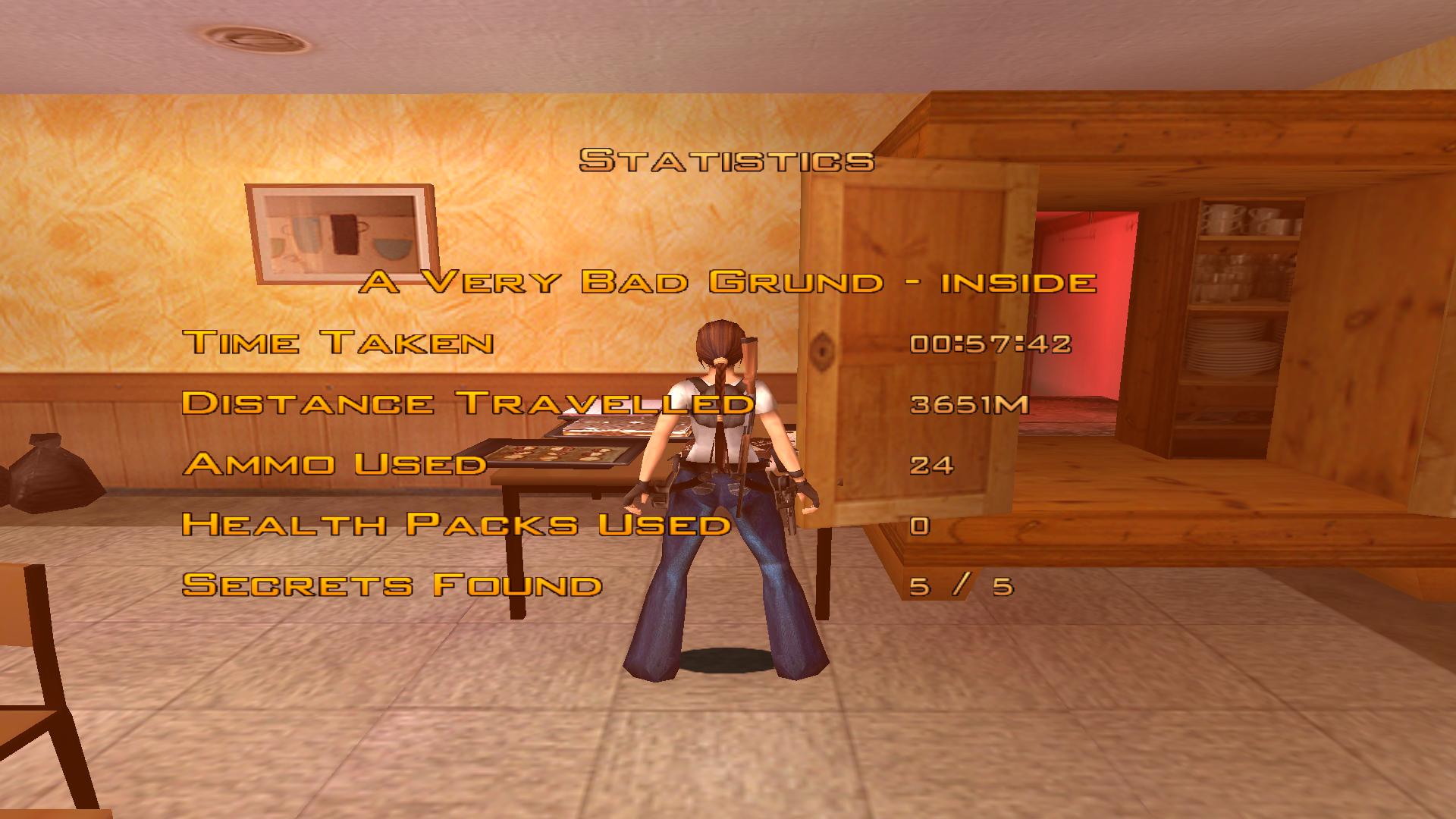 Illeszd össze a revolvert, a lézercélzóval, és menj ki. Menj le ismét az alsó szintre. Amikor leérsz a lépcsőn, fordulj vissza, és told el a legalsó lépcsőfokot, így lejutsz az alagsorba. A folyosó végén használd a csákányodat, és leesel egy titkos átjáróba.
