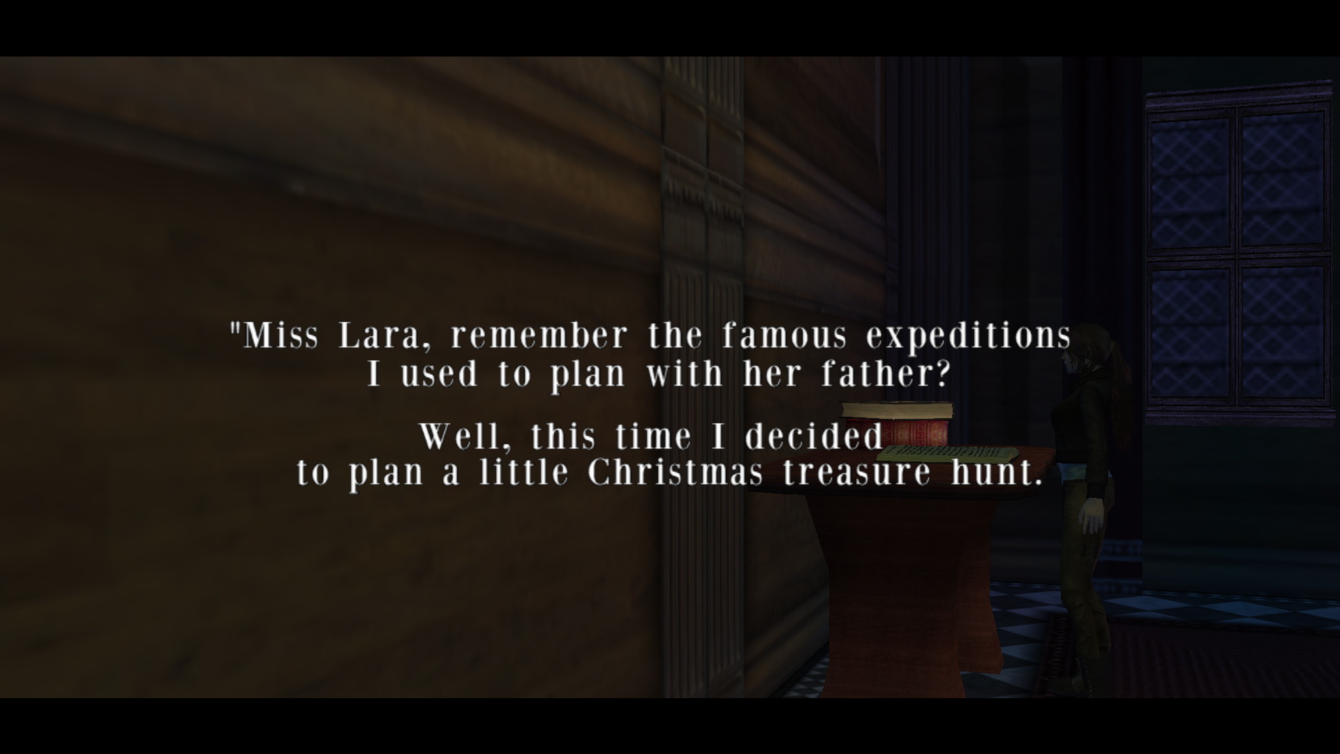 A sok kalandja közül az egyik Croft-kastélyban történet. Lara, Winston feljegyzését találja ott, amely egy kis karácsonyi kincsvadászatra szólítja fel. Lara készen áll a kihívásra.