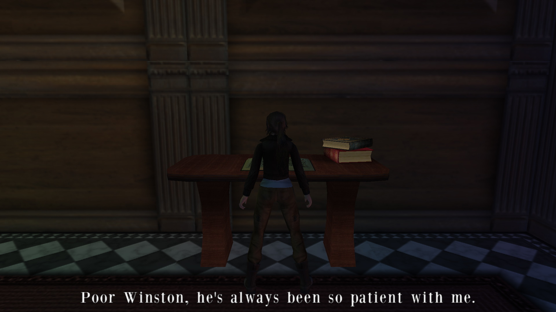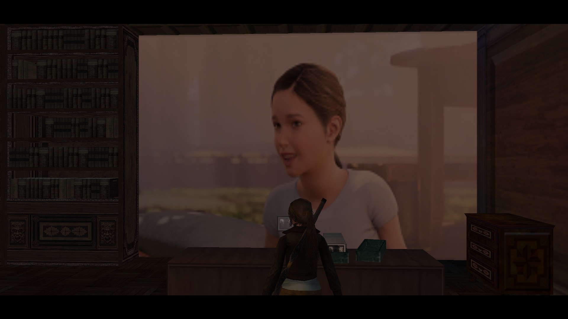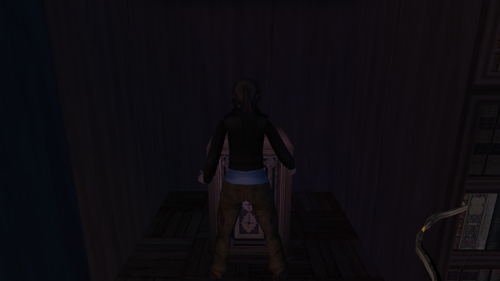Irány vissza az alagsorba, keresd meg, és nyisd ki a kulcsoddal az ajtót. Bent tekerd meg a kereket, és a nagy medence az uszodában feltelik vízzel. Menj tovább az alagsorban, ismét juss el a kis könyvtárba, és tedd a lemezjátszóba a CD-t. Menj ki az előszobába, húzd, told a most már mozgatható páncélt, be a szobába, a lemezjátszó melletti padlólapra. Mássz fel ismét az emeletre, és a megnyílt könyvespolc mögött felveheted a kis emelvényről a Bow-t, az Íjat.