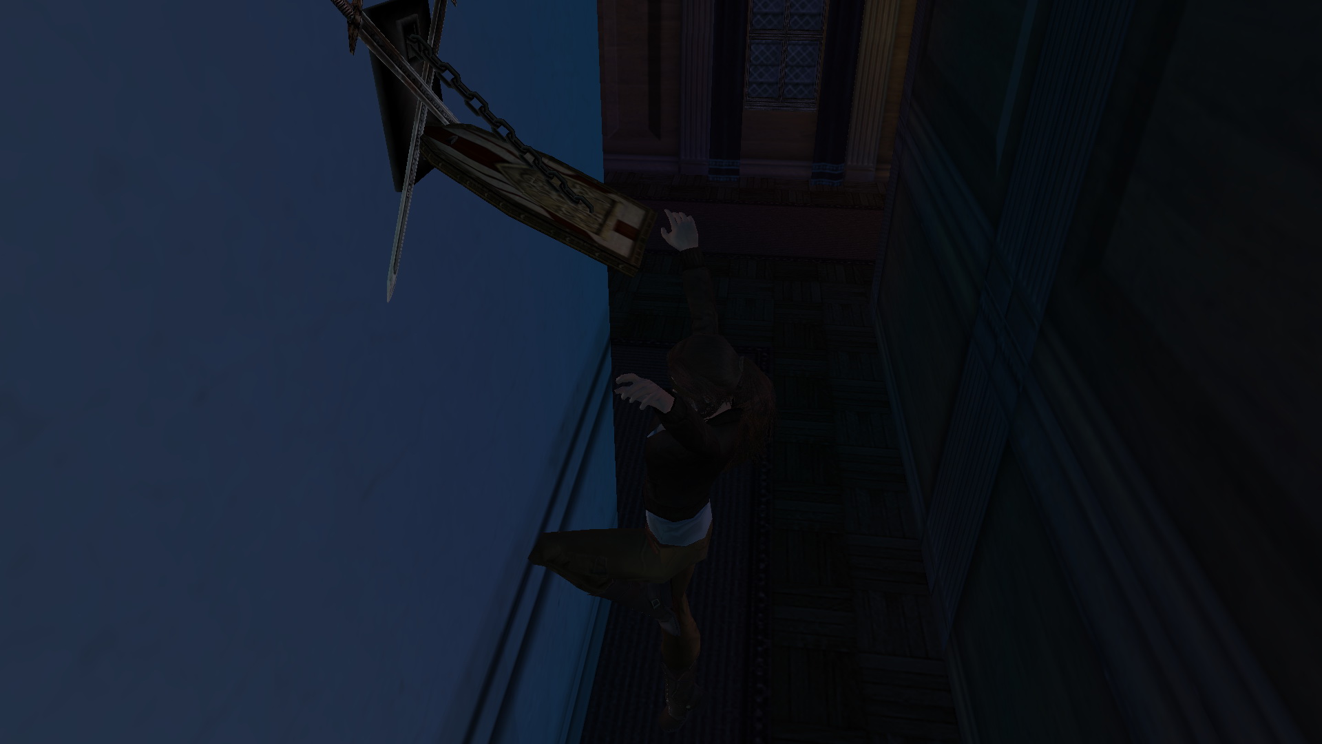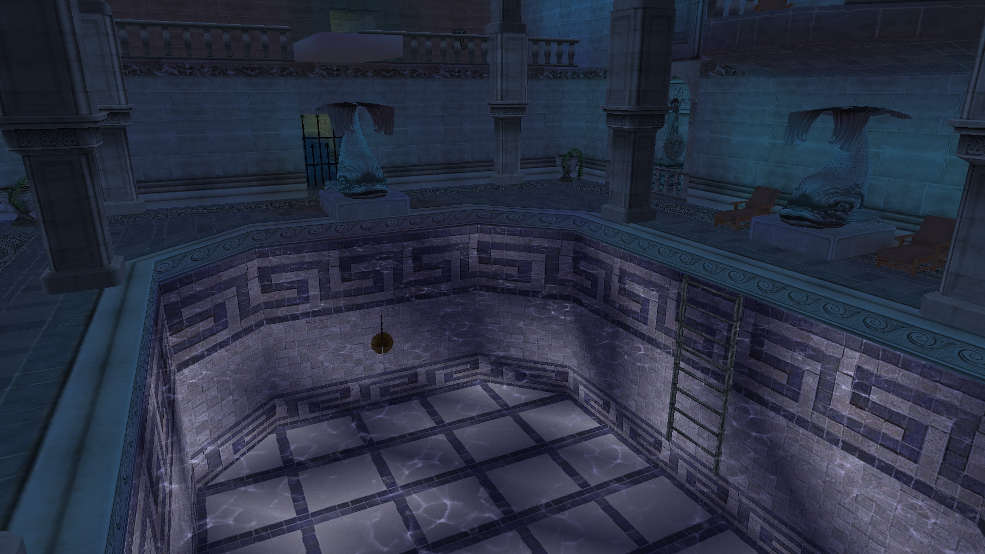 Menj balra, húzd ki a falból a halas szobrot. Ugorj a vízbe, és húzd meg a vízi kart. Mássz ki a medencéből, menj át a kinyitott rácson, fel a karzatra, és balra a fali kapcsoló előtt ments.