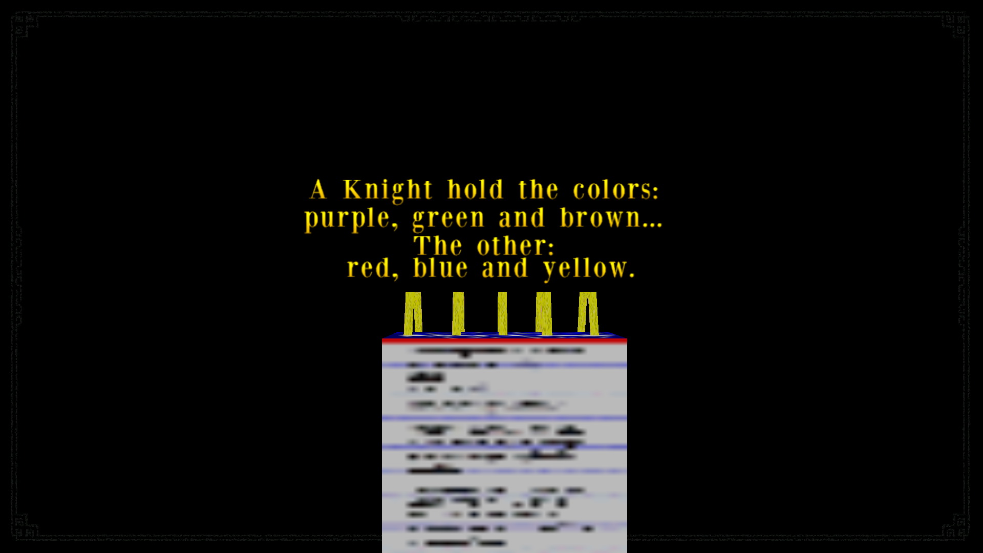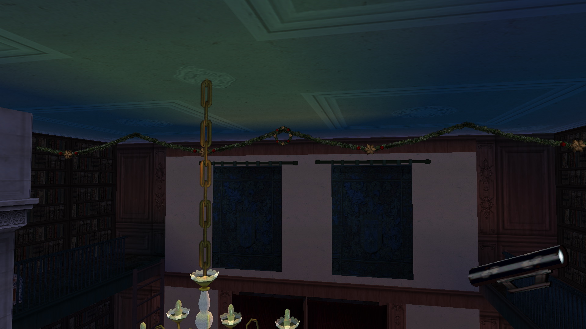 Menj ki a lépcsőházba, az emeleten menj jobbra, és a sarokban nyisd ki a mesterkulccsal a következő ajtót. Mássz fel az emeletre, menj körbe, és vedd fel a kis emelvényről a jegyzettömböt. A falon egy pajzsot is találsz, egy karddal. No da ted be a nálad levőt, és lent kinyílik az első vaskapu. menj le, és told a páncélokat a jegyzettömbben feltűntetett mödon. A vaskapu mellett, és oldalt is különböző pajzsok vannak, a szerint kell tologatni őket. A kép segít, ha végképp nem tudod. :) Ha sikerült, kinyílt a másik kapu is, és felveheted a 3. Karácsonyfadíszt, az X-mas Balls-t.
