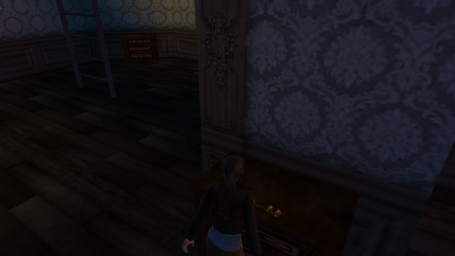 A mesterkulcscsal nyisd ki az ajtót, és menj ki rajta. Menj ki a lépcsőházba, egyenesen át az emeleten, majd jobbra menve nyisd ki az ajtót a mesterkulccsal. A kis szobában a kis sszekrényről emeld le a Basement Key-t.
