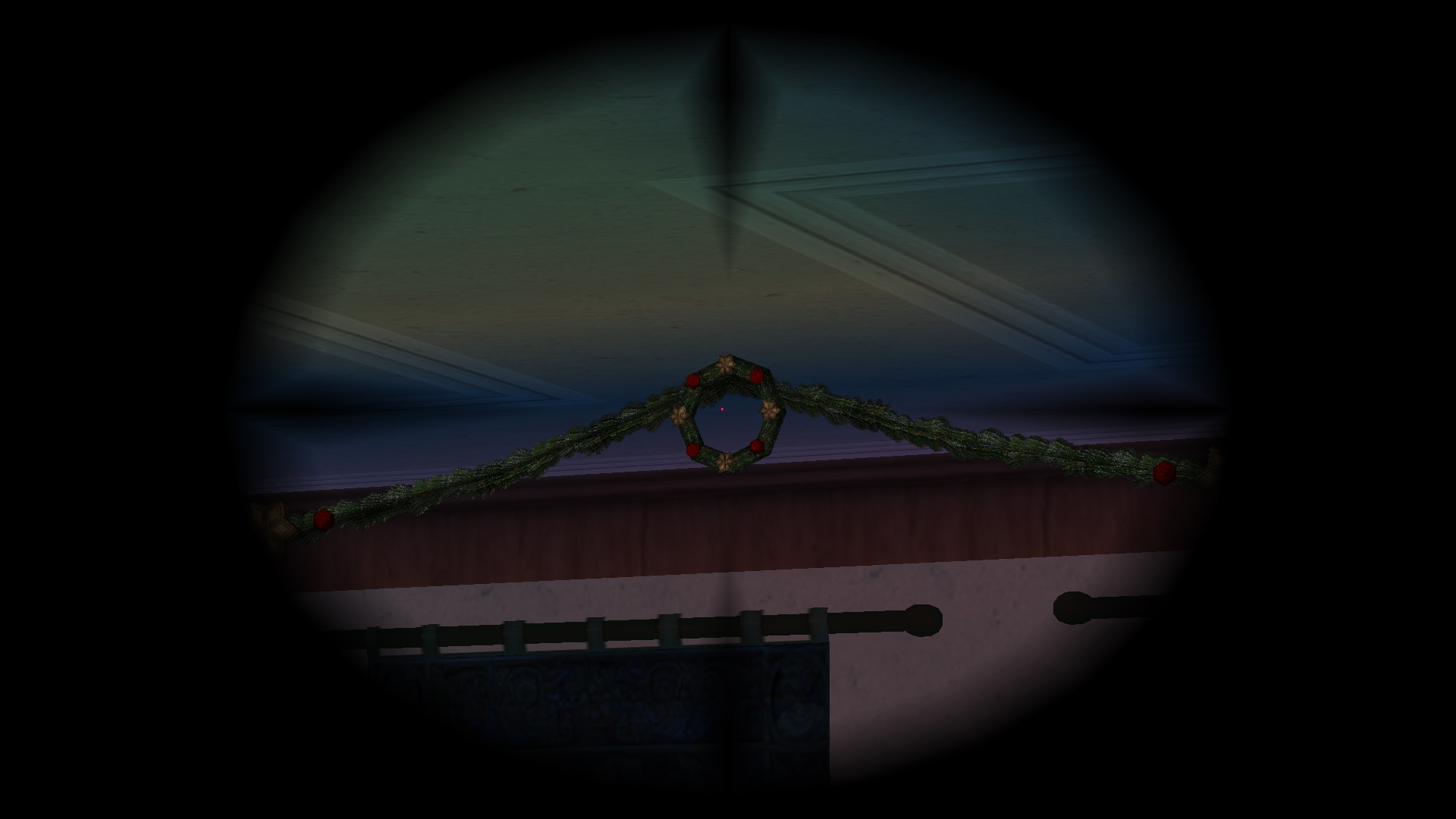 Illeszd össze, és célozd meg a magasban, a kis koszorút, ami a két erkélyt összekötő karácsonyi füzéren van. Egy kötél jelent meg. Mássz fel a ládához, ahol a lézertávcsövet találtad, és a kötélen át juss el a másik erkélyre, ahol a ládában megtalálod az 1. Karácsonyfadíszt, a Silver Tinsel-t.