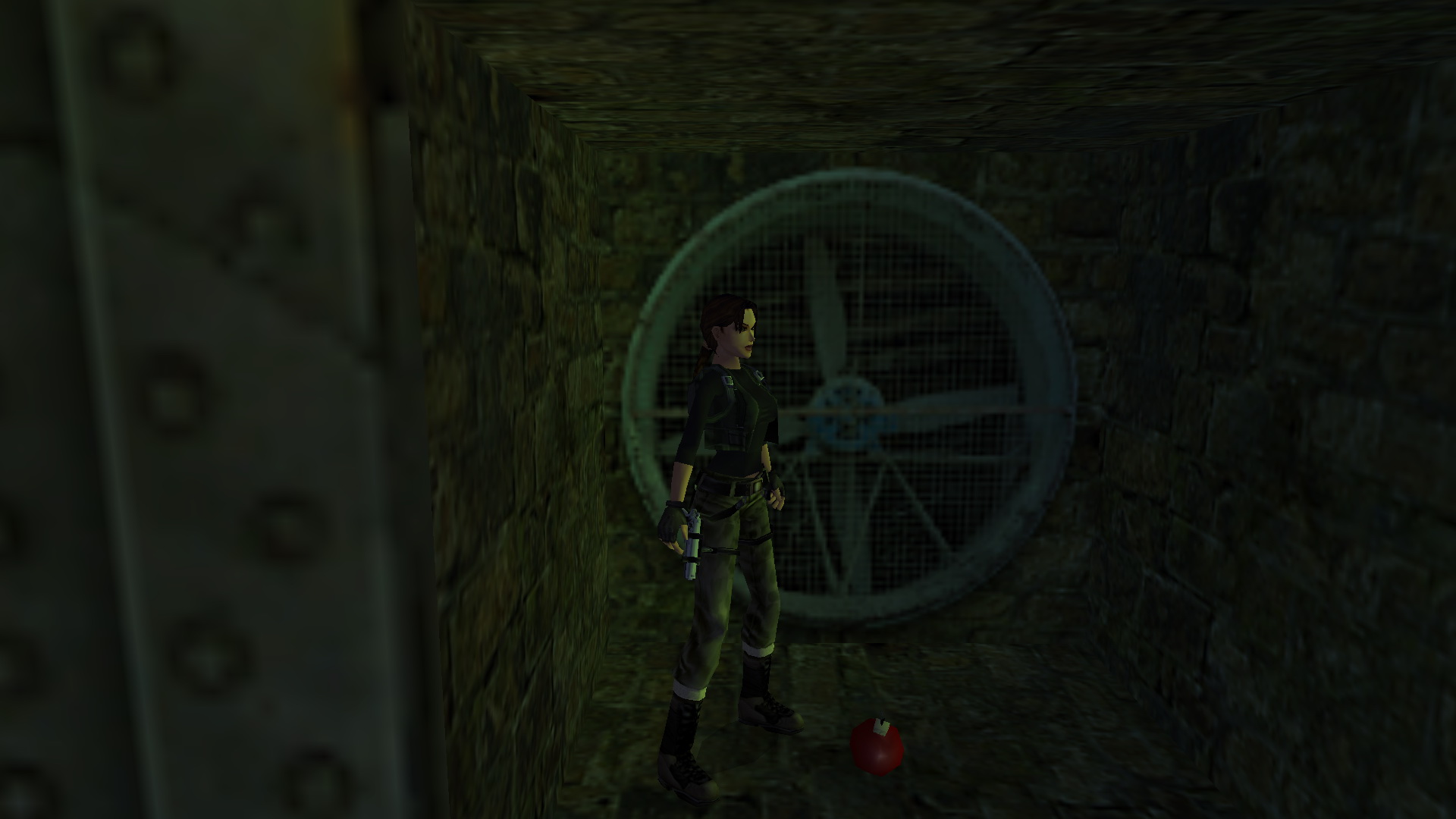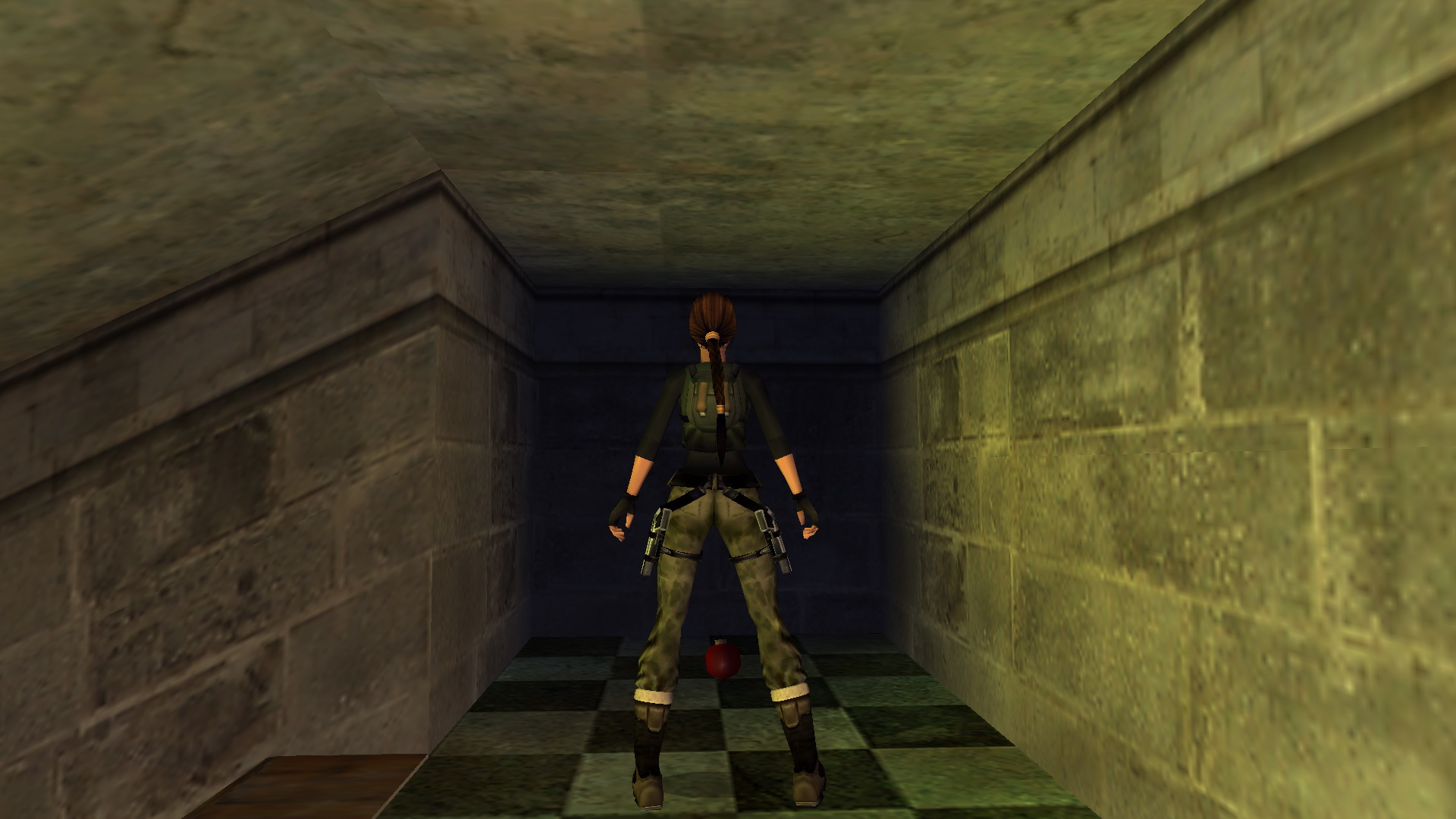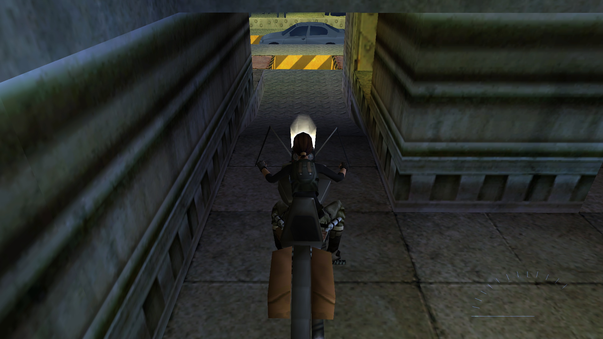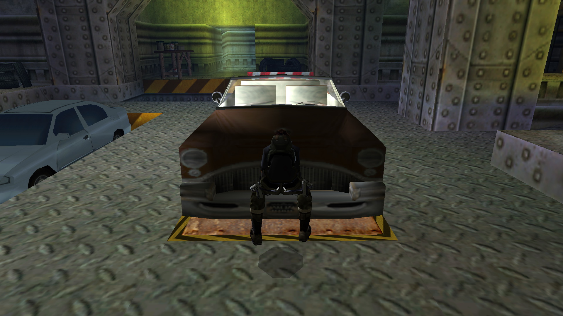 Menj le a lépcsőn, és szemben, a tér bal sarkában menj be a folyosóra, ugord át a kerítést, és egy raktárba érkeztél. Balra egy láda mögött vedd fel a csokit, ami a medipack a pályán.