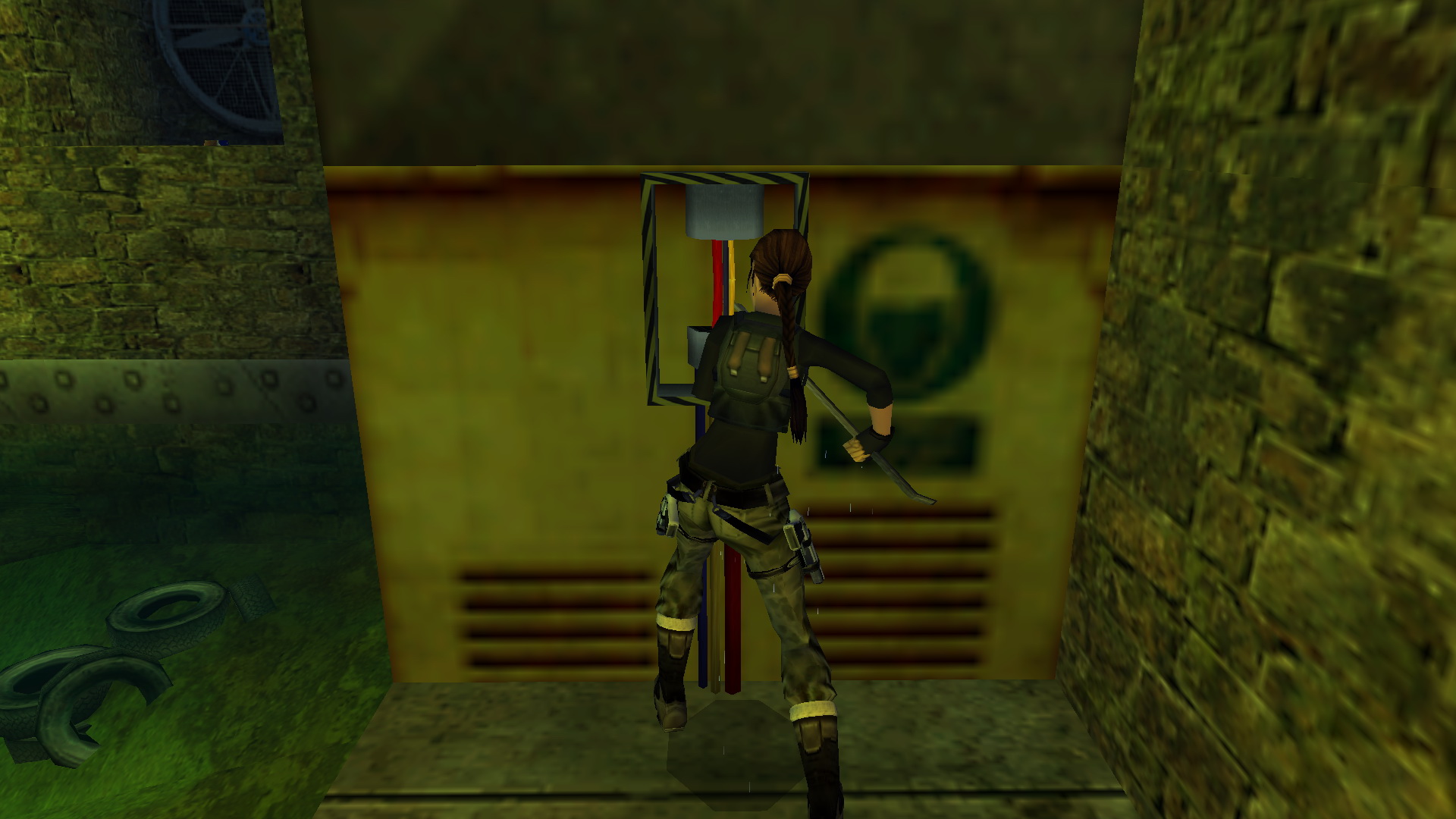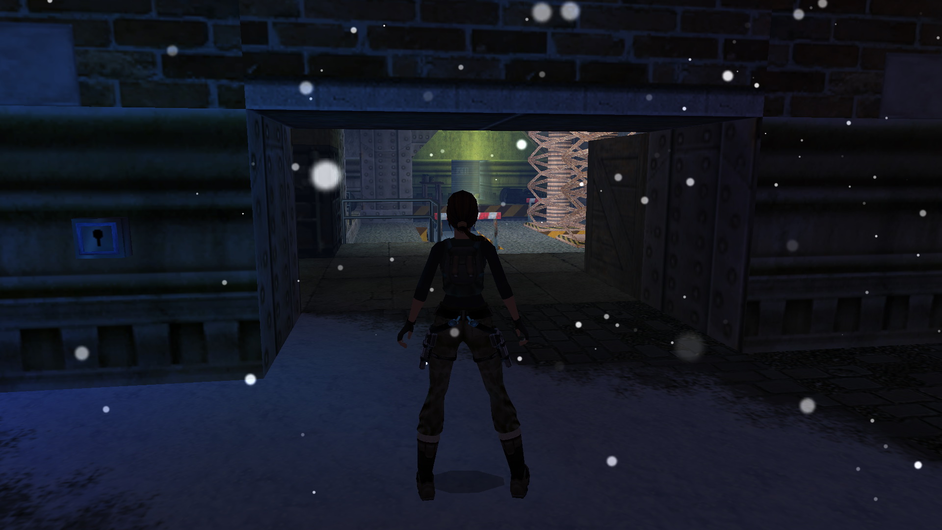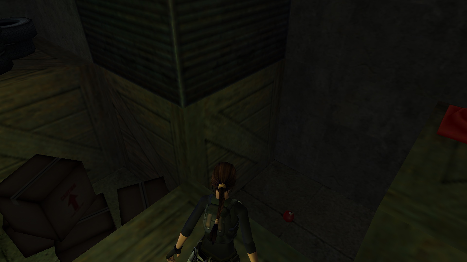 Told a magasabb ládát, az alacsonyabb mellé, így felkapaszkodva rajta keresztül feljutsz az emeletre. Jobbra nyomd meg a fali kapcsolót, így a daru leenged egy ládát. Ugrás rá, majd tovább a fali platformra, onnan a másikra, ahol megnyomva a gombot egy ajtó nyitsz ki. gyorsnak kell lenned, irány vissza, megállás nélkül a leengedett ládára, és az felemelkedik veled, ha sikerült. Ugrás át a hídra, és jobbra tartva, egy kis folyosó végén egy újabb fali gombot nyomhatsz meg. Újabb ajtót nyitottál ki. Fordulj meg, ugrás vissza a hídra, ott jobbra menj, leesve a kis erkélyre, menj át a kinyitott ajtón, egy raktárba.