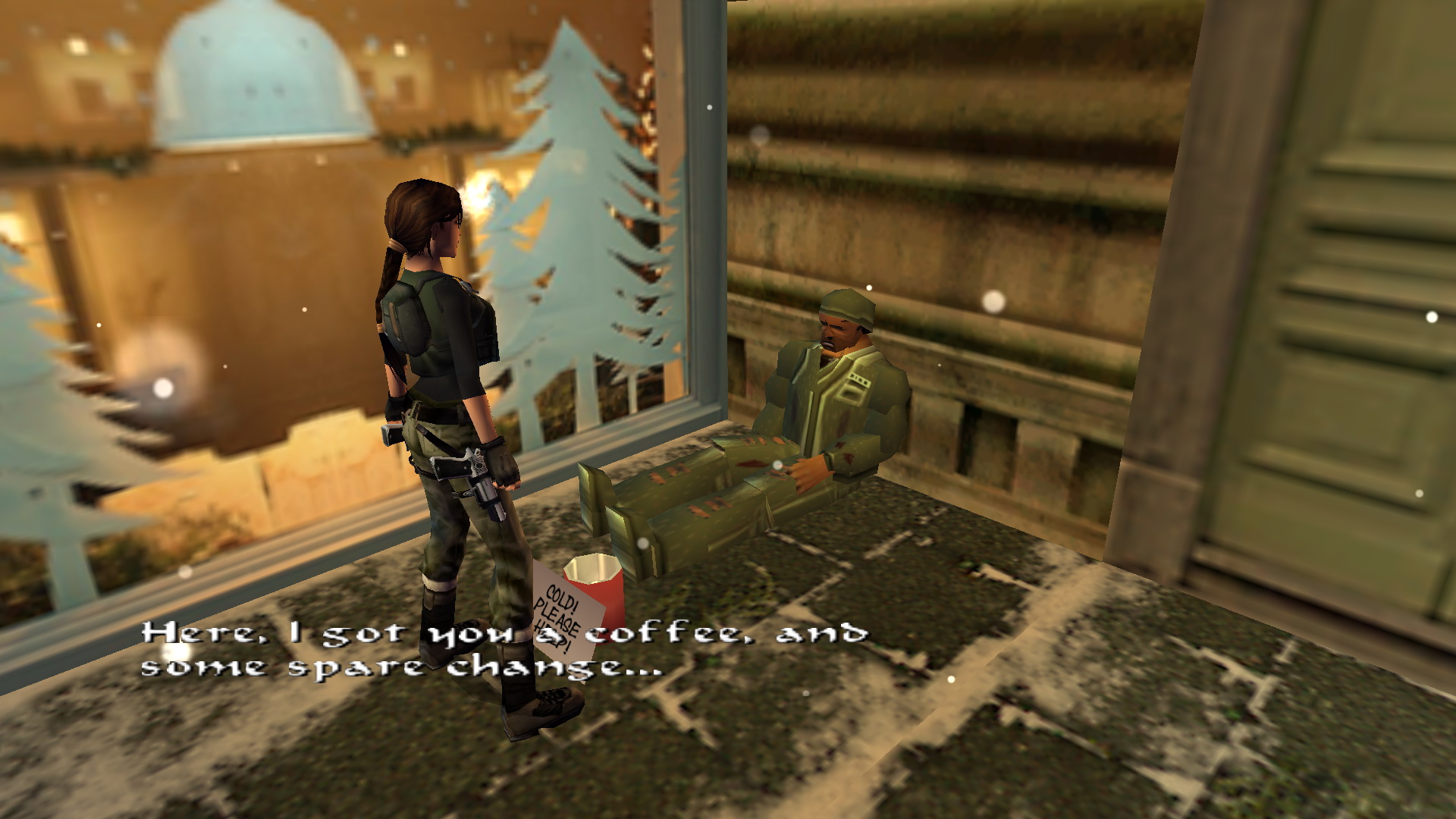 Menj vissza, egészen a hajléktalanhoz, és nyisd ki a kávézó ajtaját. vele szemben. A karácsonyfa mögött csokit találsz, majd szétlőve a fali festményt, meg is van a 12. Decoration Secret-et, a 12. secret- ben.