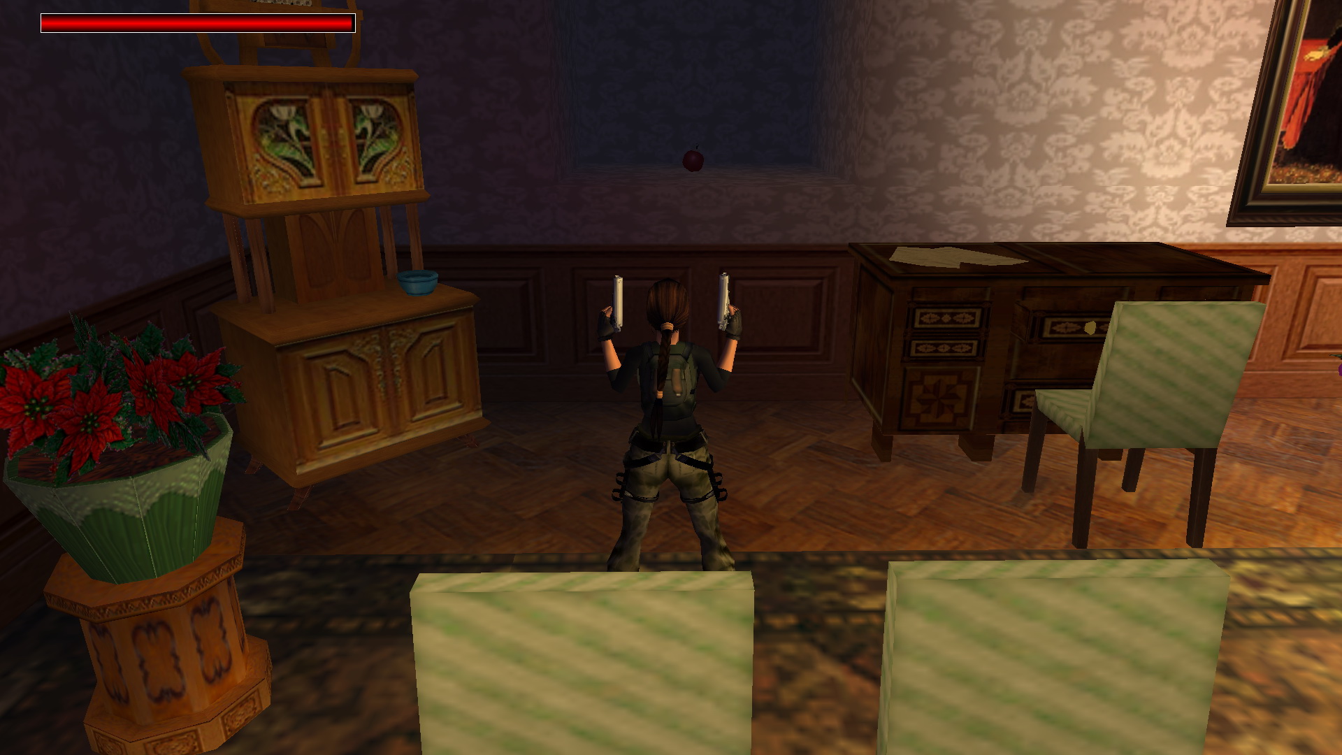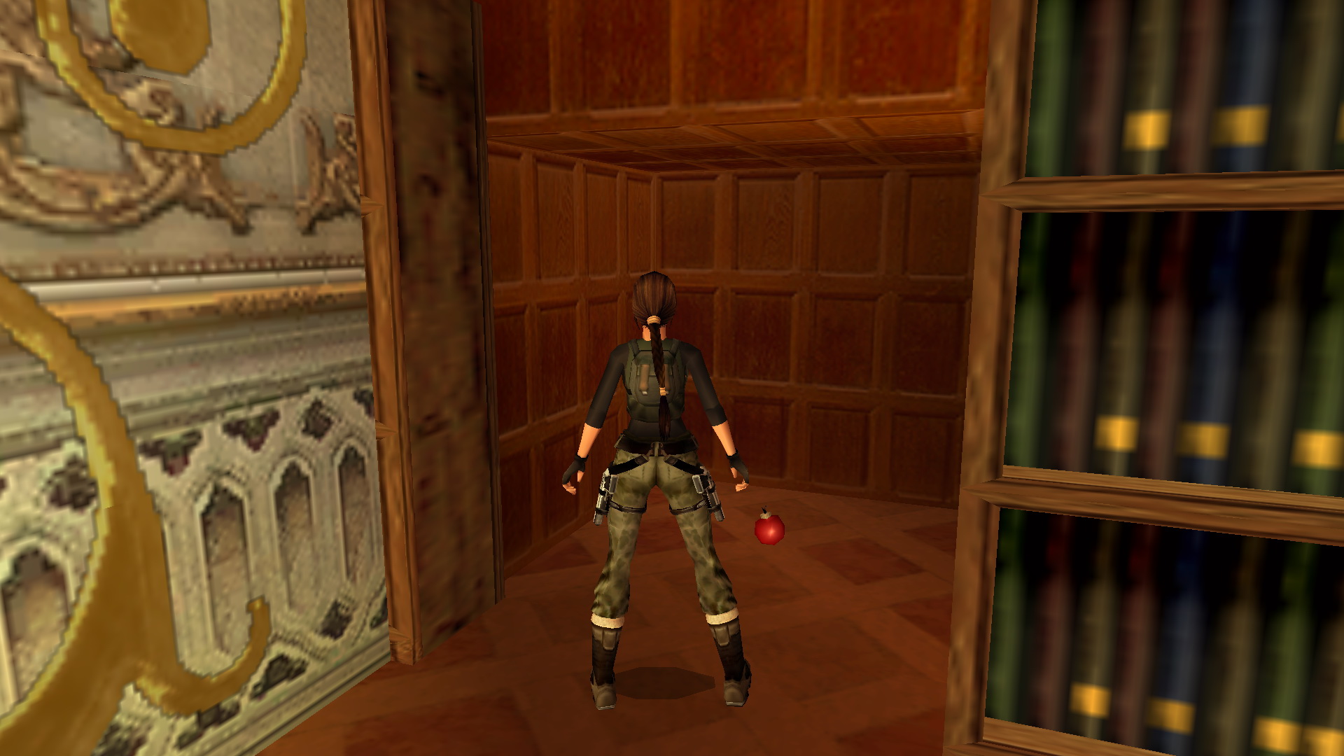 Balra lődd szét a falon a festményt, és felugorva a beugróba, húzd meg a kapcsolót. Fent a nagyszobában elmozdult egy könyvespolc, és mögötte megtaláltad a 11. Decoration Secret-et, a 11. secret- ben.