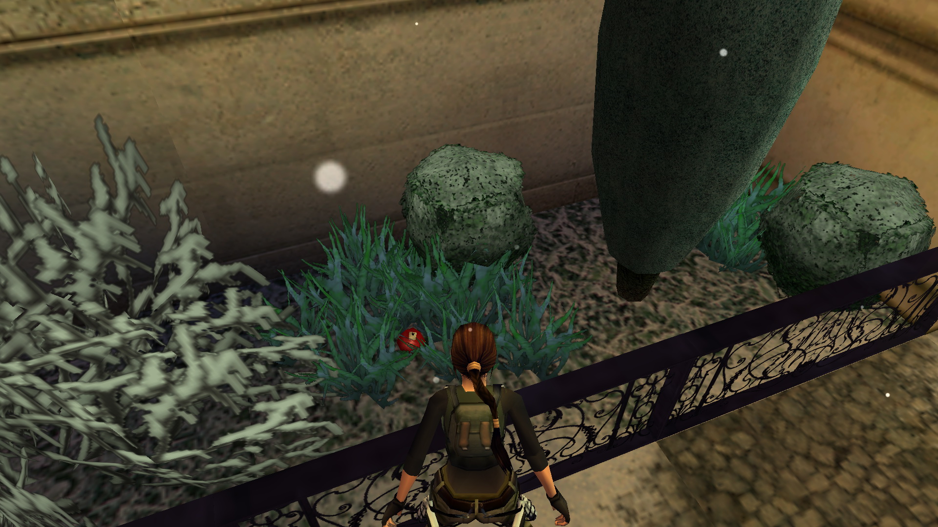 Juss fel a ládák tetejére, egészen a kis erkélyre kell eljutnod, ahol a fali gombbal kinyitod lent az ajtót. A kijárat mellett jobb oldalira juss fel, majd átugorva a baloldalira, vedd fel a fáklyacsomagot, és onnan megfordulva, nekifutásból elkapod a szemköztit, és onnan már eljutsz az erkélyre. Juss, le, és menj át a kinyitott ajtón, a folyosó végén told ki a ládát, és húzd az erkély alá. Mássz fel, fel az erkélyre, lődd ki az ablakokat, és bent a kis szobában jobbra, a sarokban a kis szekrényről leveheted a Park Keeper’s Key-t.