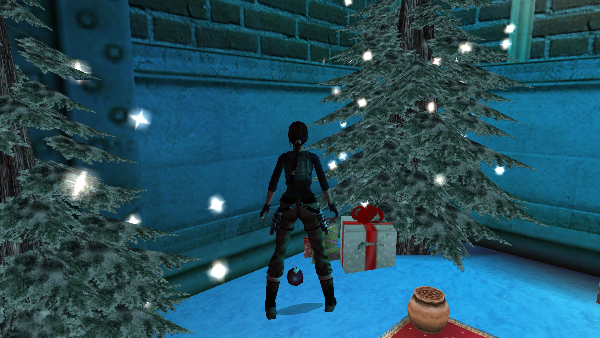 A három oszlop mögött csokit is találsz, majd menj vissza a kriptákhoz. kapaszkodj fel a baloldali tetejére, onnan át a másikra, fel a falra, menj körbe, és a karácsonyfáról leveheted a 8. Decoration Secret-et, a 8. secret- ben.