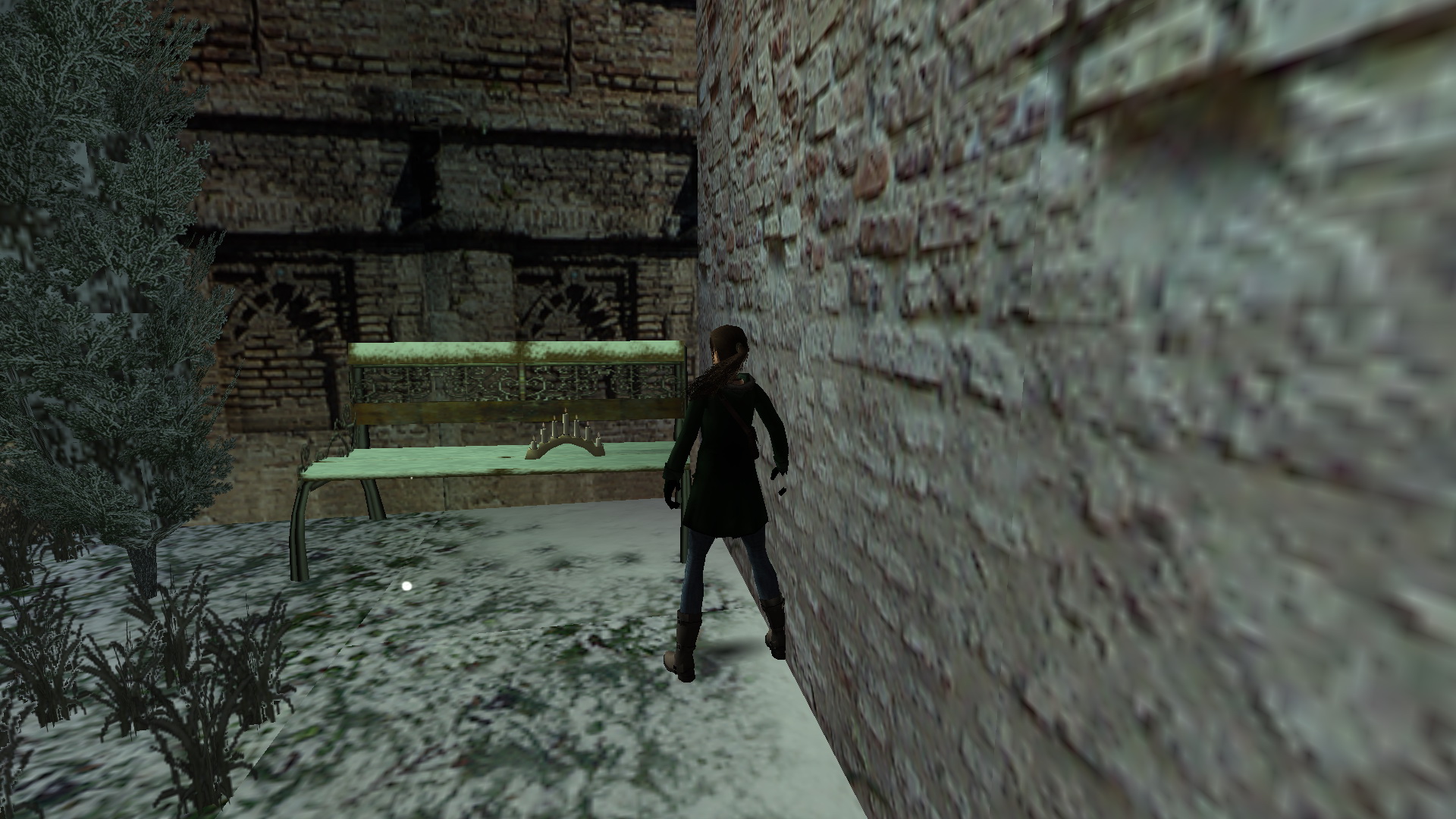 Nekifutásból kapd el a tetőt, csimpizz balra, és a sarkon túl ess le a hóba. a padról felveheted a Menorah-ot a 3. secret-ben.