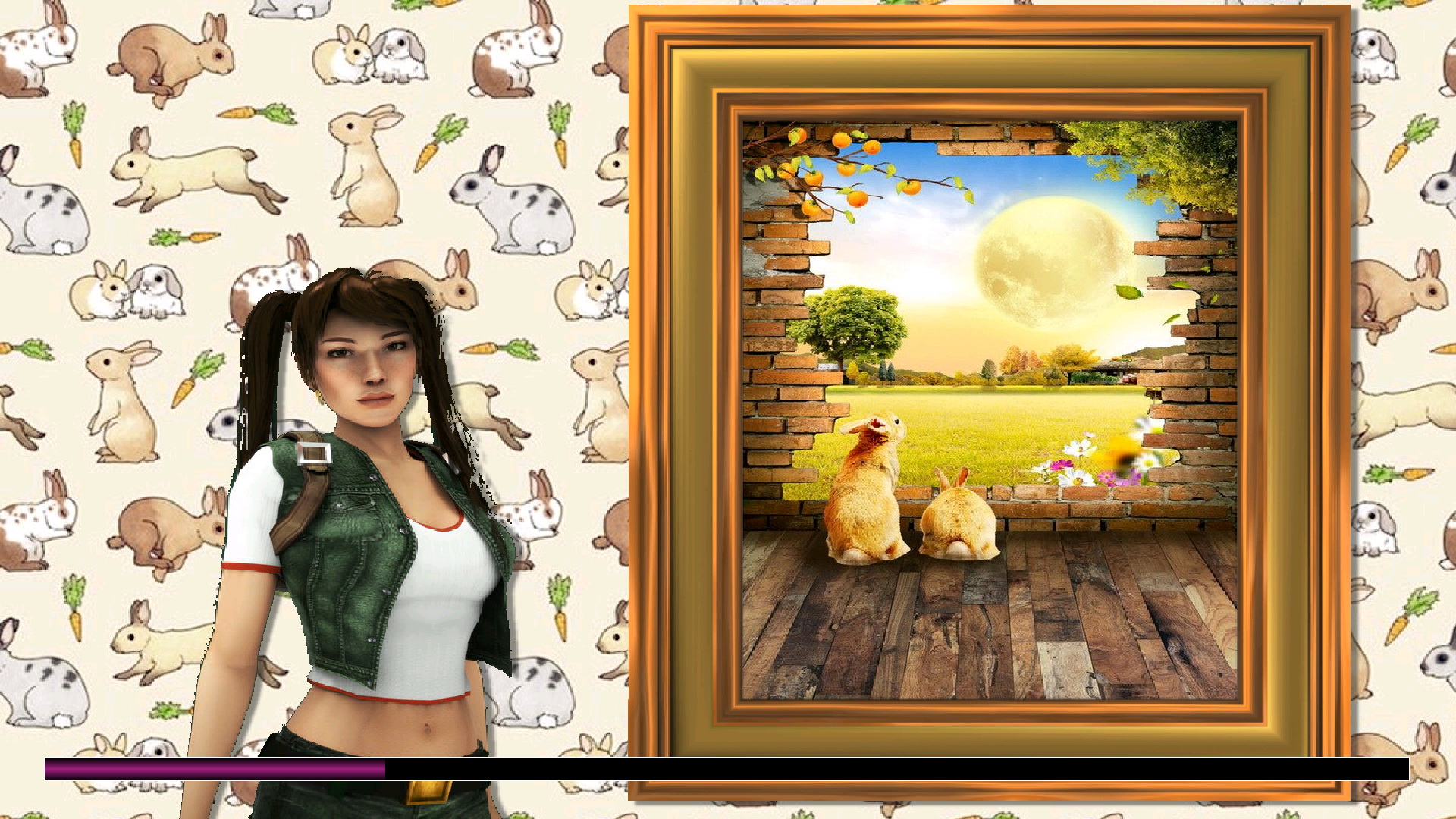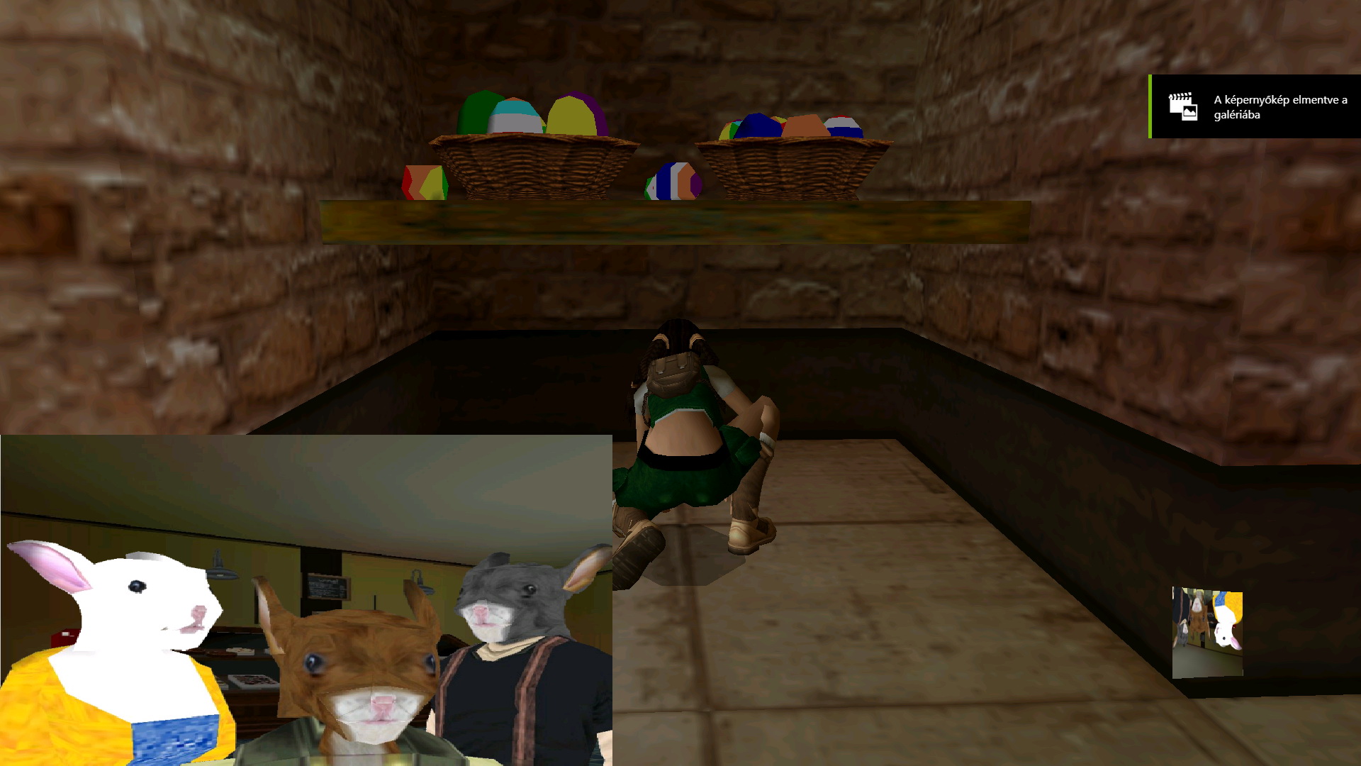 Miután megkaptad a feladatod a nyuszibácsitól, menj ki jobbra, az erkélyre. Menj balra, és a végén egy kismedipackot vehetsz fel. Menj vissza, majd a másik irányba menve, nézz fel a végén a falra, látsz egy rést, de ez majd később. menj le a térre, akár átugorhatod a korlátot is. Menj a szökőkutas térre. nyiss be a zöldségesbe, de csak feladatot kapsz egyelőre. Menj ki, és nyiss be a kávéházba is. Ott is feladatot kapsz a nyuszi pincérlánytól. Egy régi kép kell neki. :) De azért menj be a pult mögé, és a vitrinből vedd ki a torták alól az 1. Hímes tojás-t.