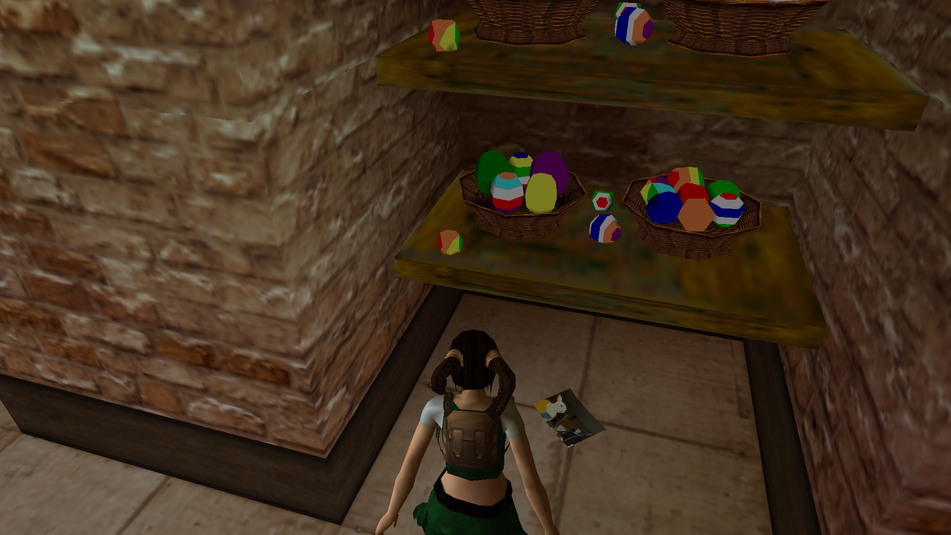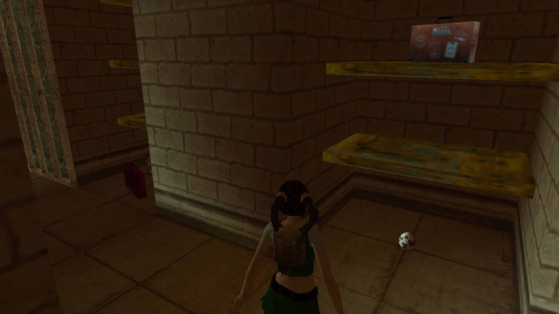 Menj ki, le a lépcsőn, és nyisd ki a harmadik ajtót is a kulcsoddal. Menj le a lépcsőn, és a másik kulcsodat is használva, még lejjebb mész az épületben. Ugord át szemben a csövet, menj balra, és az oszlop mögött felugorva kapd el a rést a falon. Ugorj feljebb, és még feljebb, csimpizz balra, és hátraugorva kapd el a mögötted levő oszlopot. csimpizz át a túloldalára, majd egy fordulásos hátraugrással kapd el a másik oszlopot. Most balra csimpizz, megint egy hátraugrás, és azon az oszlopon felmászva, nekifutásból rántsd le balra a fali kart. Lejutva, balra vedd fel a nagymedipackot, és balra menve, a sarokban menj fel a lépcsőn. A raktárban egy újabb Tojást vehetsz fel leguggolva, majd egy Képet.