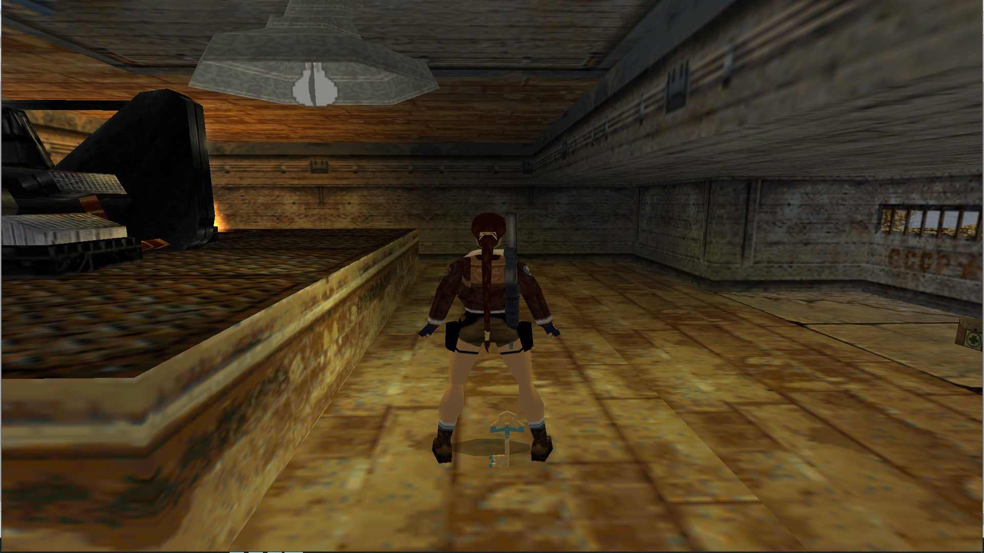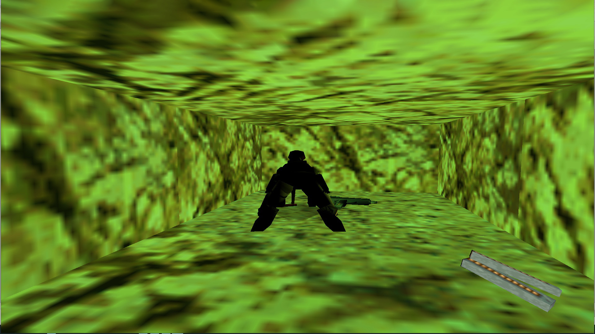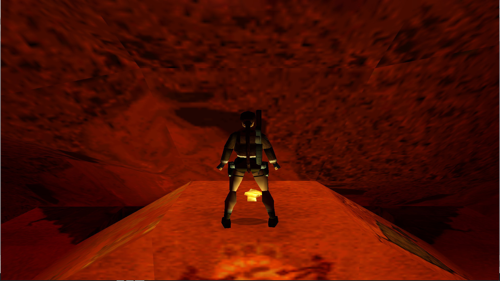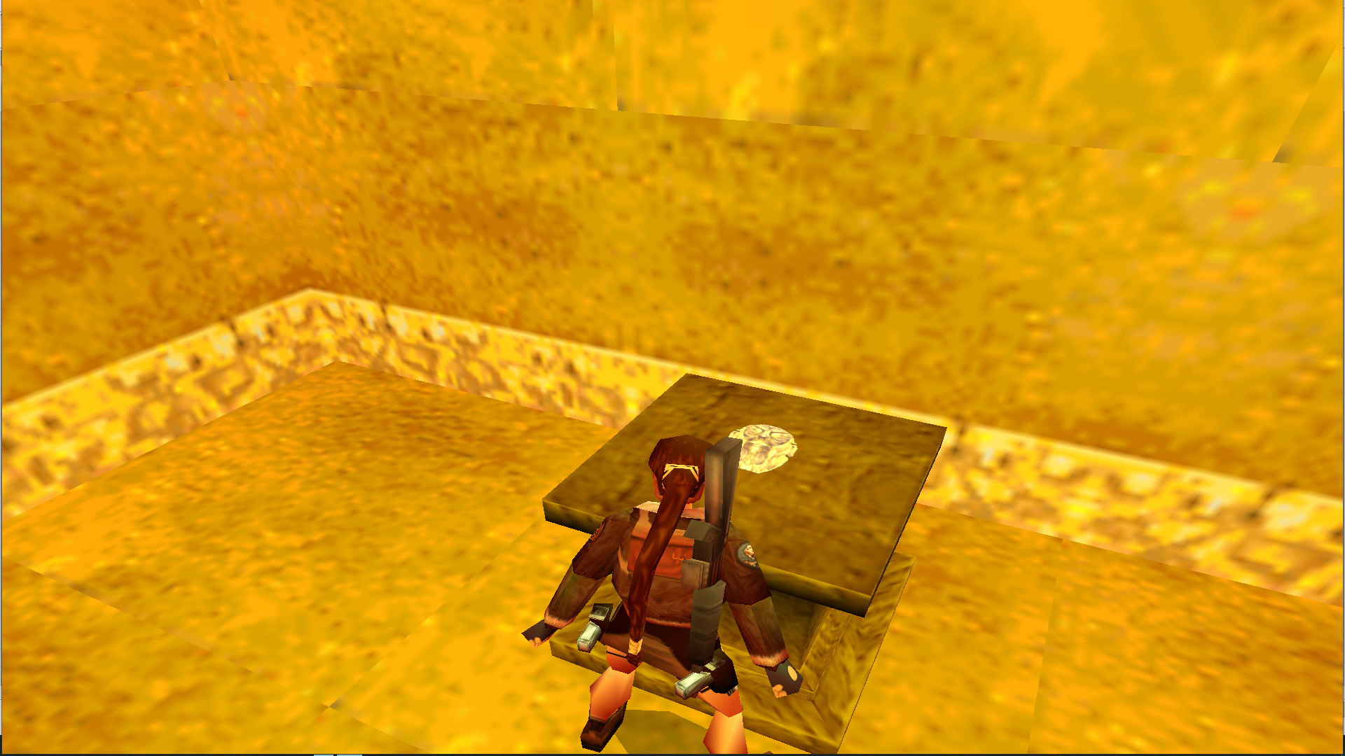 A kapu mellett vedd fel a kismedipackot, majd átmenve rajta, a folyosó végén ugrás a létrára, mássz le, mássz jobbra a gödörnél. csúszás, ugrás, kapd el a túloldalt, és beértél egy hatalmas, aranyfolyamos terembe.