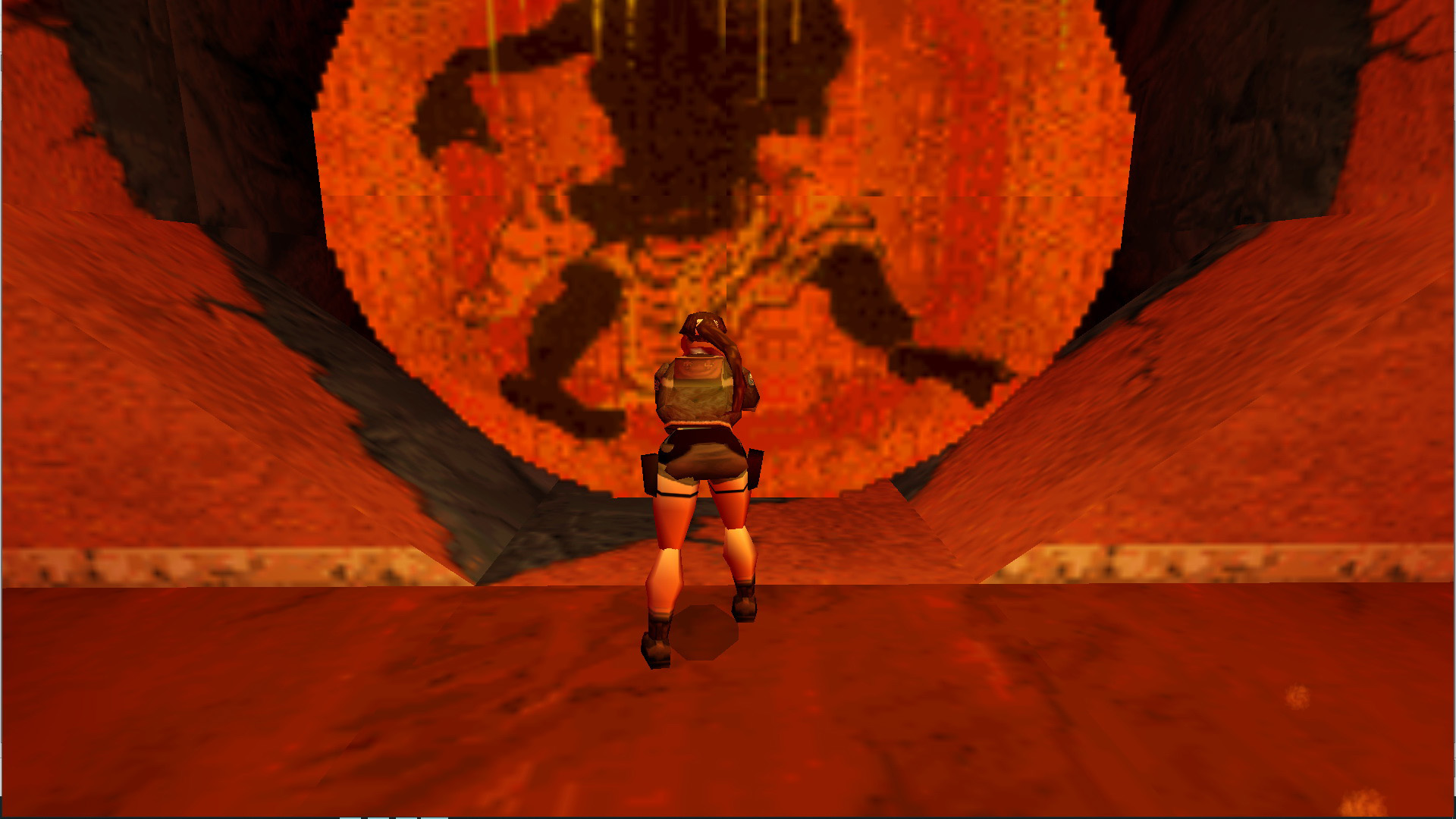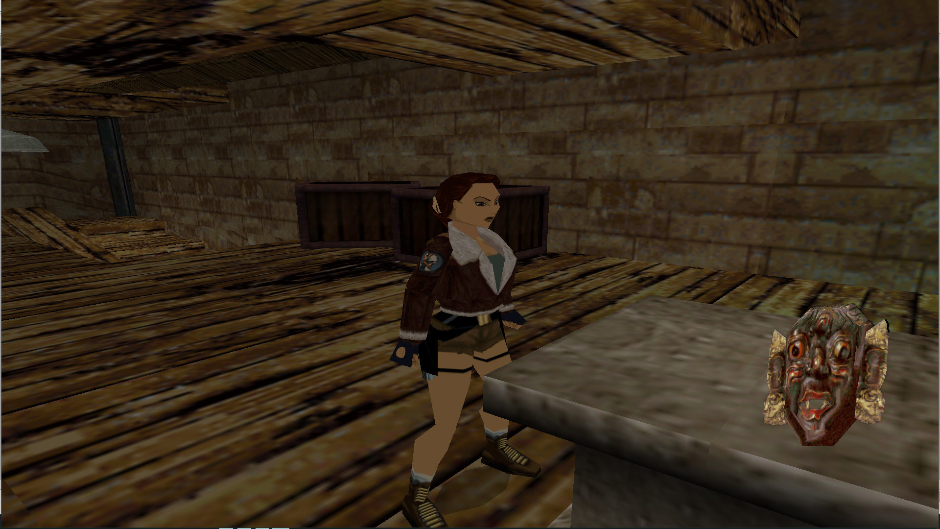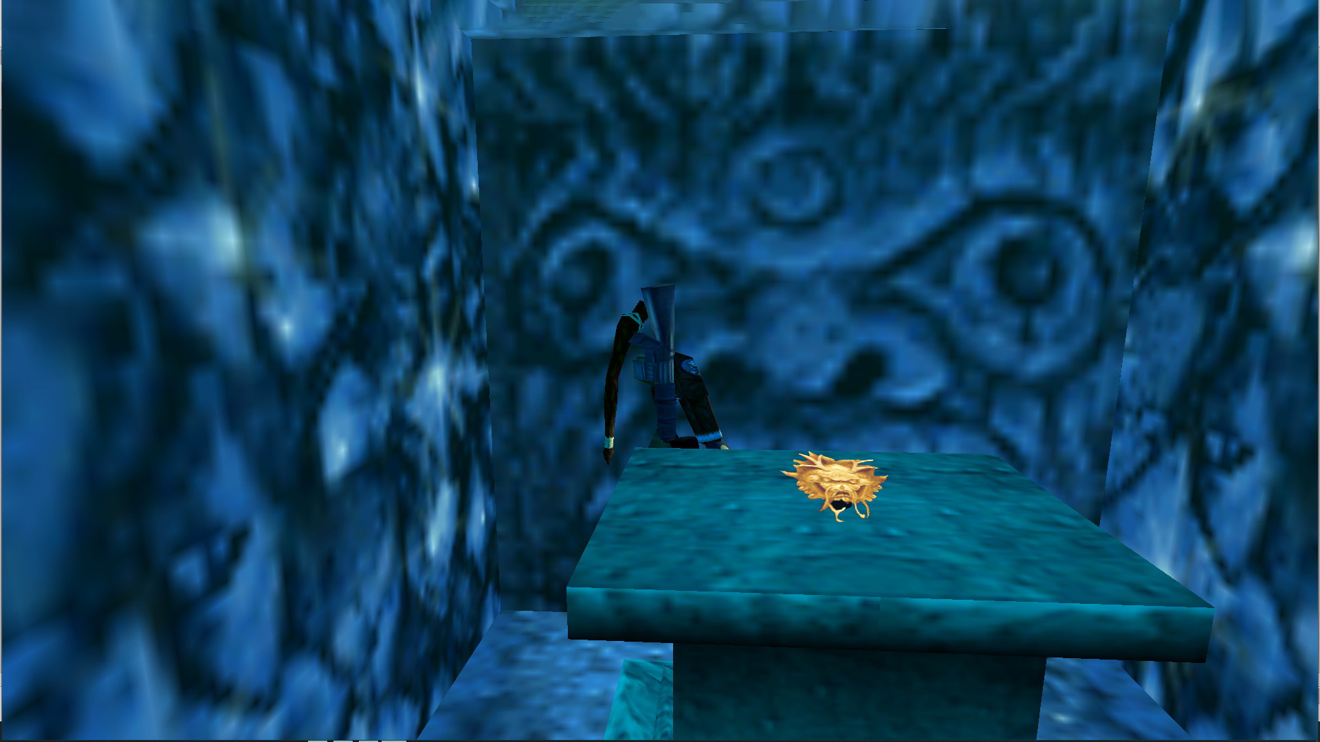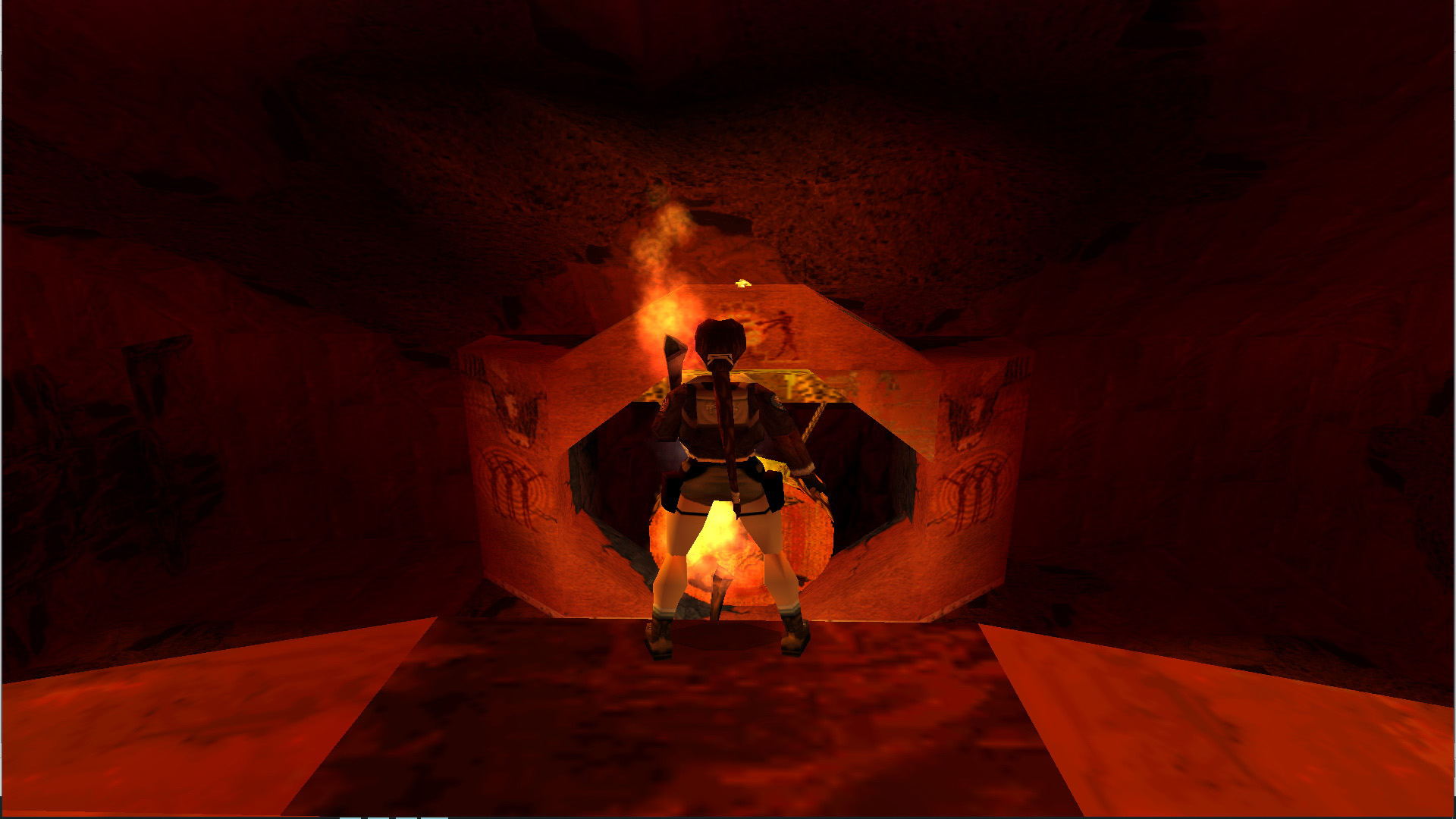 Előtte megállva nyomd meg a CTRL-t, és a mögötted levő nagykapu kinyílik. és kijön rajta egy óriás yeti. Végezz vele, vedd fel a fáklyát, a kis emelvény mellett gyújtsd meg vele a két fali fáklyát, és vedd is fel a Golden Mask-ot.