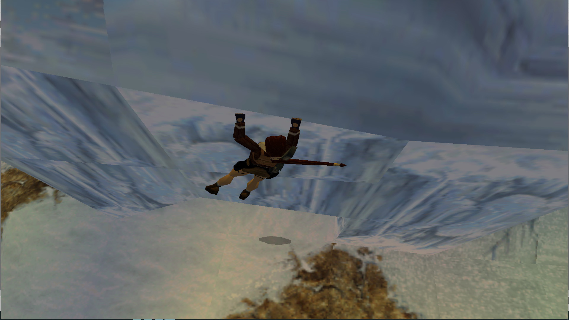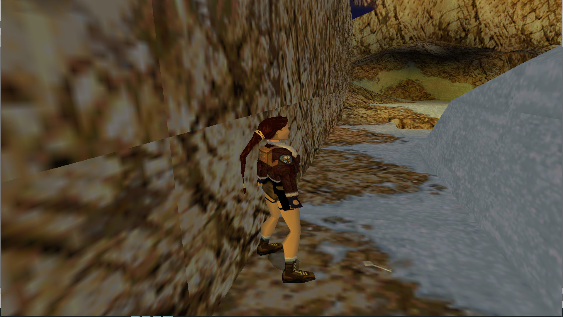 Ugrás a vízbe, és az utolsó oszlopról ismét juss el a barlangokig. Most egyenesen menj tovább, a jeges barlangba. Vigyázz, a barlang jobb oldalán haladj, mert három jéggörgeteg is ki akar lapítani. Középen kapaszkodj fel a jeges létrára, mássz teljesen fel, majd kettőt lefelé, és egy fordulásos ugrással (+End) kapd el a mögötted levő részt. Mássz fel, menj ki a szabadba, vedd fel a lőszert, és lődd le a keselyűt. Jobbra menj be a barlangba, vedd fel a sarokban a lőszert, majd a másikban a nagymedipackot, menj lefelé, újabb lőszert találsz. Ne menj tovább egyelőre, menj vissza a gleccserre, menj elfelé, majd balra, lődd le a hópárducot, vedd fel a lőszert, majd a ládák körül is lőszert, és nagymedipackot találsz.