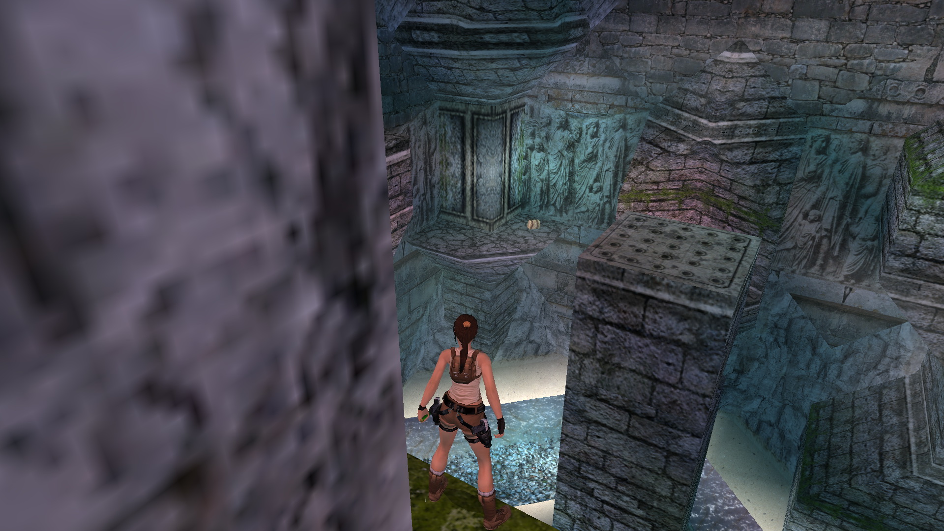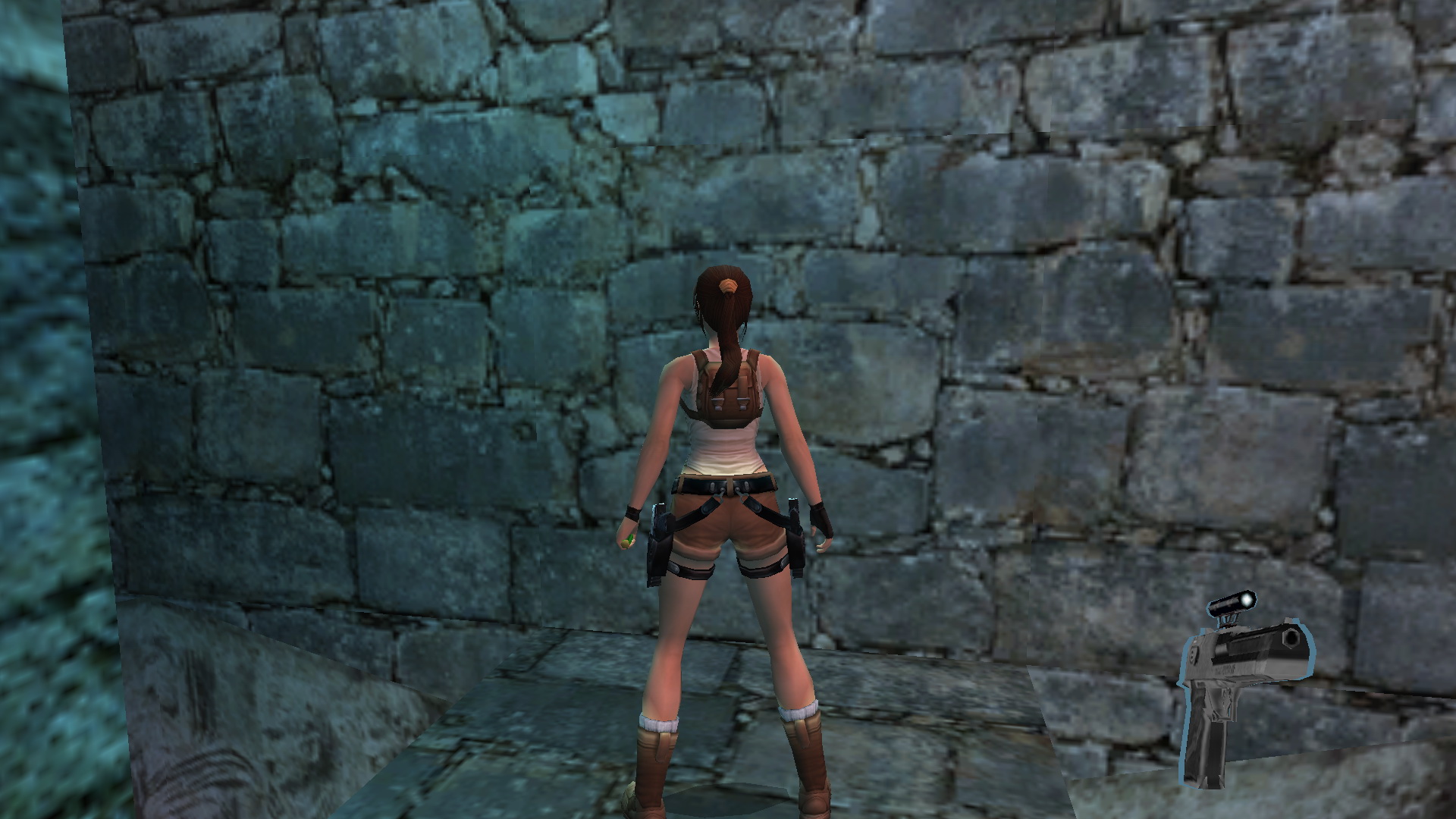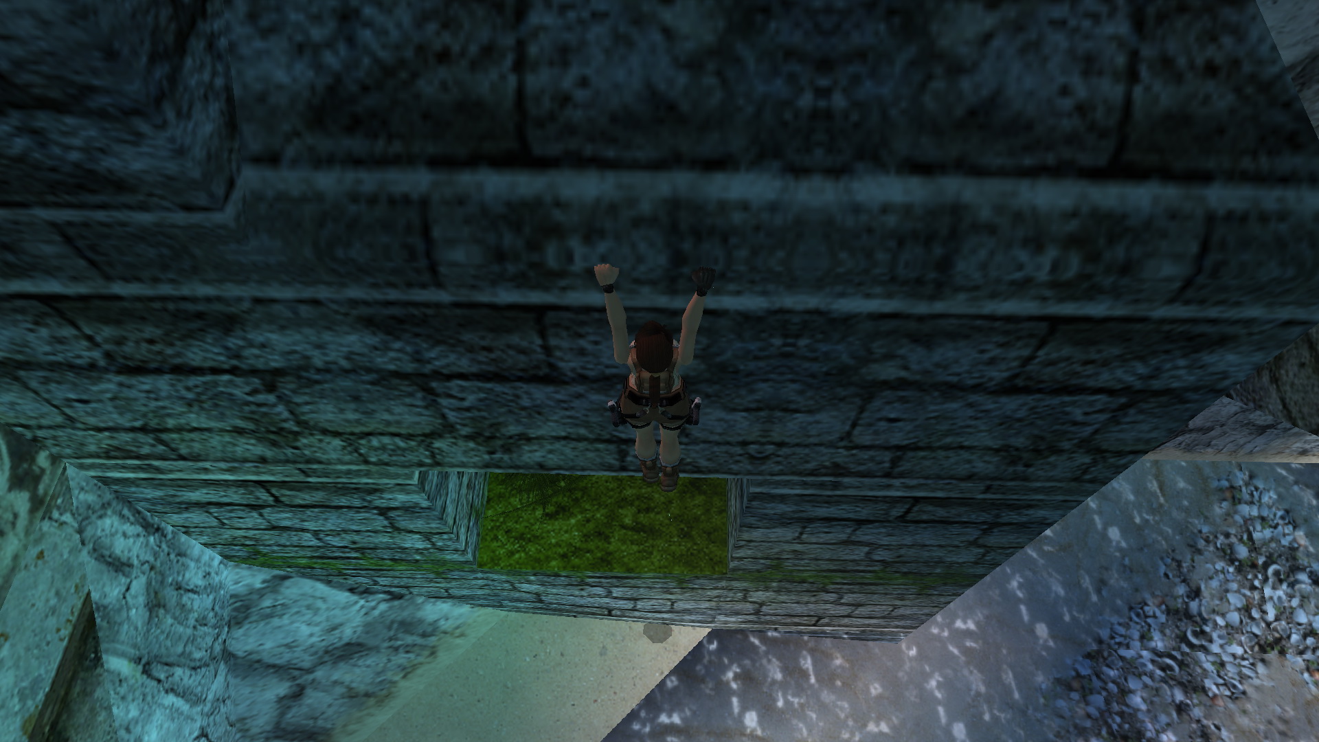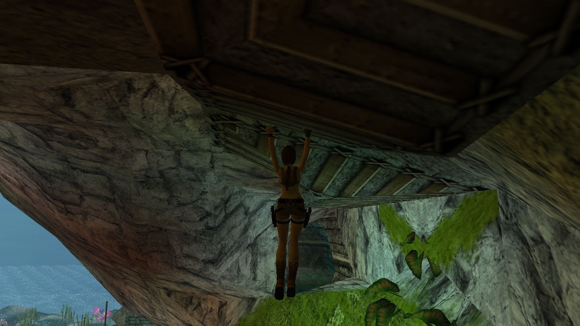 Menj vissza a repülő előtti partszakaszra, és továbbmenve a falon húzd meg a kart. Fordulj meg, menj be balra a barlangba, ugorj a vízbe, és beúszva hátul balra, húzd meg a vízi kart. Egy másik oldalfolyosón lőszert, és medipackot találsz, majd mássz a partra. oldalt ugorj, kapd el az oszlopon a rést, és jobbra csimpizve, leesve, a kis folyosón, egy nagymedipack is a tiéd. Menj vissza az oszlophoz, és három lépés távolságból ugorj rá, így a rés felett éred el. Most nyomd meg az ugrás, és a lefelé gombot. Lara megfordul, és ugrik. most azonban ne nyomj meg semmit, akkor Lara a sziklán landol, a magasban.