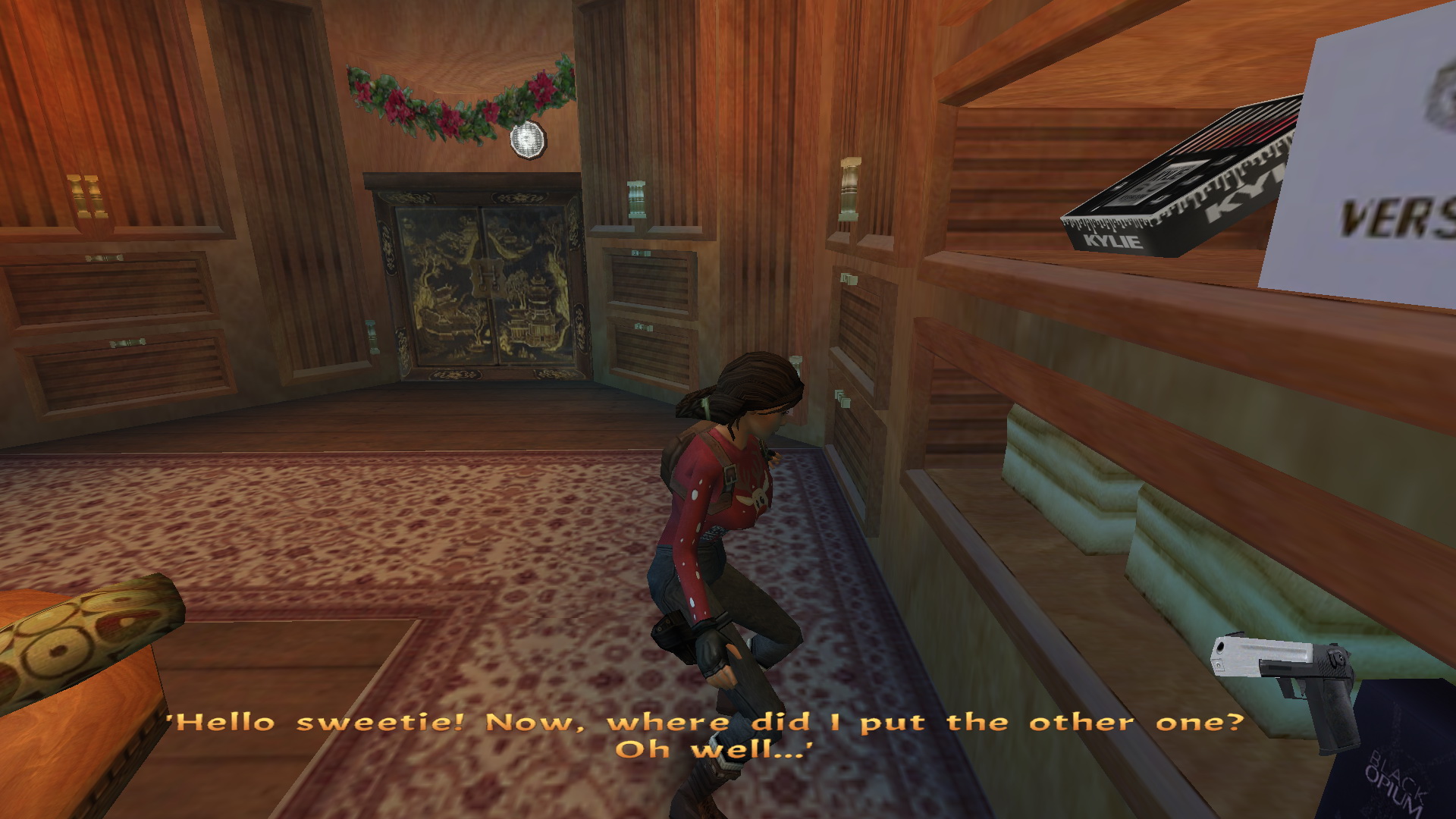 A másik oldalra is juss fel, ott medipackot találsz, majd a folyosó végén a fali beugróban lődd szét a kapcsolódobozt, és húzd is meg a kapcsolót. Menj ki az előző terembe, és a fenyőfa mögött menj be a másik oldalterembe. Az ágy mögött megtalálod a 3. Gold Bar-t, ez a 3. secret.