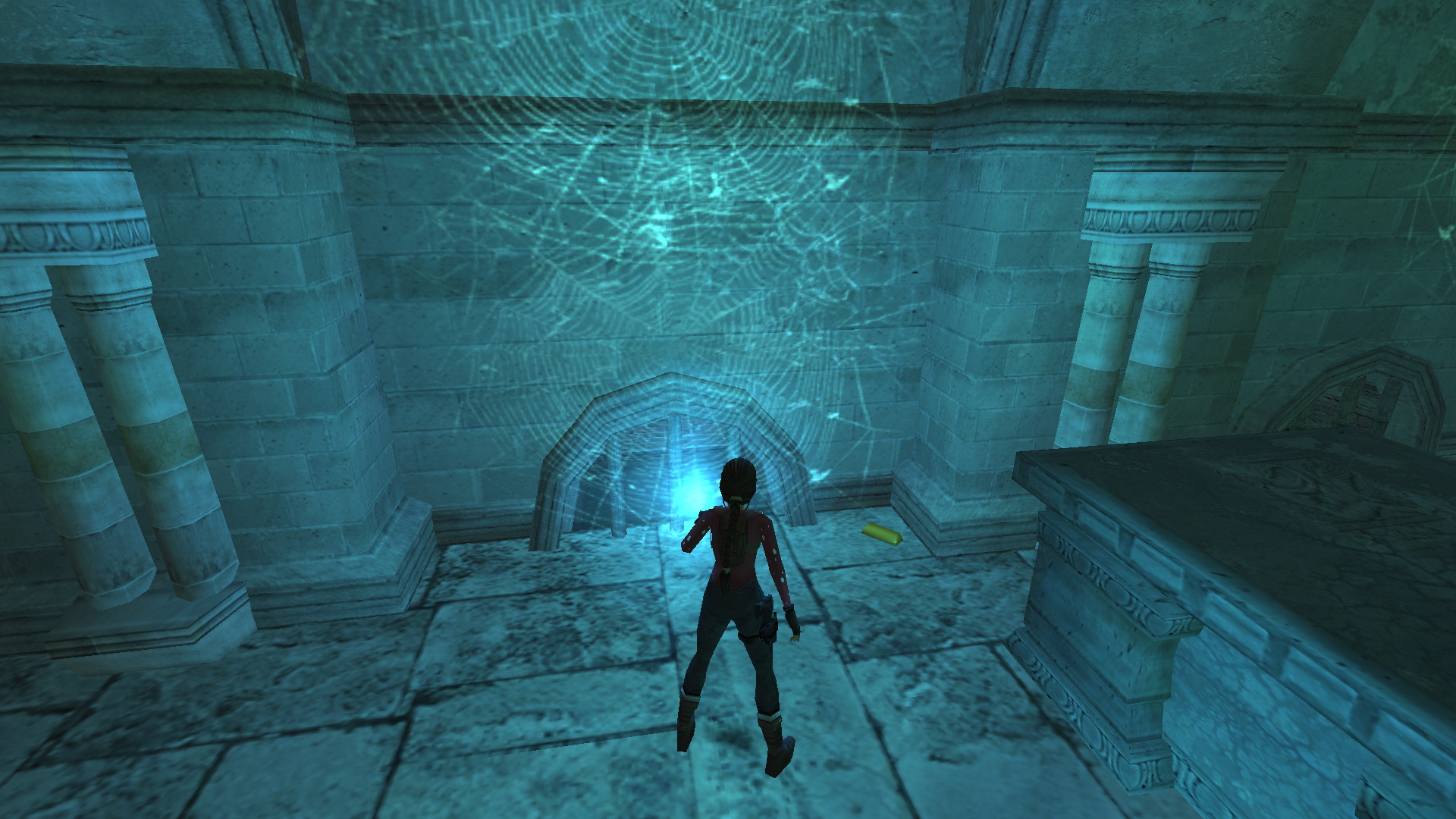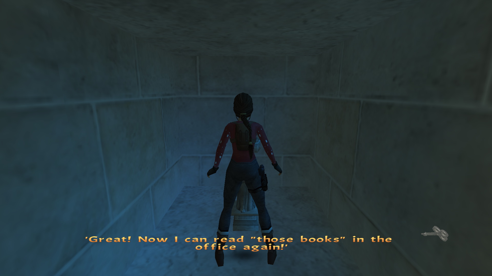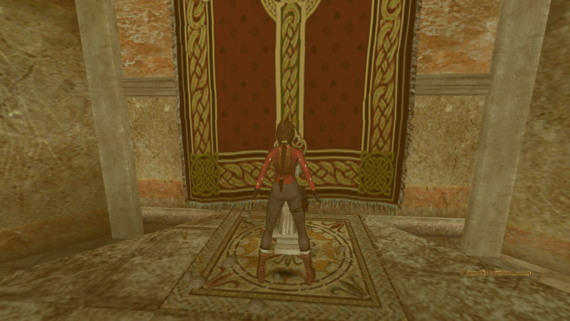 Fordulj meg, menj a terem túloldalára, és a jobb oldali kripta előtt fordulj meg. Nézd meg a kripta alját. látod ott a sötét gombot? Célozva lődd szét, és a kripta elmozdul. Lemenve alá, megtaláltad amit kerestél a Lara édesanyjának a Varródobozát.