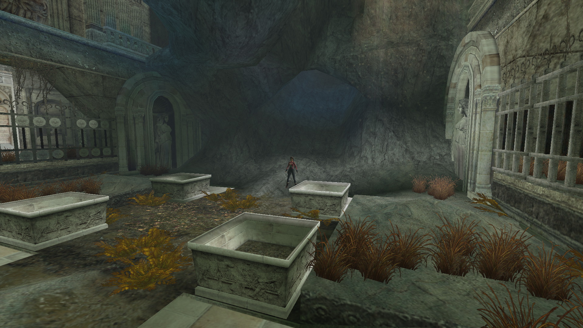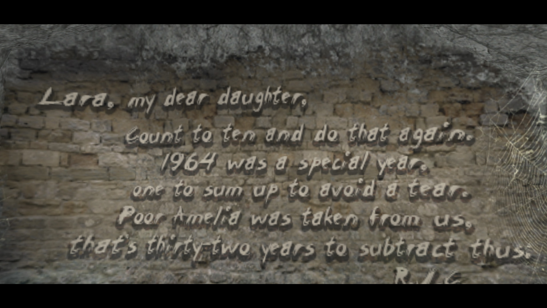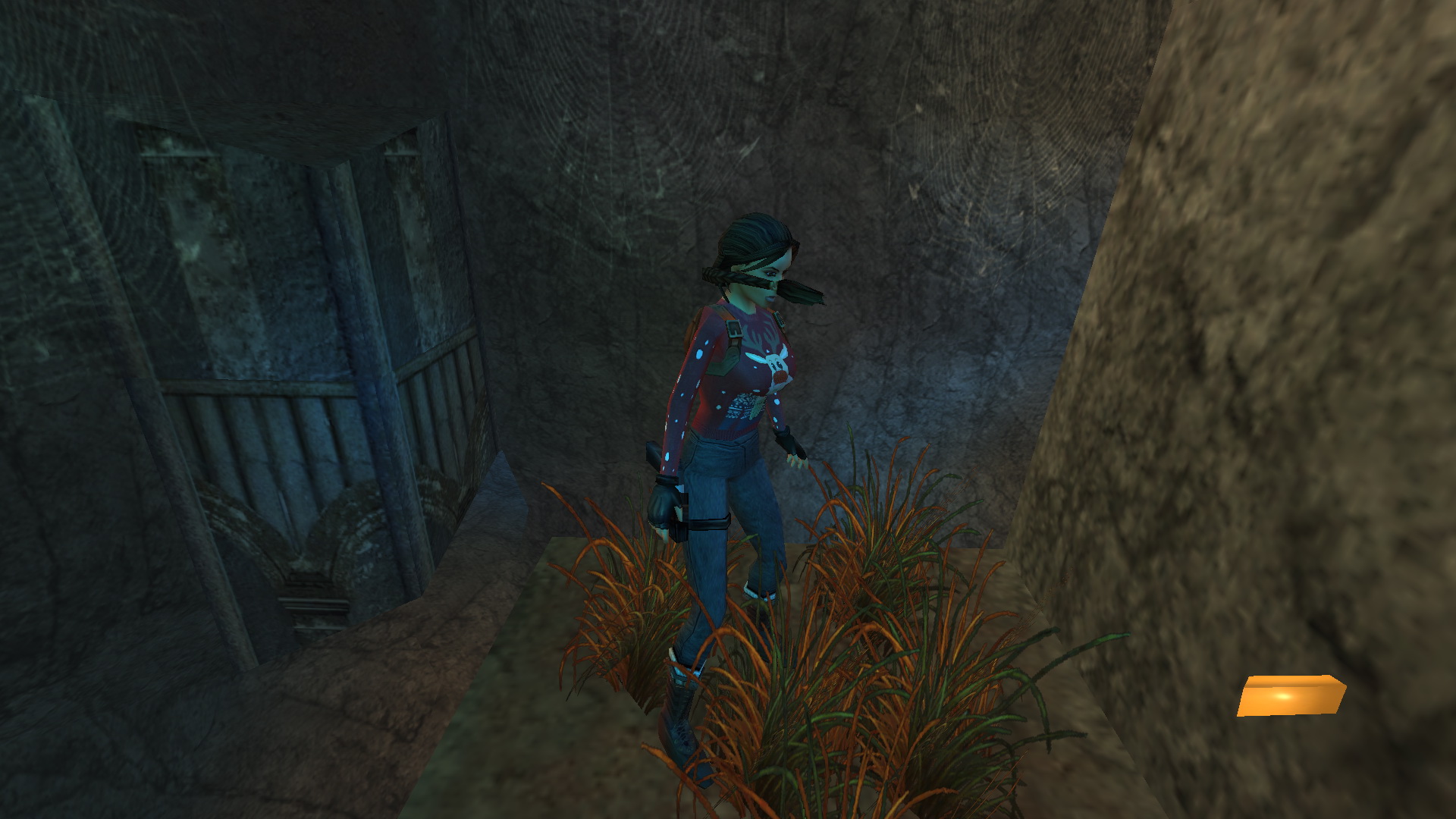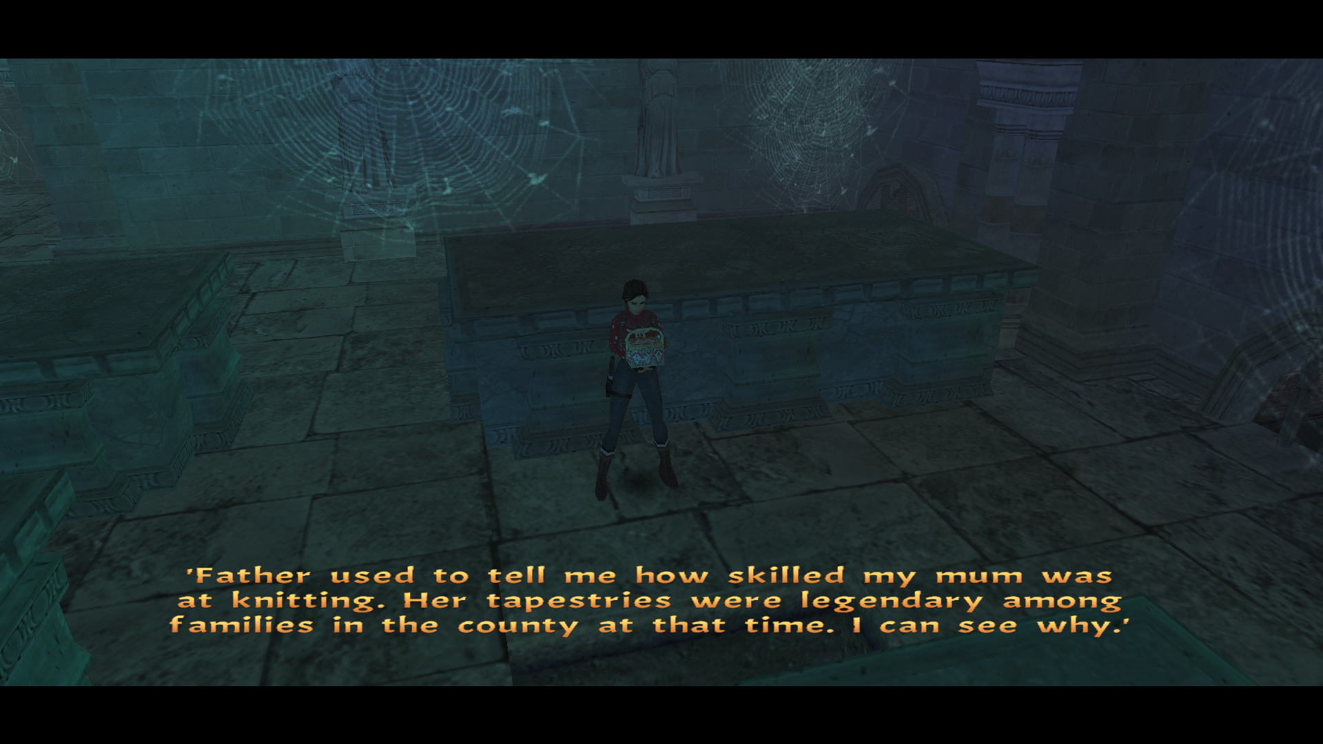 Fordulj meg, menj a terem túloldalára, és a jobb oldali kripta előtt fordulj meg. Nézd meg a kripta alját. látod ott a sötét gombot? Célozva lődd szét, és a kripta elmozdul. Lemenve alá, megtaláltad amit kerestél a Lara édesanyjának a Varródobozát.