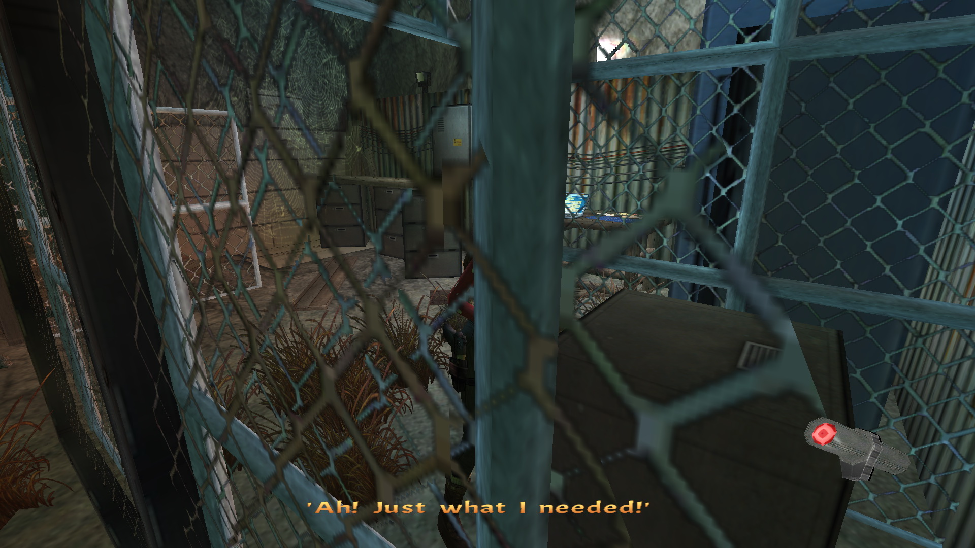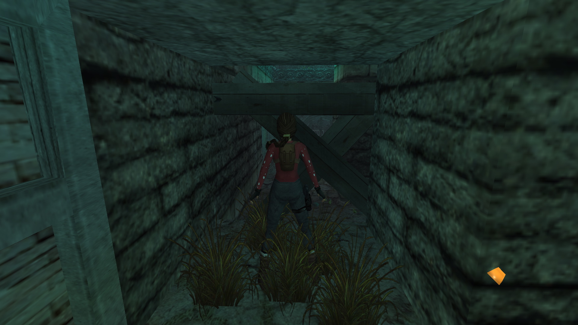 Jobbra menj, és szétlőve a ládát medipackot vehetsz fel. Menj vissza, és a szikláról, nekifutásból ugorj fel a háztetőre. Középen ereszkedj le a házba, ott is menj le a járatba, és a következő szobában medipackot találsz, a ládát szétlőve pedig lőszert. Kapcsold be az asztalon a laptopot, így bemehetsz a ketrecbe, és húzd meg a jobb oldali kettő, valamint a bal szélső kapcsolót. Kinyílt a másik ketrec is, ott meg megtalálod a LaserSight-ot.