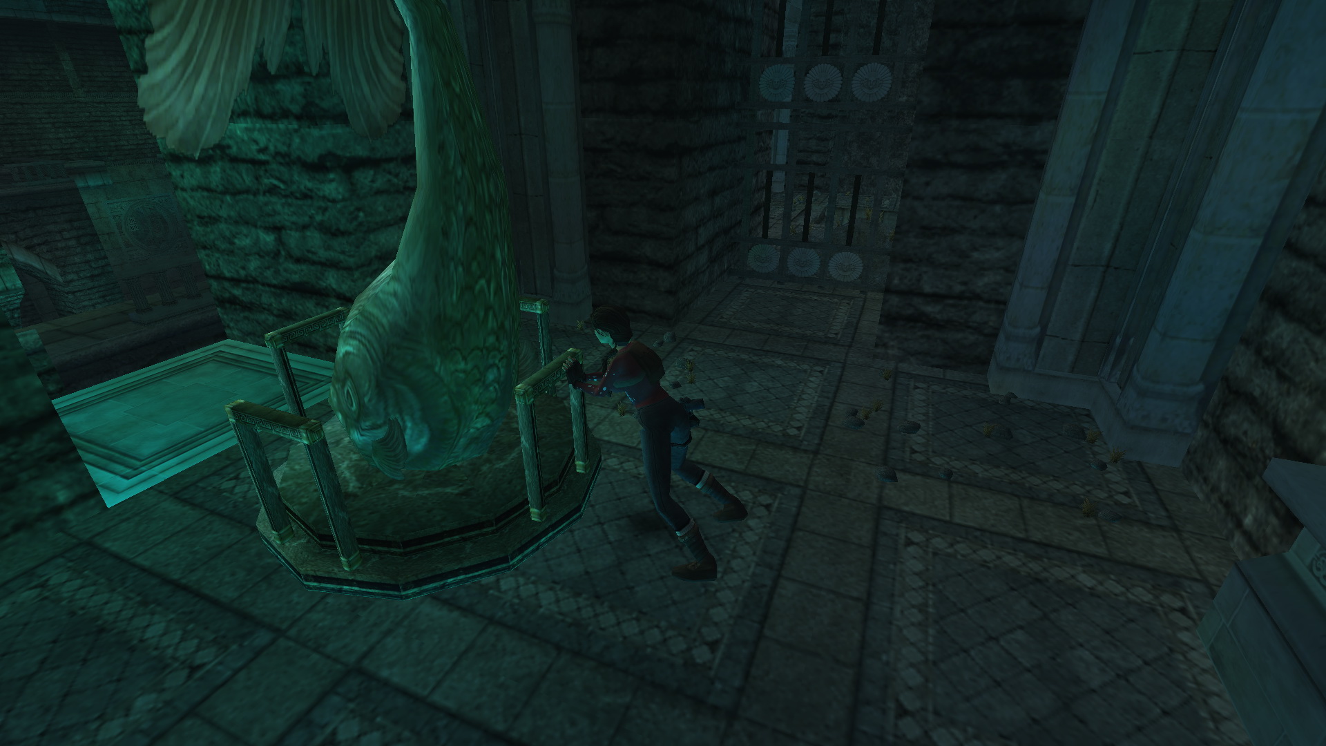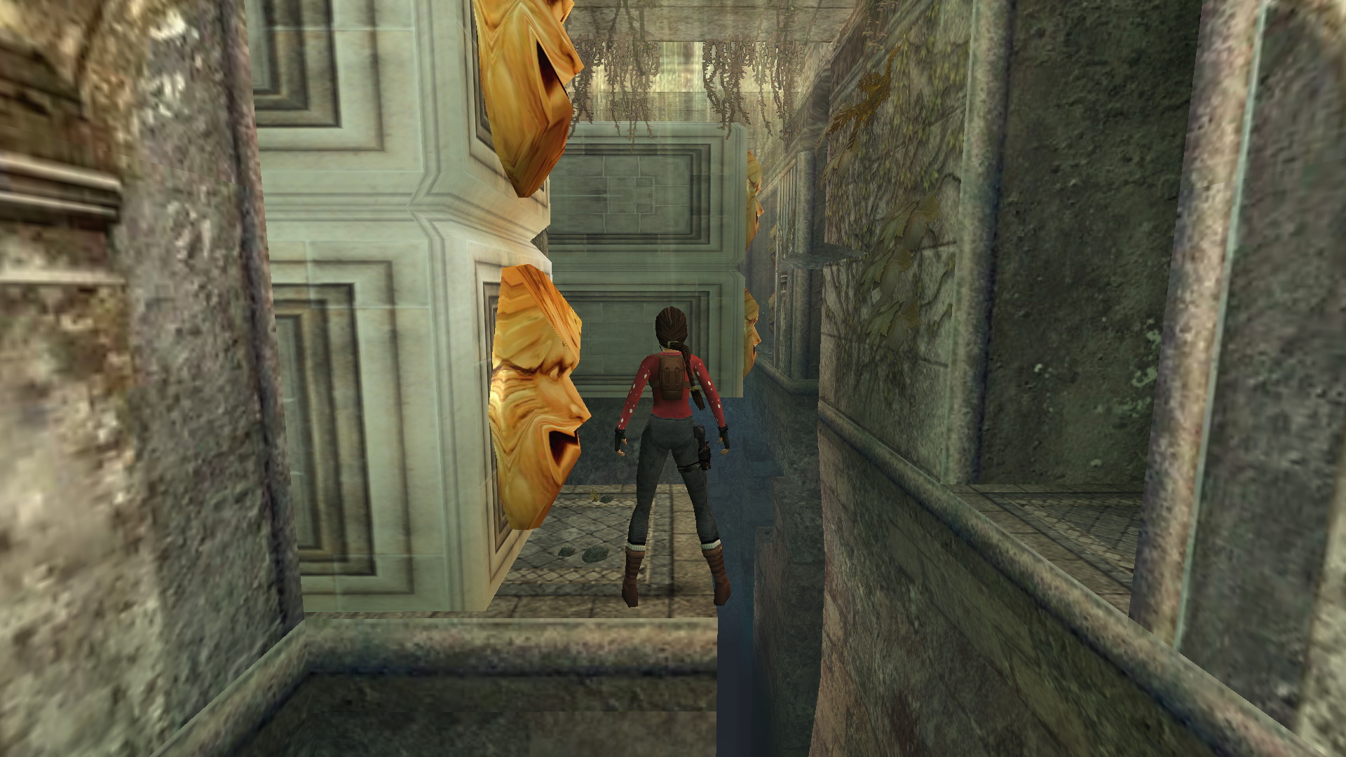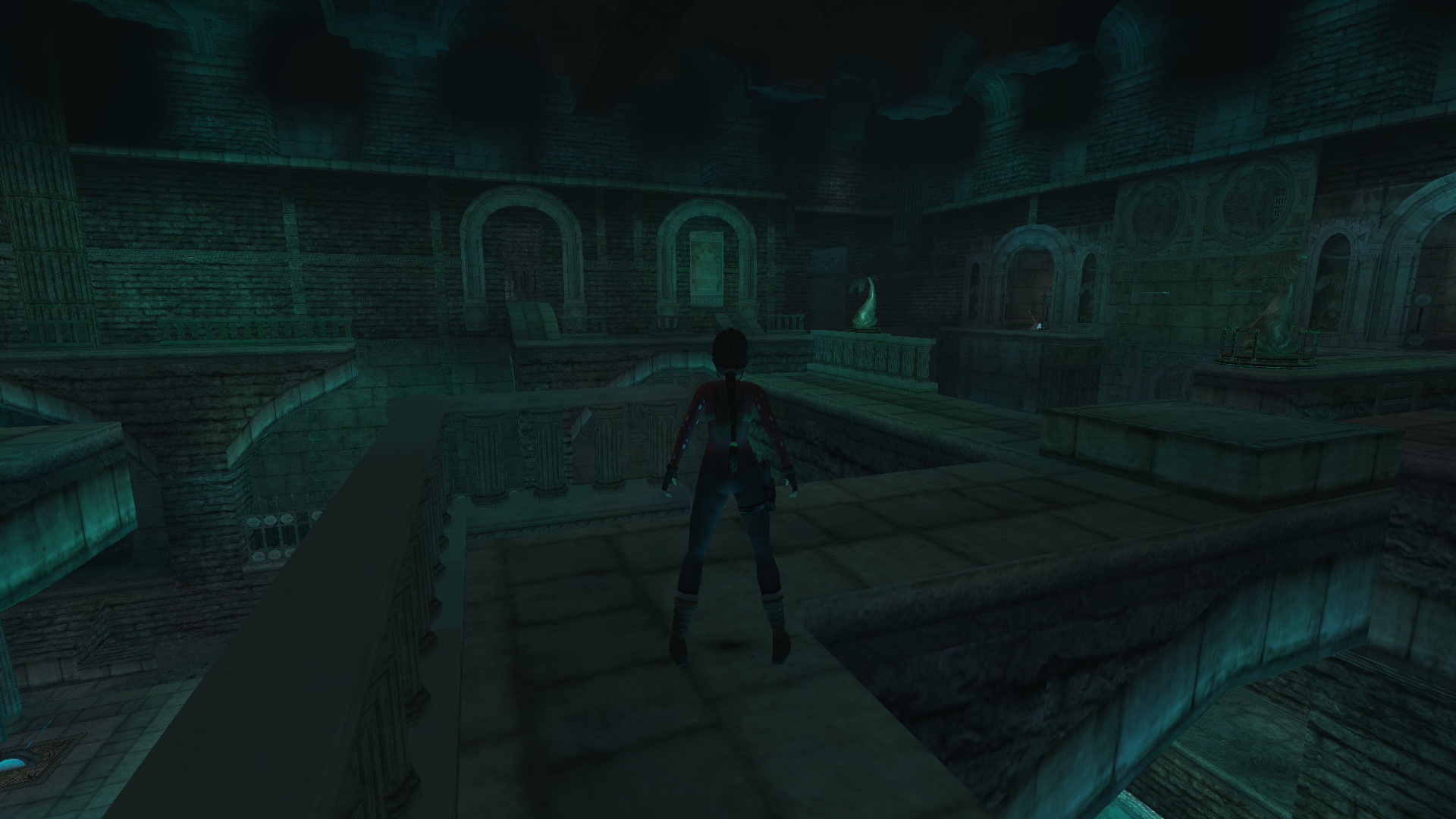 Folytasd az utadat, újabb rúdon át a fali beugróba, ott mássz fel balra, majd a fali résben kapaszkodva haladj balra, a végén lökd a mélybe a következő halszobrot is. Ugorj át szemben a hídra, majd balra, ugorj le a mély vízbe. Mássz ki jobbra, és a halszobrot, told, húzd a mélyebb részre, és onnan lökd be a vízbe. Oldalt, a kövek mögött medipackot találsz. Menj tovább, a szoborig, és told meg a kart. Leengedted a vizet. Menj át a túloldalra, é nekifutásból ugorj bele a vízzel teli kis medencébe. Mássz ki, és a két halszobrot told a súlykapcsolókra. Van egy fali beugró nem messze. kapaszkodj fel, majd a kicsit magasabbról lekapaszkodva, és onnan felugorva feljutsz a medencéből. Menj arra, ahol a vízbe ugrottál, ott találsz az egyik oszlopon egy létrát, mássz fel, menj jobbra, majd balra, és a már ismert útvonalon, rudakon, fali repedéseken keresztül eljutsz oda, ahol a második szobrot a mélybe lökted. Ugorj át a hídra ismét, és jobbra menve megtalálod, és átmehetsz a kinyitott ajtón. Most nagyon vigyázz, nagy az oldalszél végig a mostani utadon. :)