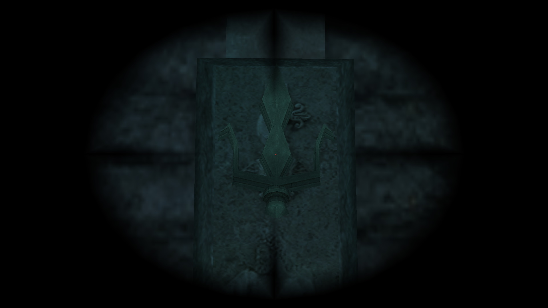 Menj be, a medence túloldaláról nézz vissza, felfelé. találsz egy szétlőhető gombot. Lődd szét, és jobbra fent is van még egy azt is. menj át a kinyílt ajtón, és balra, a kis emelvényről vedd le az első keresztet, az 1. Sacred Cross-t.