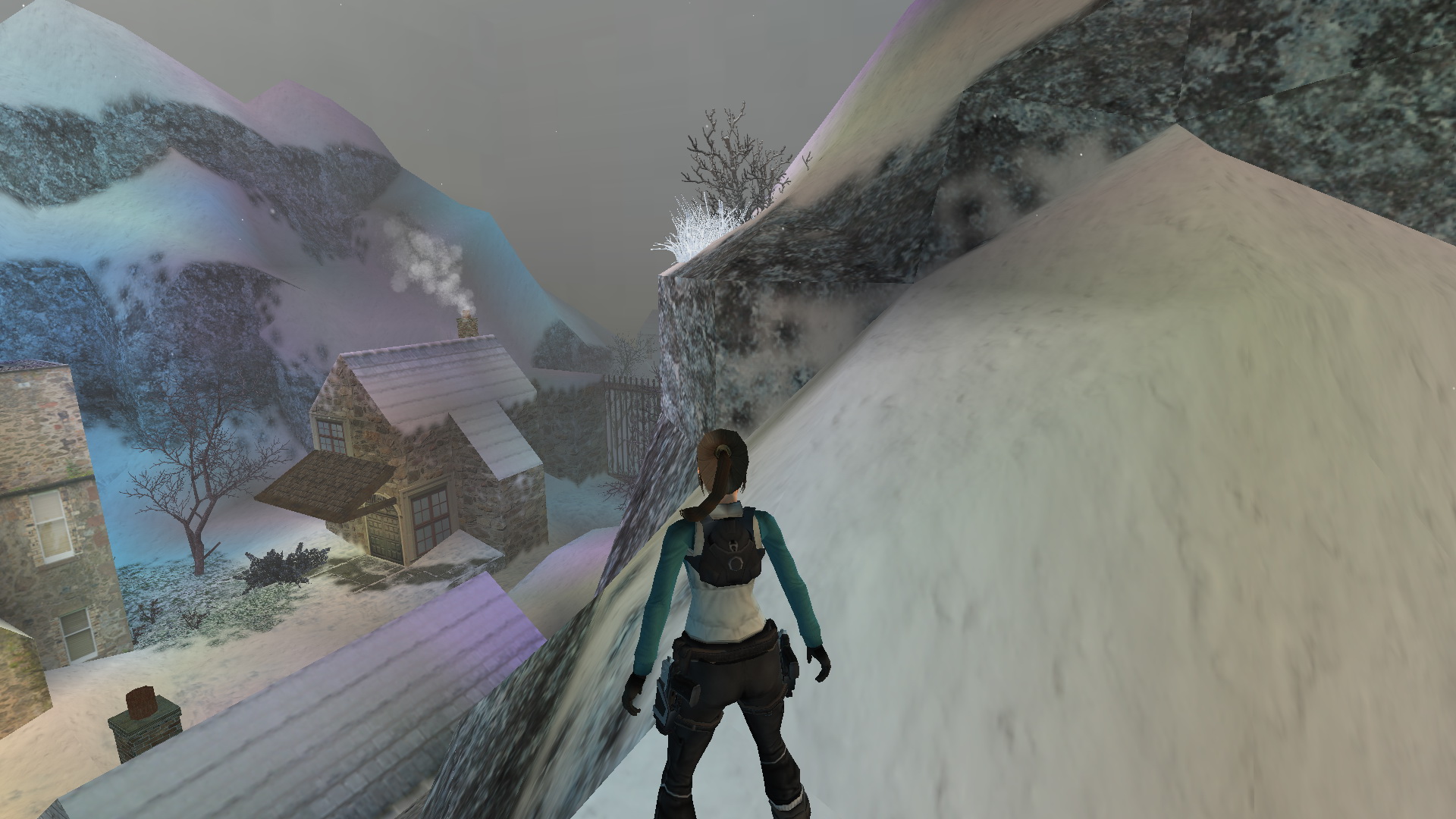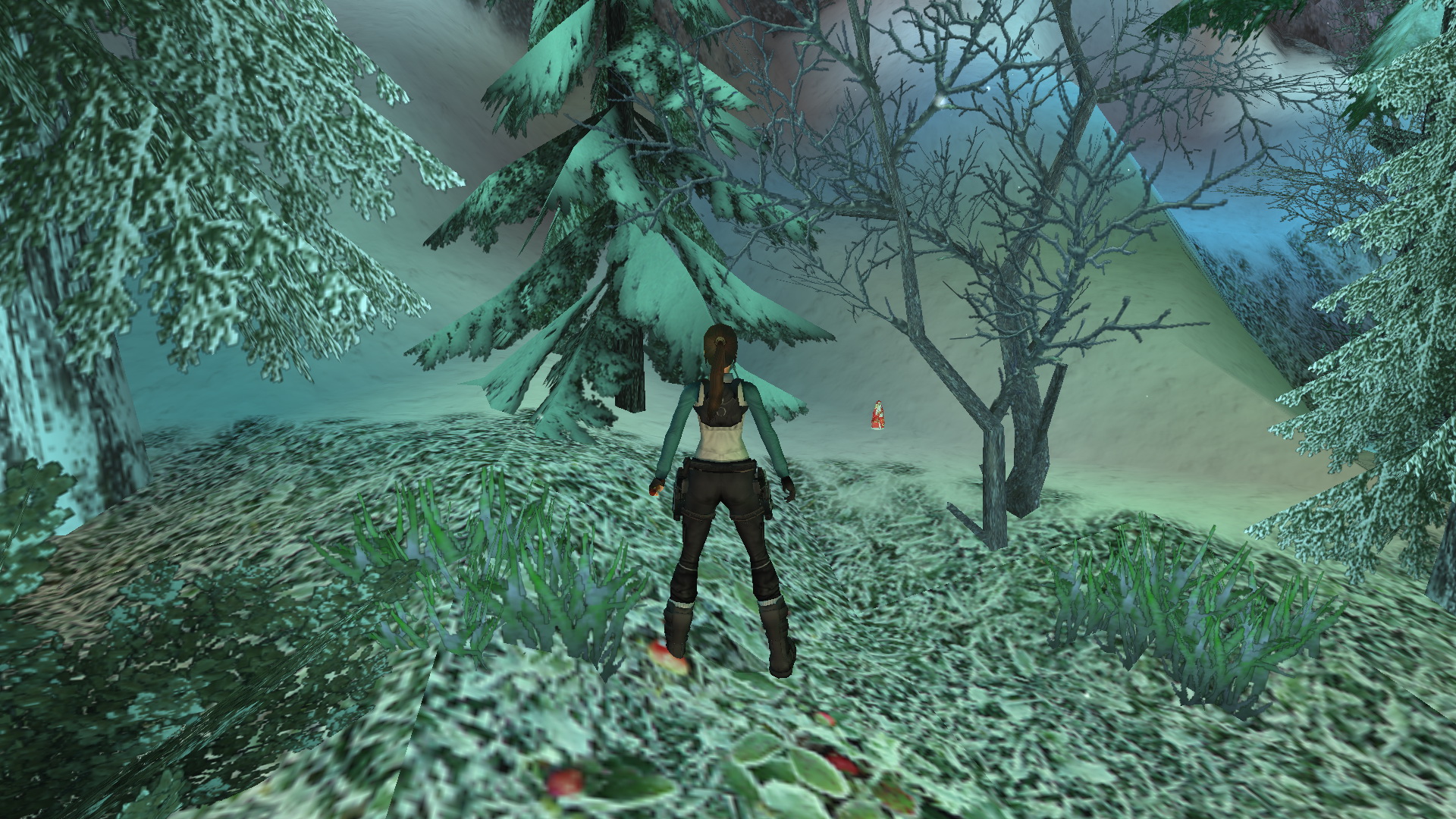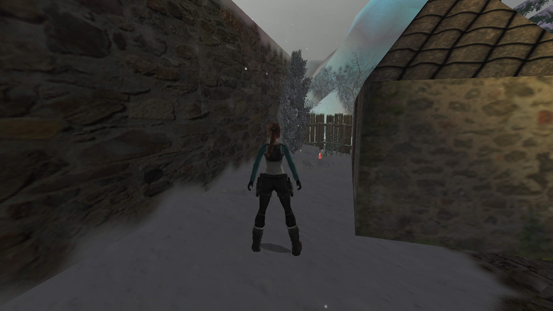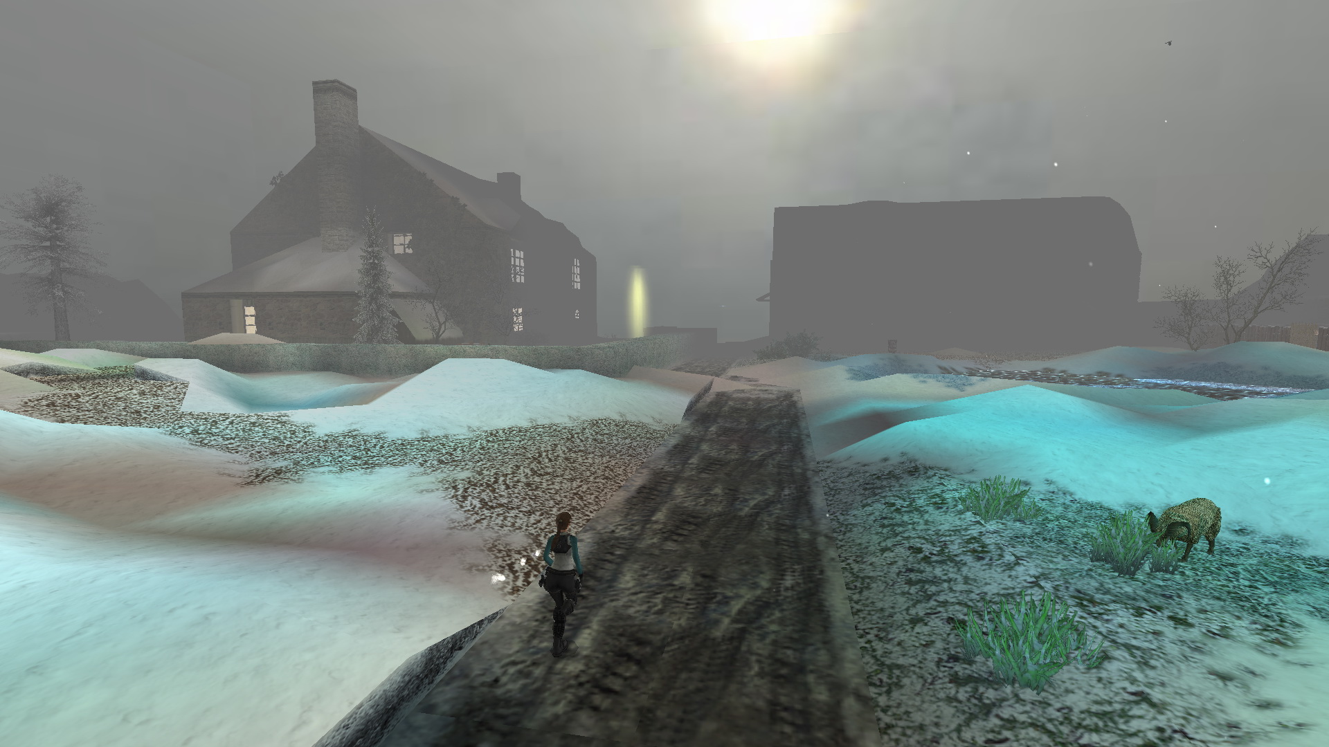 Menj tovább ott, a tanyaház hátsó udvarára. Látod, hogy két ember egy hóember mellett állnak. Közelítsd meg őket, hogy megtudd, hogy ők Lore[Raider és Dinne[raider. Egy rövid beszélgetés után Lara rájön, hogy a hóember, amit építettek, hiányosan van feldíszítve. Picit besegít majd.