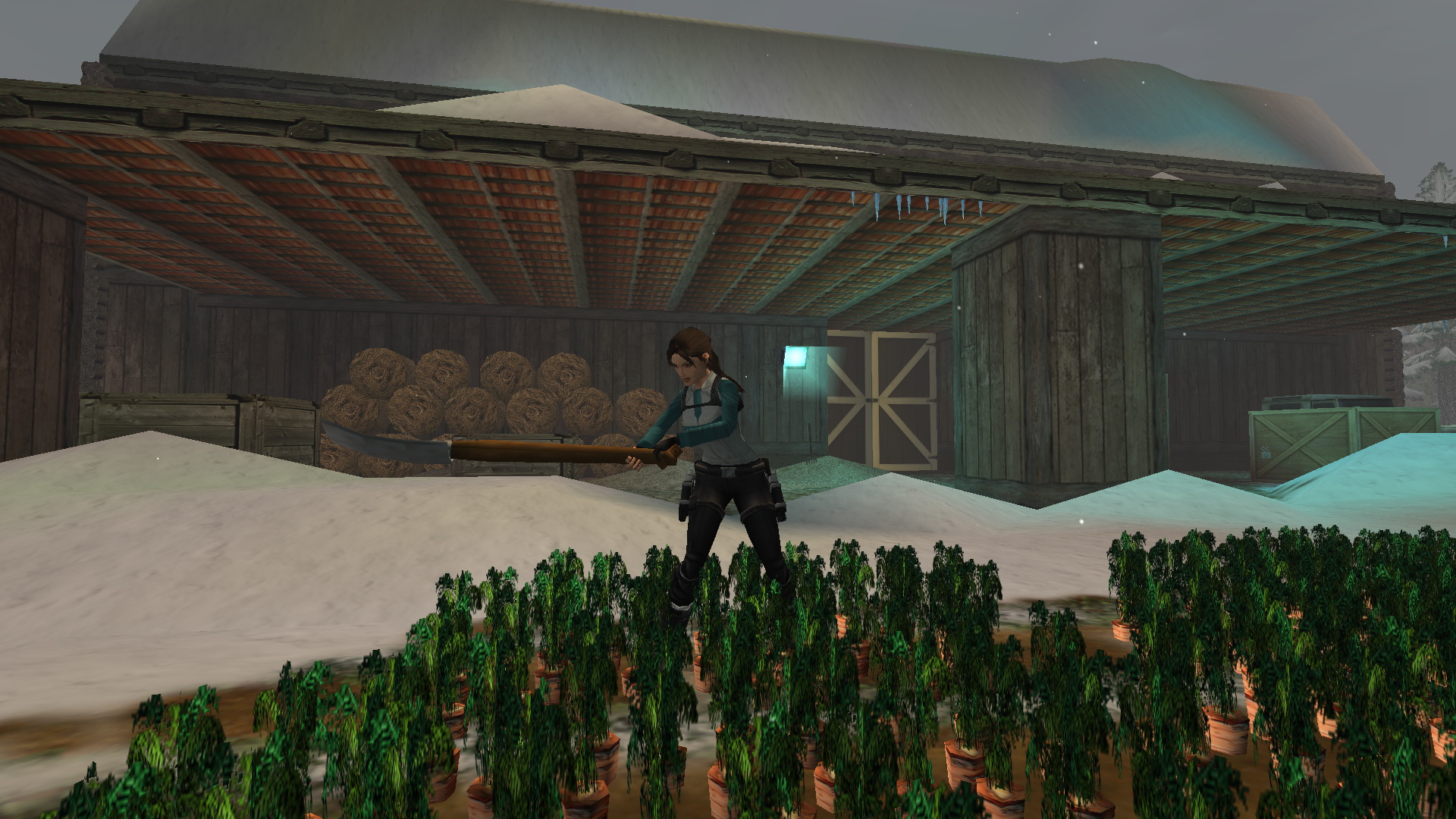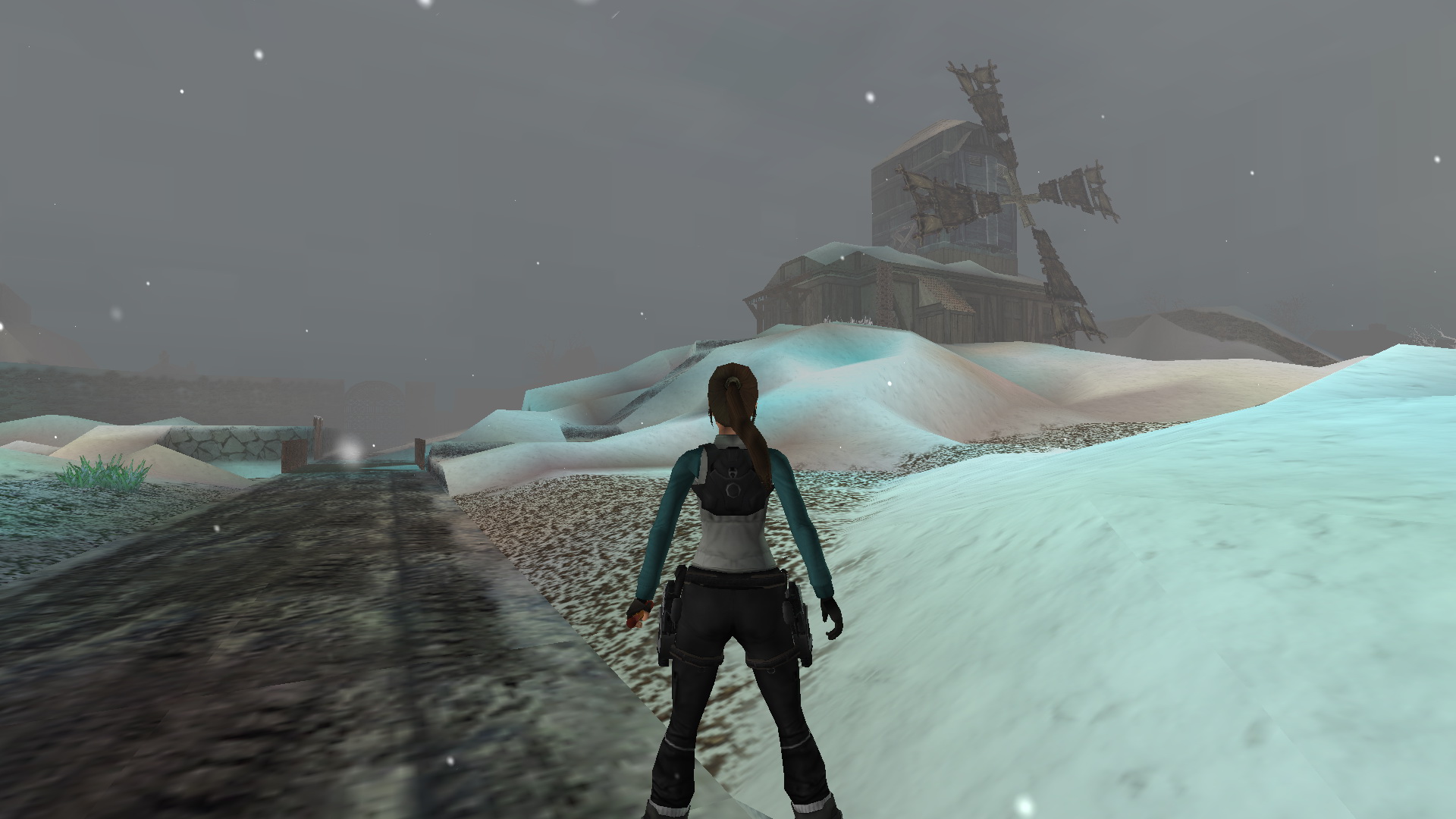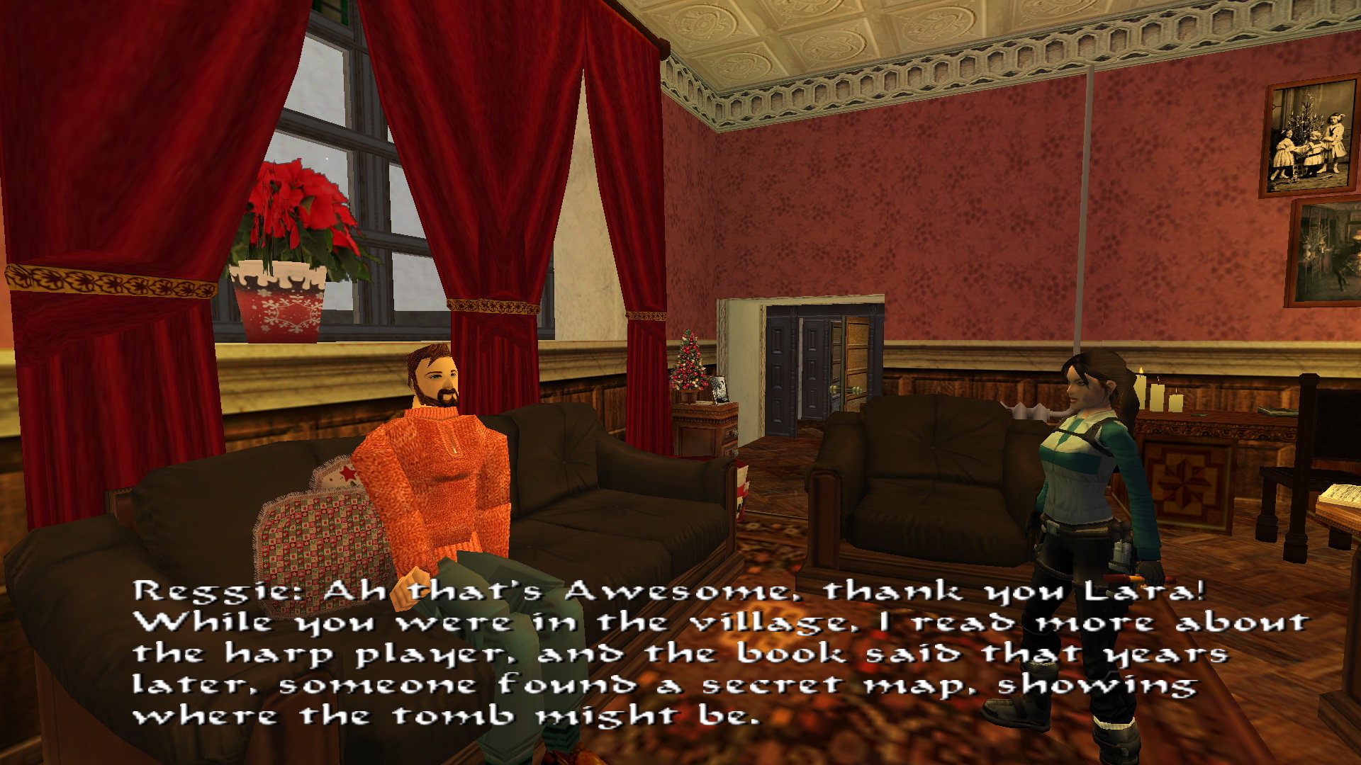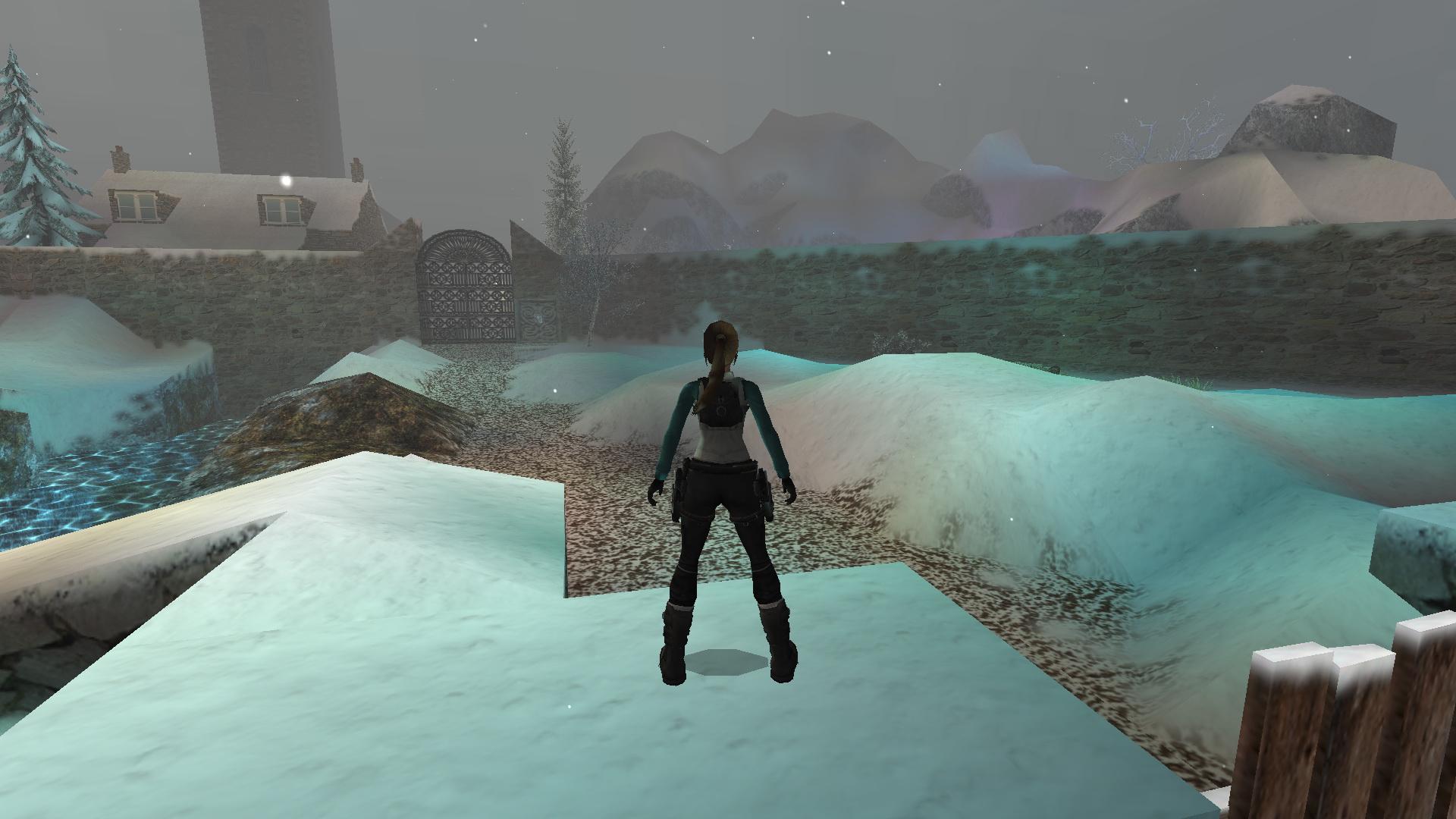 Menj tovább ott, a tanyaház hátsó udvarára. Látod, hogy két ember egy hóember mellett állnak. Közelítsd meg őket, hogy megtudd, hogy ők Lore[Raider és Dinne[raider. Egy rövid beszélgetés után Lara rájön, hogy a hóember, amit építettek, hiányosan van feldíszítve. Picit besegít majd.