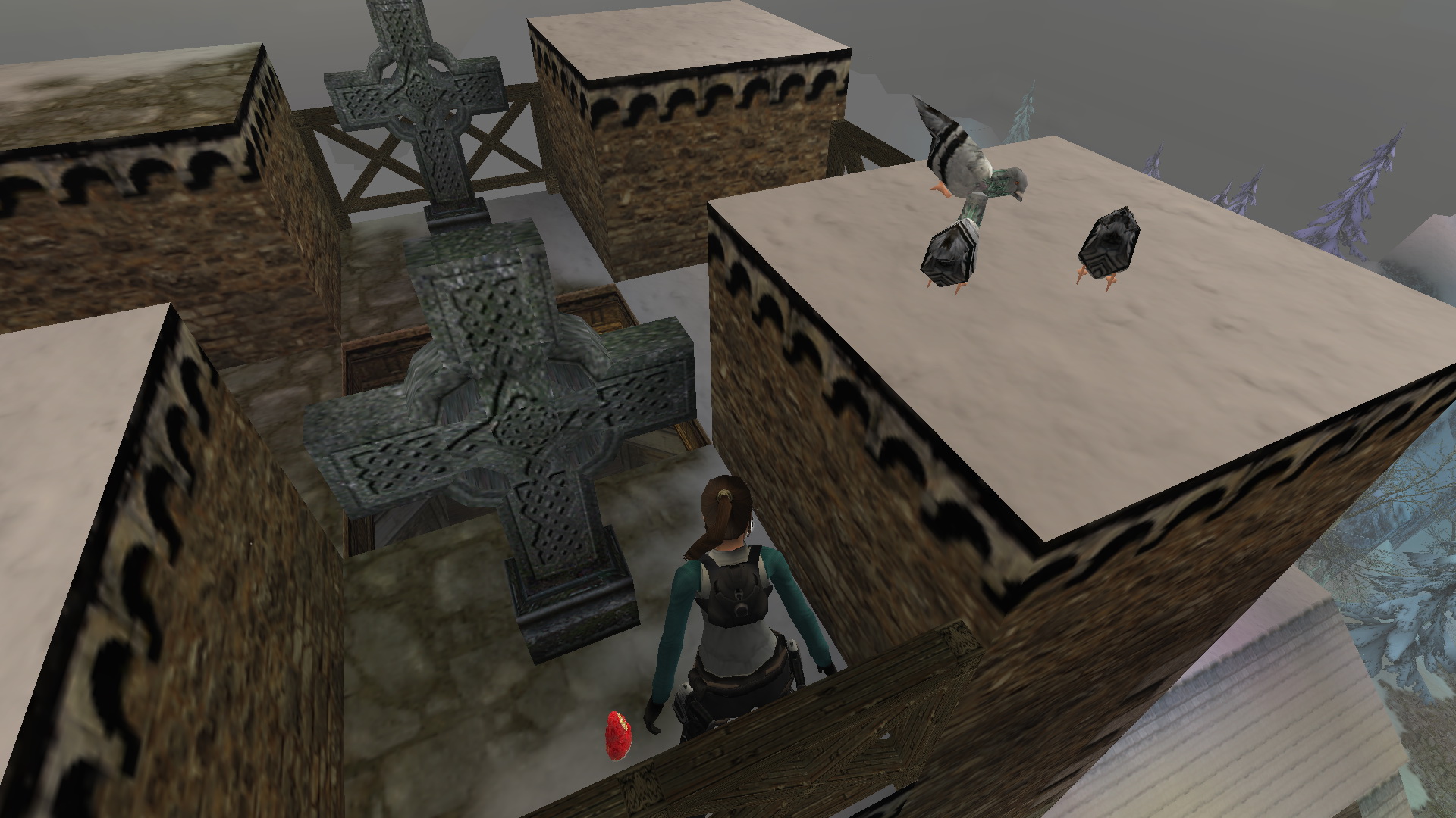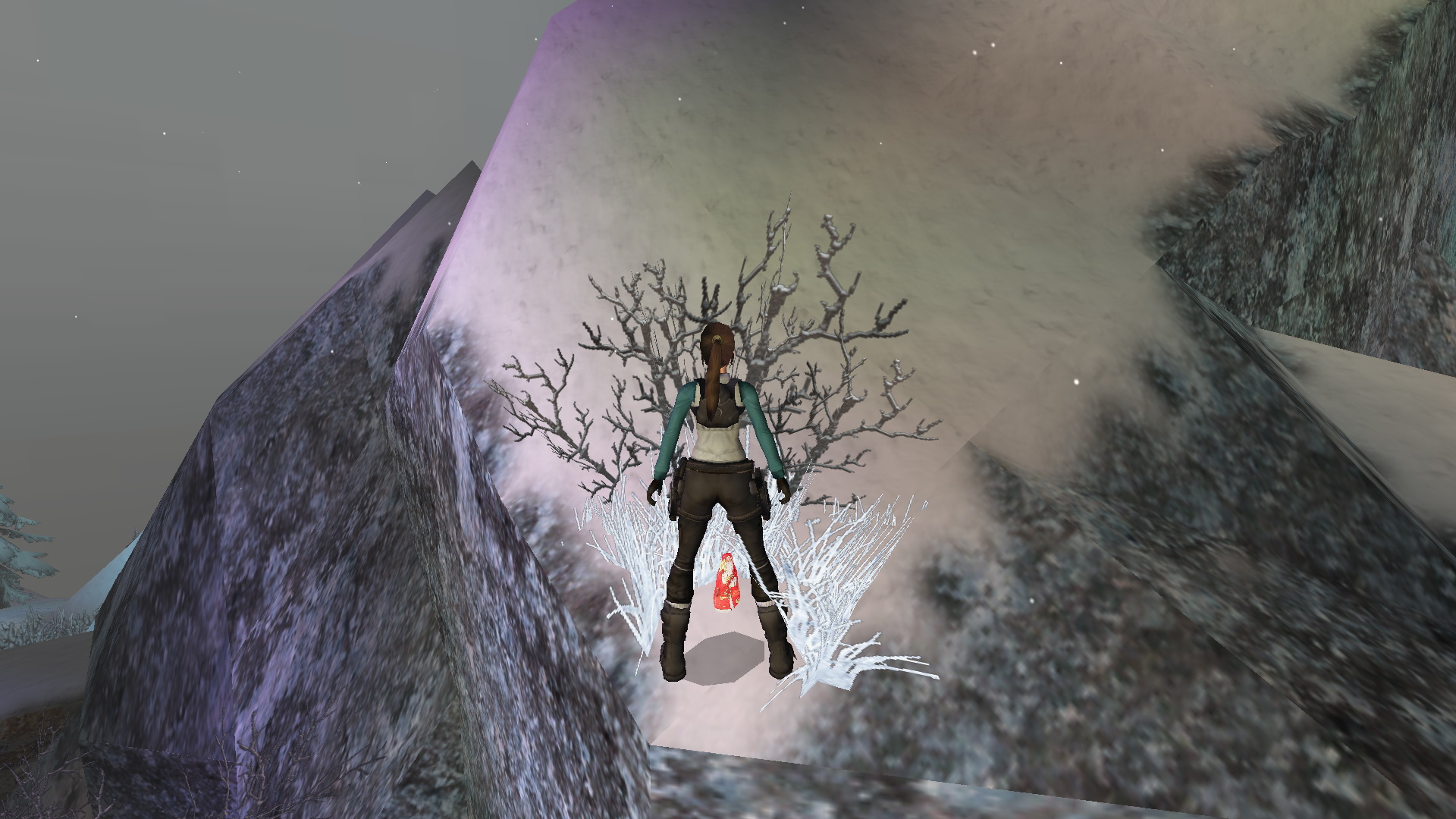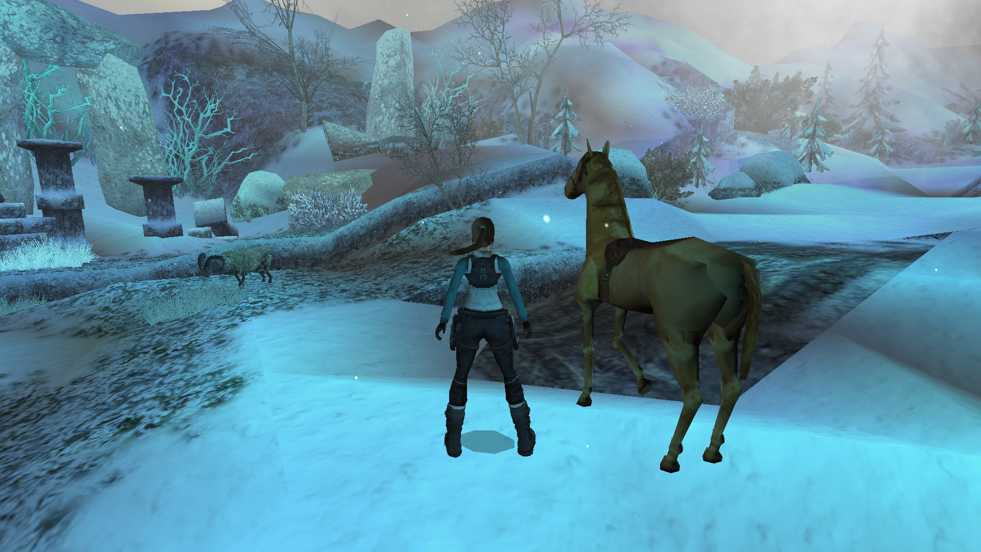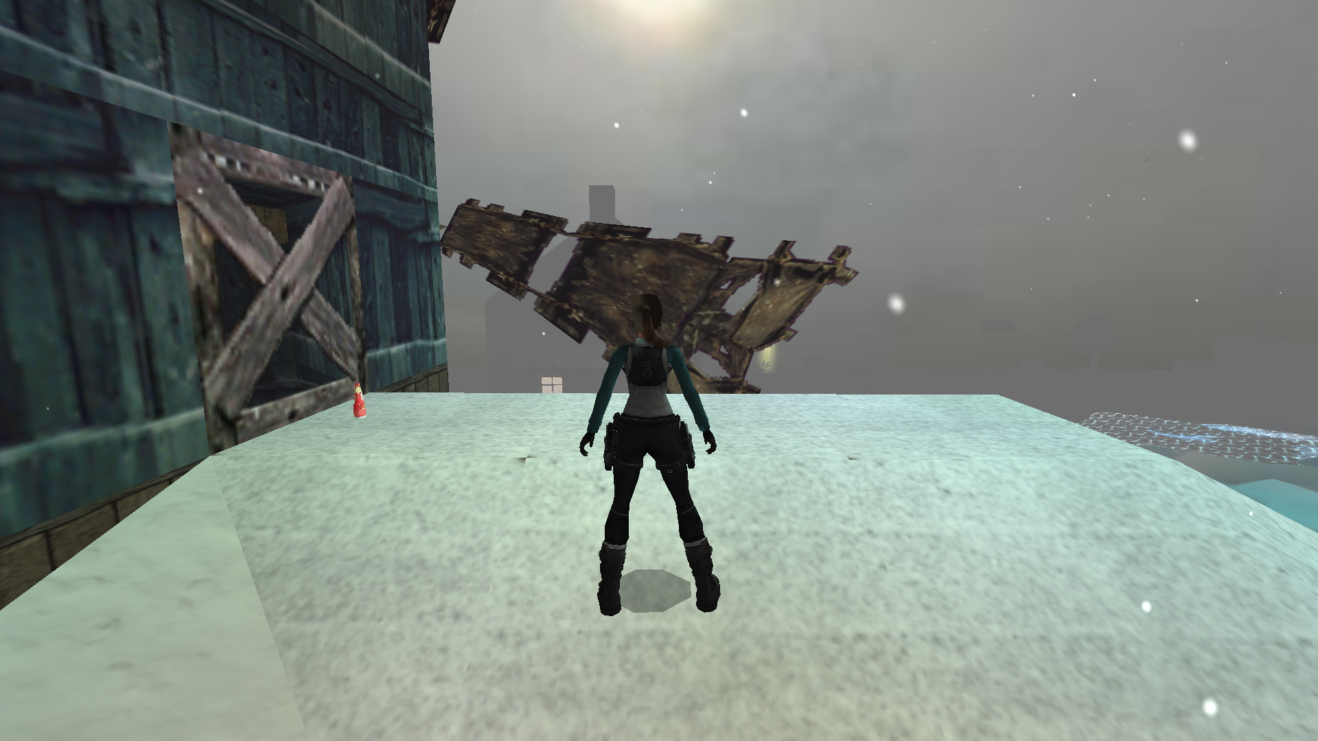 Menj tovább ott, a tanyaház hátsó udvarára. Látod, hogy két ember egy hóember mellett állnak. Közelítsd meg őket, hogy megtudd, hogy ők Lore[Raider és Dinne[raider. Egy rövid beszélgetés után Lara rájön, hogy a hóember, amit építettek, hiányosan van feldíszítve. Picit besegít majd.