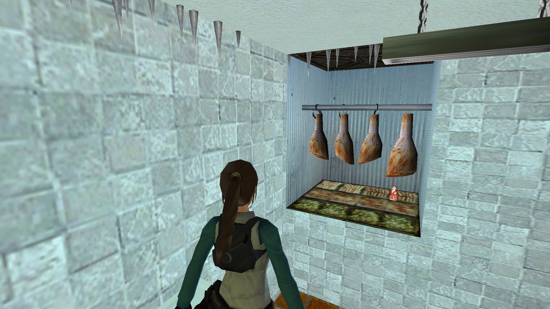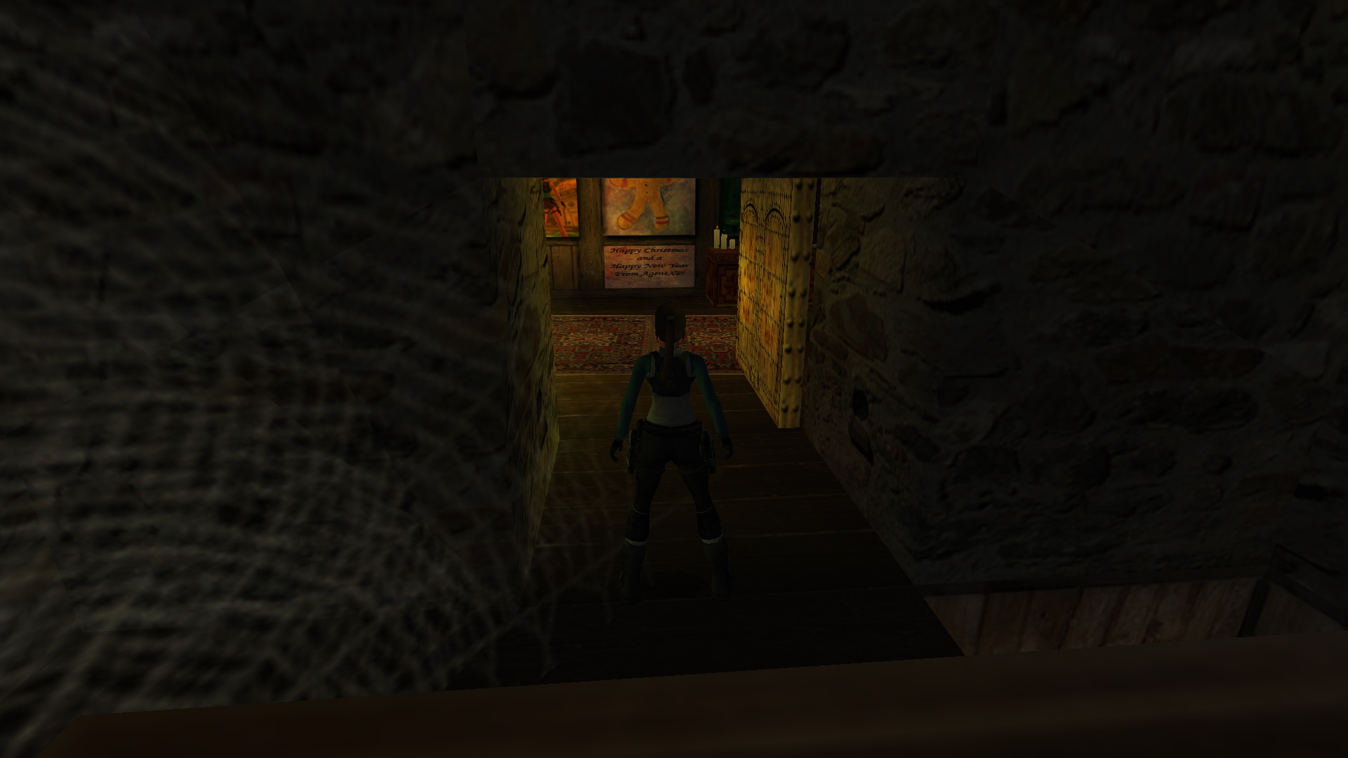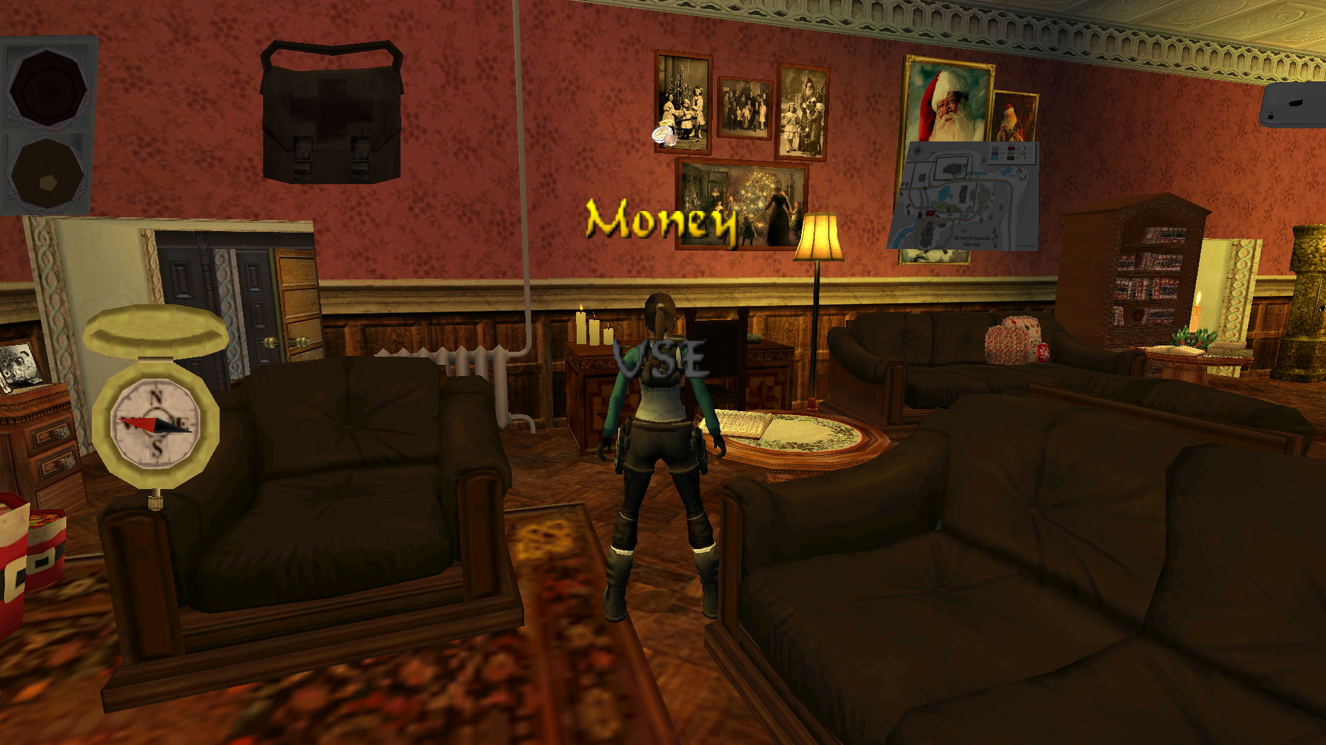 Úgy tűnik, hogy mindenki, akivel Lara összefut, akar valamit, ezért nézd meg az új oldalt az iPhone-odban, és menj be W a kamrába-mosókonyhába, ahol süteményeket (kis medipack) találsz a mosógépen. Húzódj be a szemközti beugróba, és mássz be a lógó sonkák alá egy miniatűr Mikulásért, ami az 1. secret.