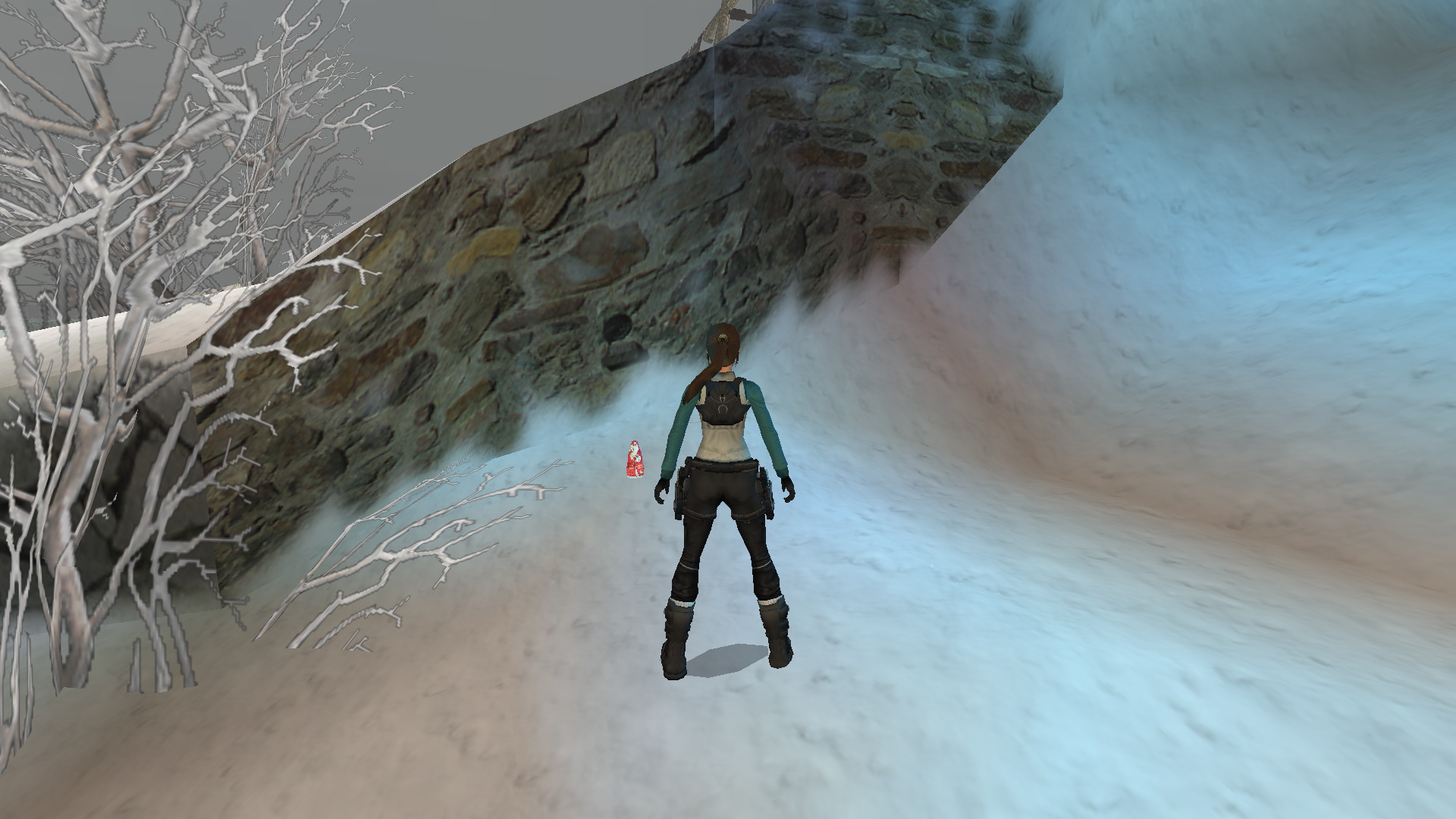 Lépj ki a kunyhóból, és fuss balra, ugrás a kőfalra, majd onnan balra a hideg vízbe. A kőfal alatti beugróban találod a következő kis Mikuláscsokit. Ez az 5. secret.
