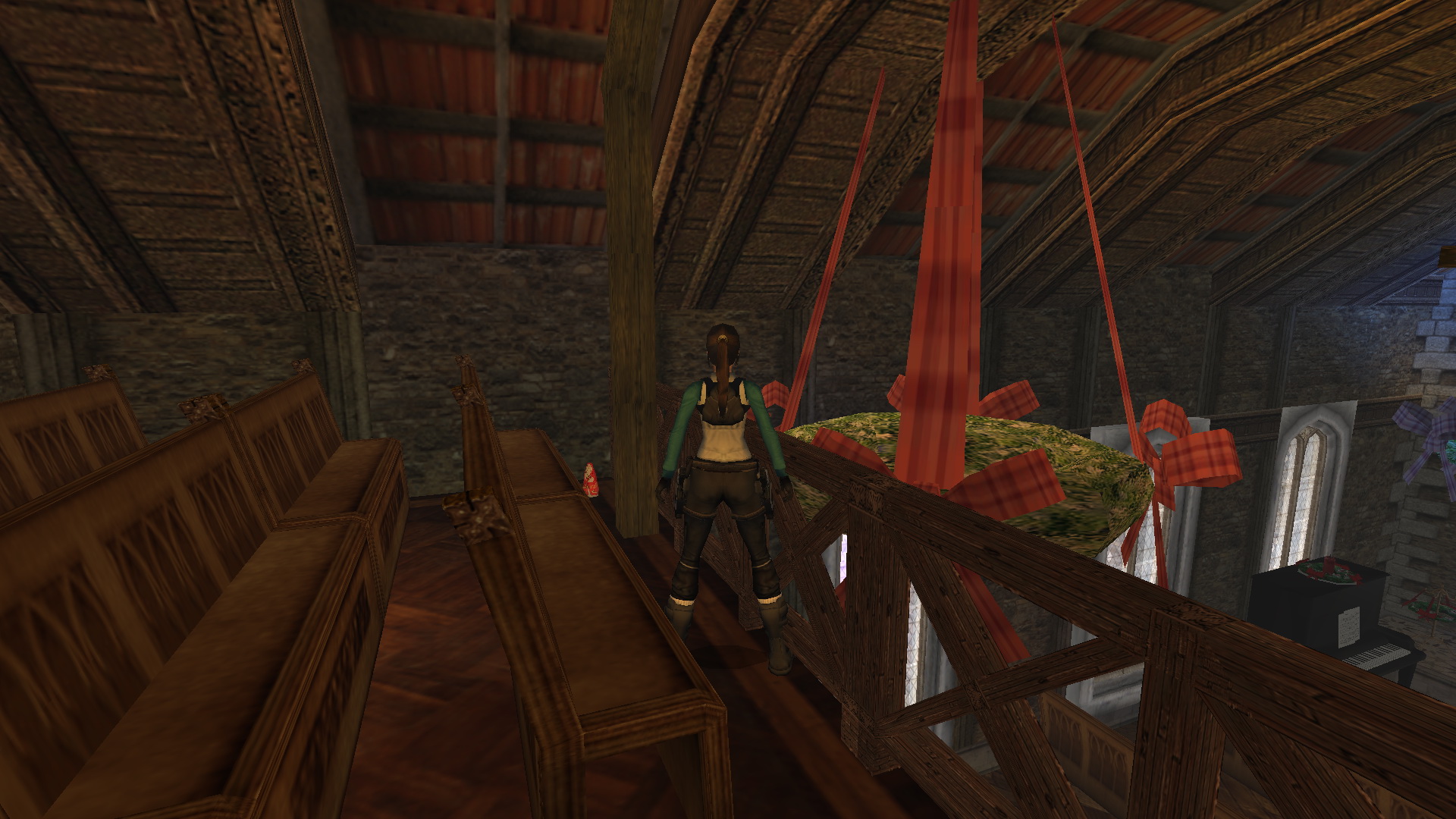 Egy rövid beszélgetés után menj el mellettük, kapaszkodj fel a telefonfülkére néhány süteményért, majd lépj be balra, a kápolnába a kinyílt ajtón keresztül. Valaki az orgonánál a "Jó keresztény emberek, örüljetek" című dalt játssza. Menj balra, fel a lépcsőn, és a karzaton balra, a padok előtt megtalálod a következő kis Mikuláscsokit. Ez a 9. secret.